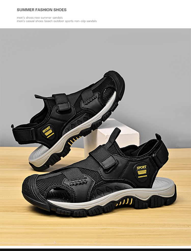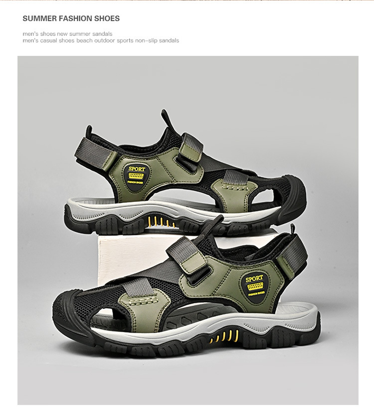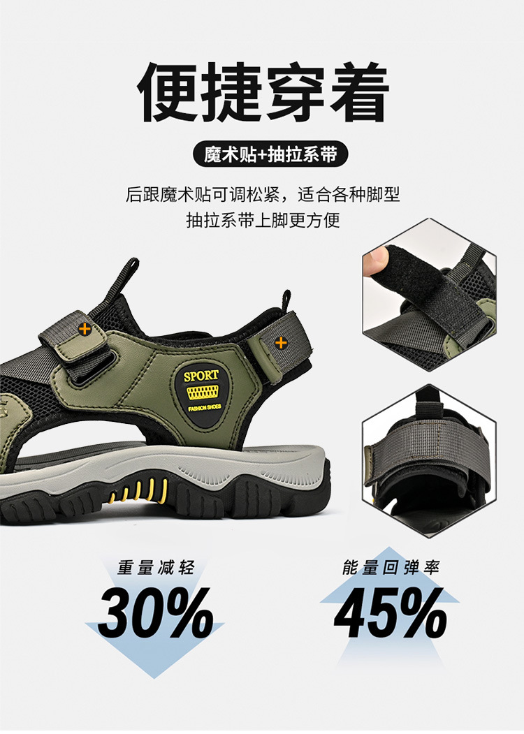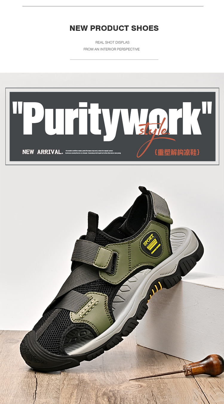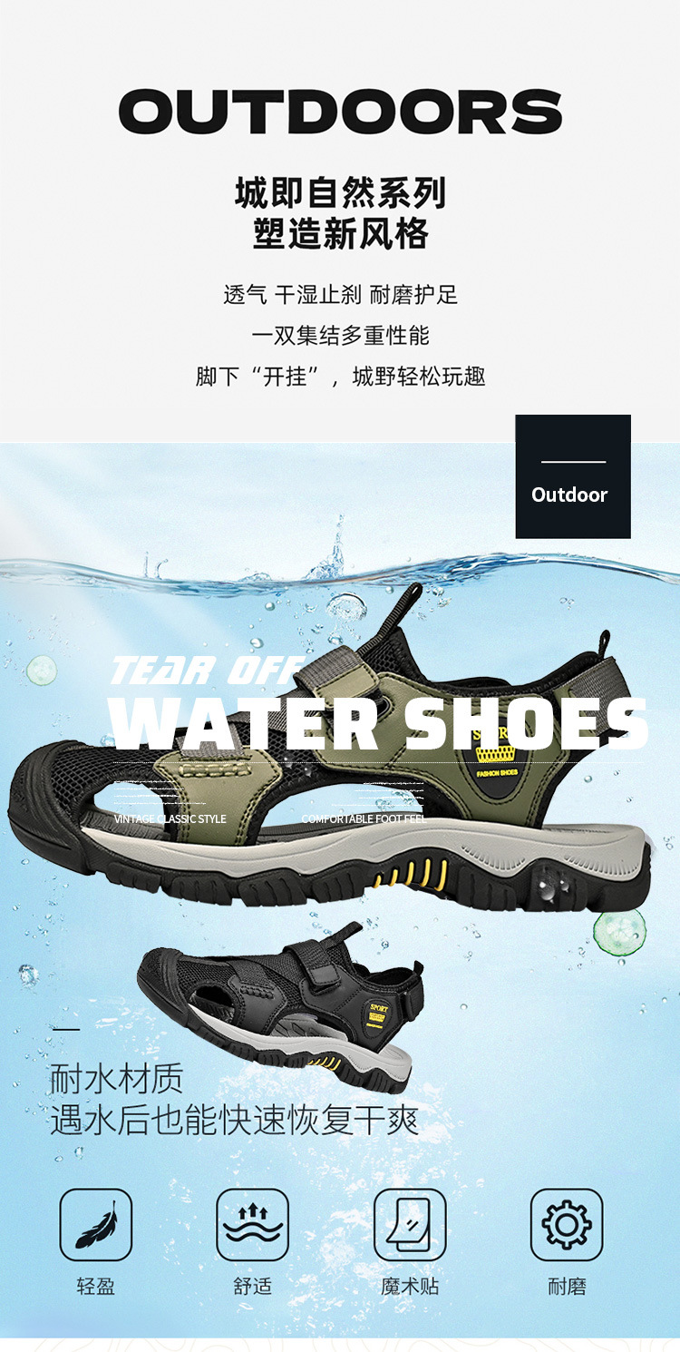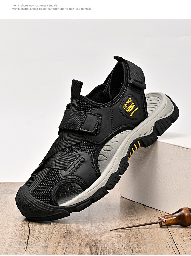 2025年夏季新款休闲防滑包头男士沙滩鞋外贸跨界大码镂空洞洞凉鞋