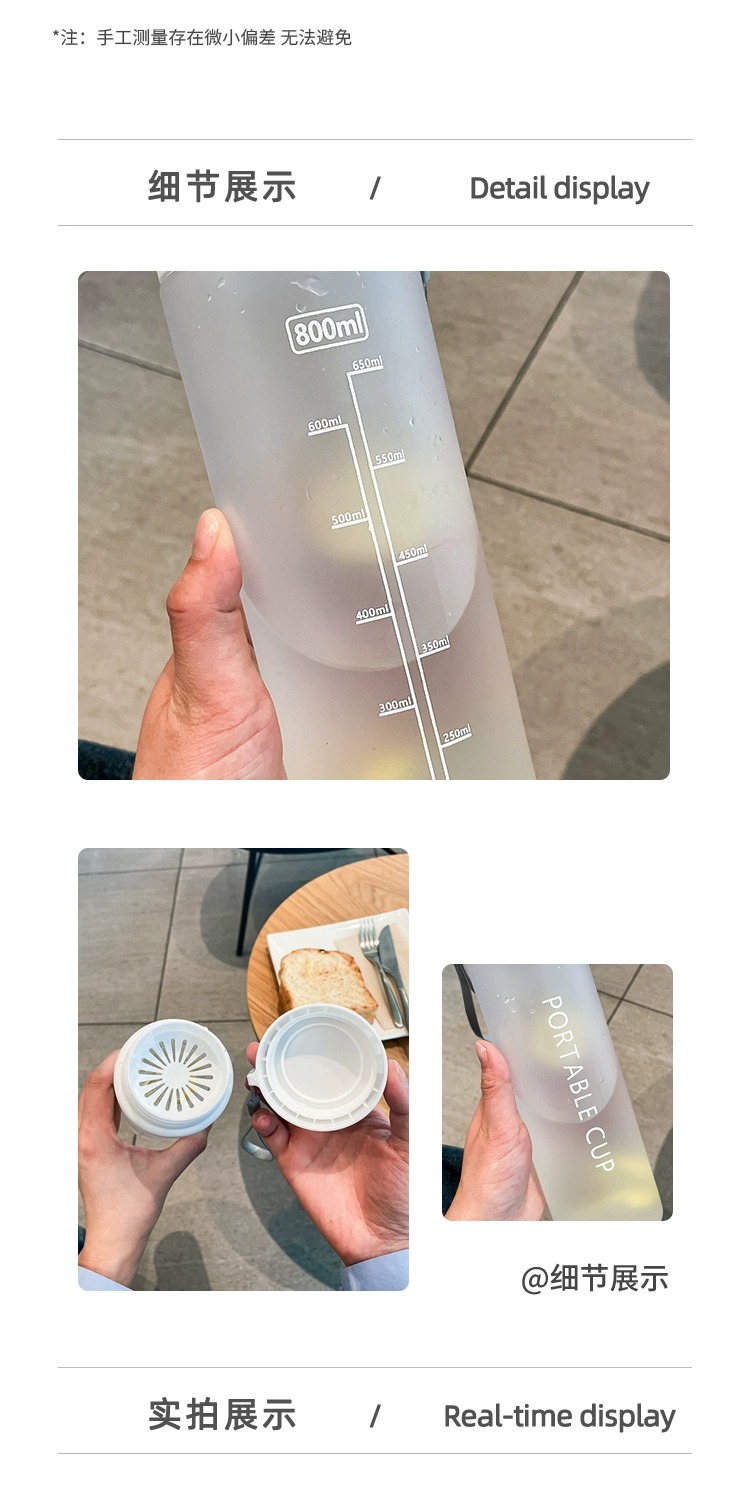 夏季韩版带茶隔磨砂大容量塑料杯男女学生情侣刻度便携随手水杯子