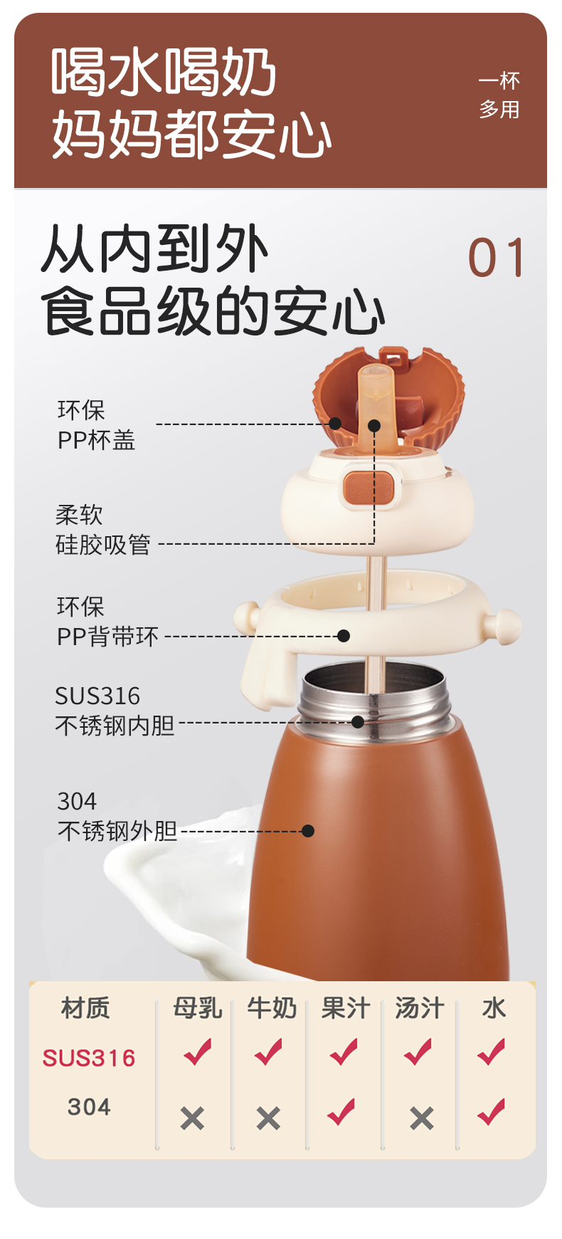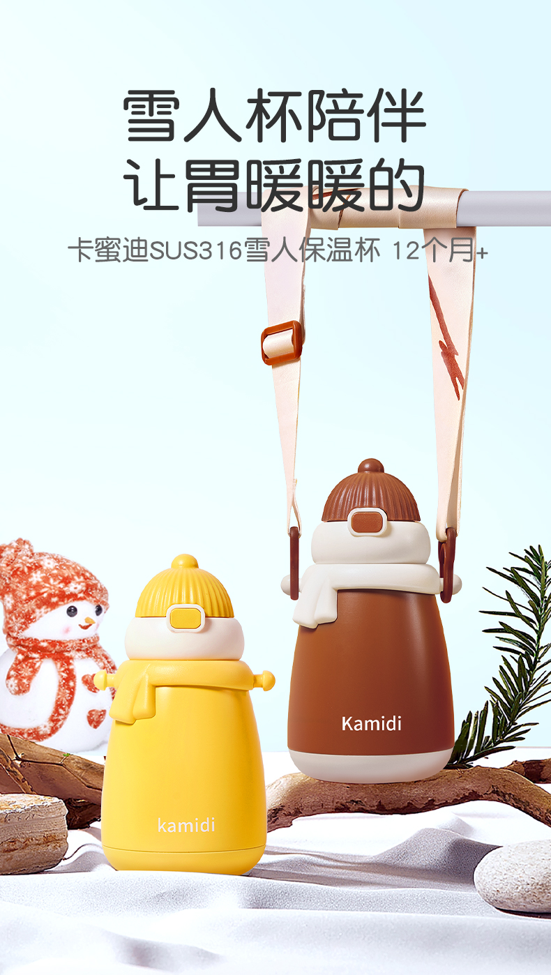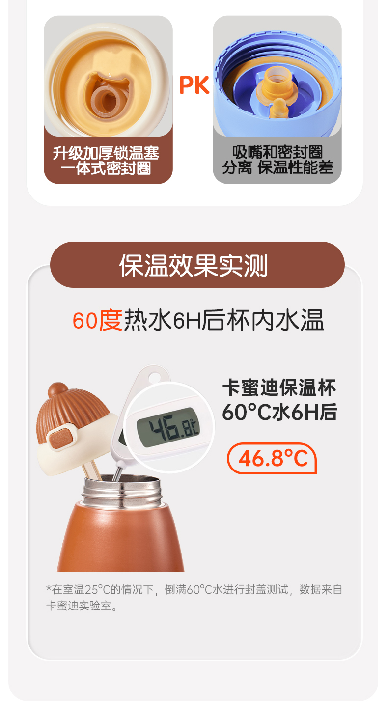 卡蜜迪儿童保温杯水杯婴幼儿宝宝学饮杯吸管杯316L幼儿园专用水壶