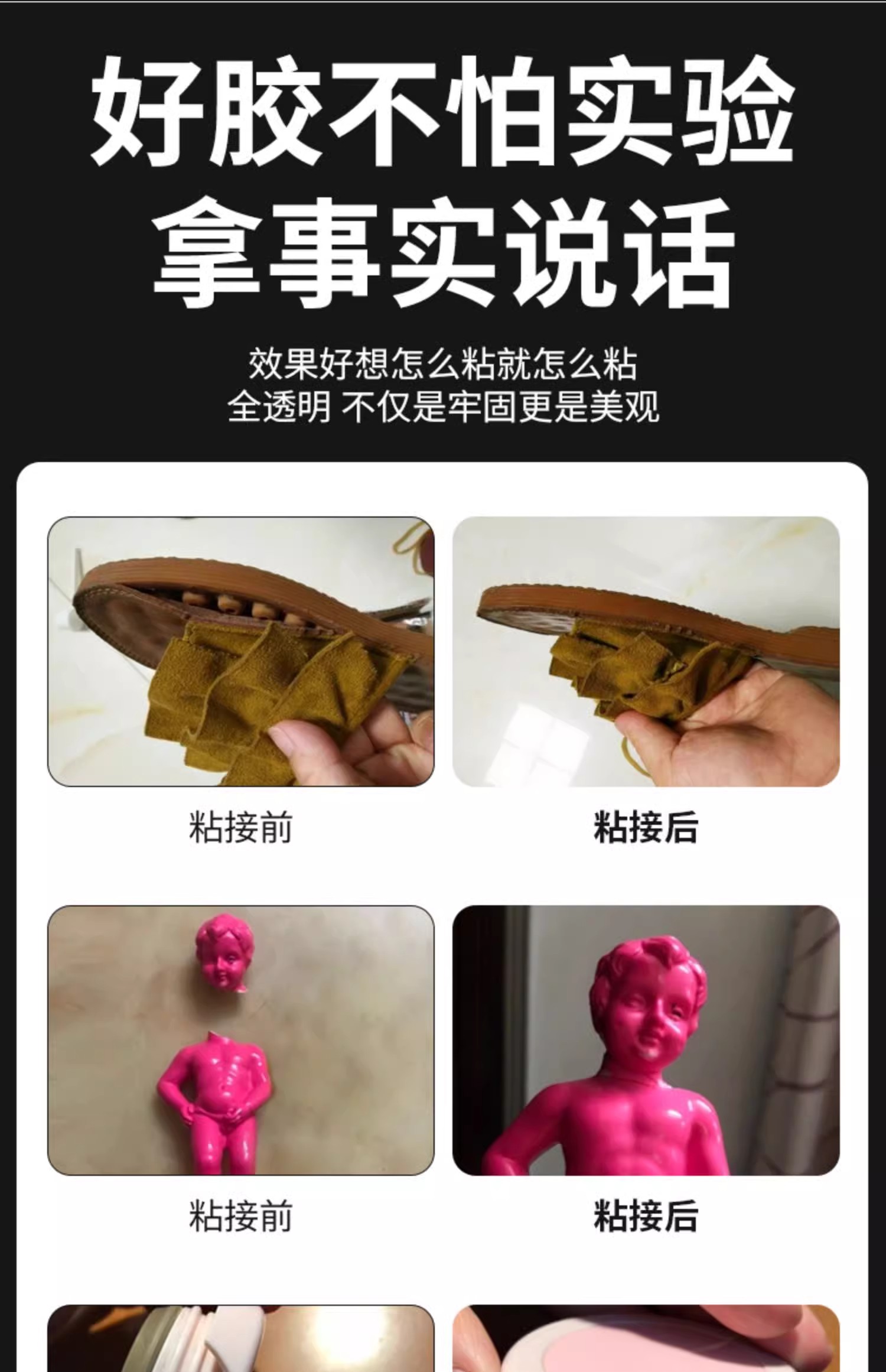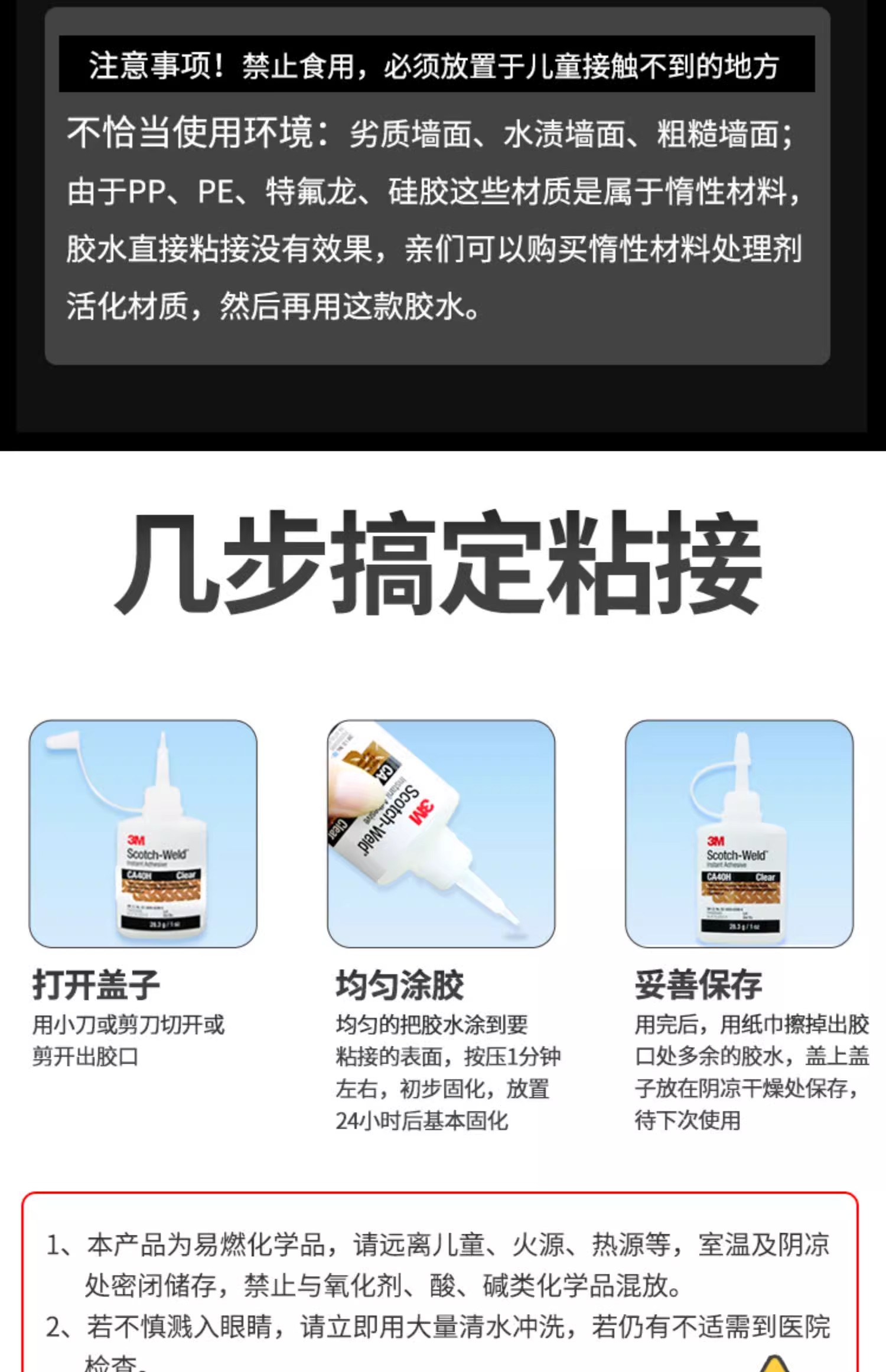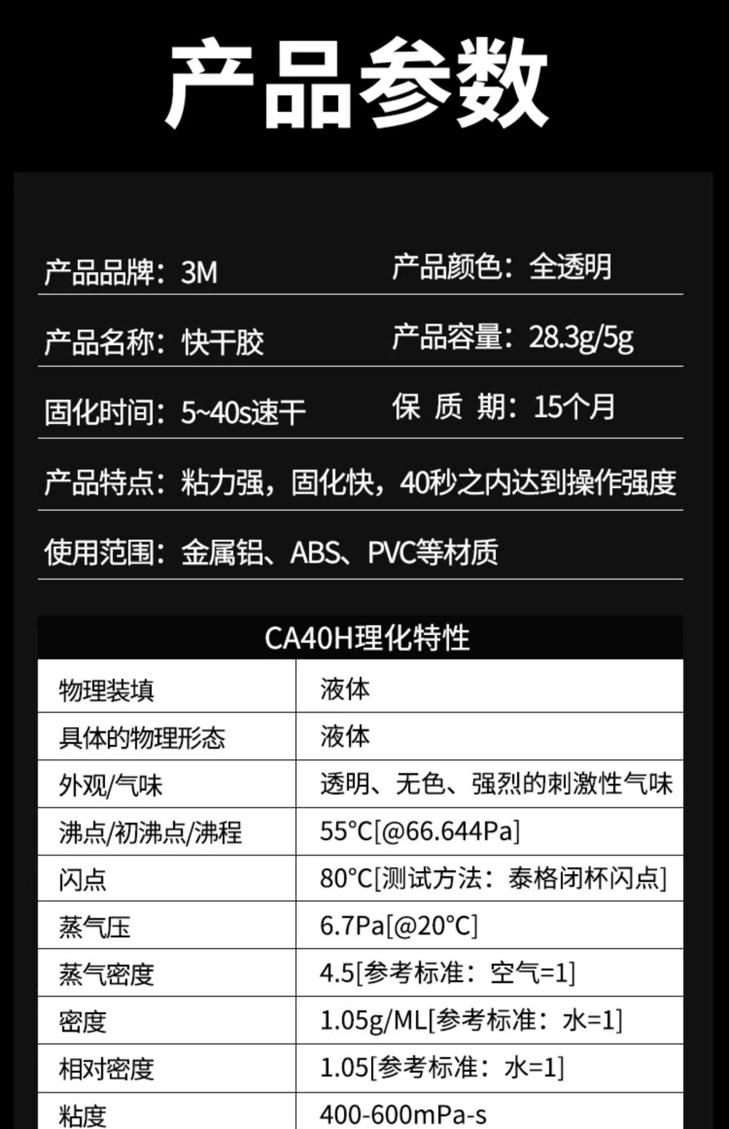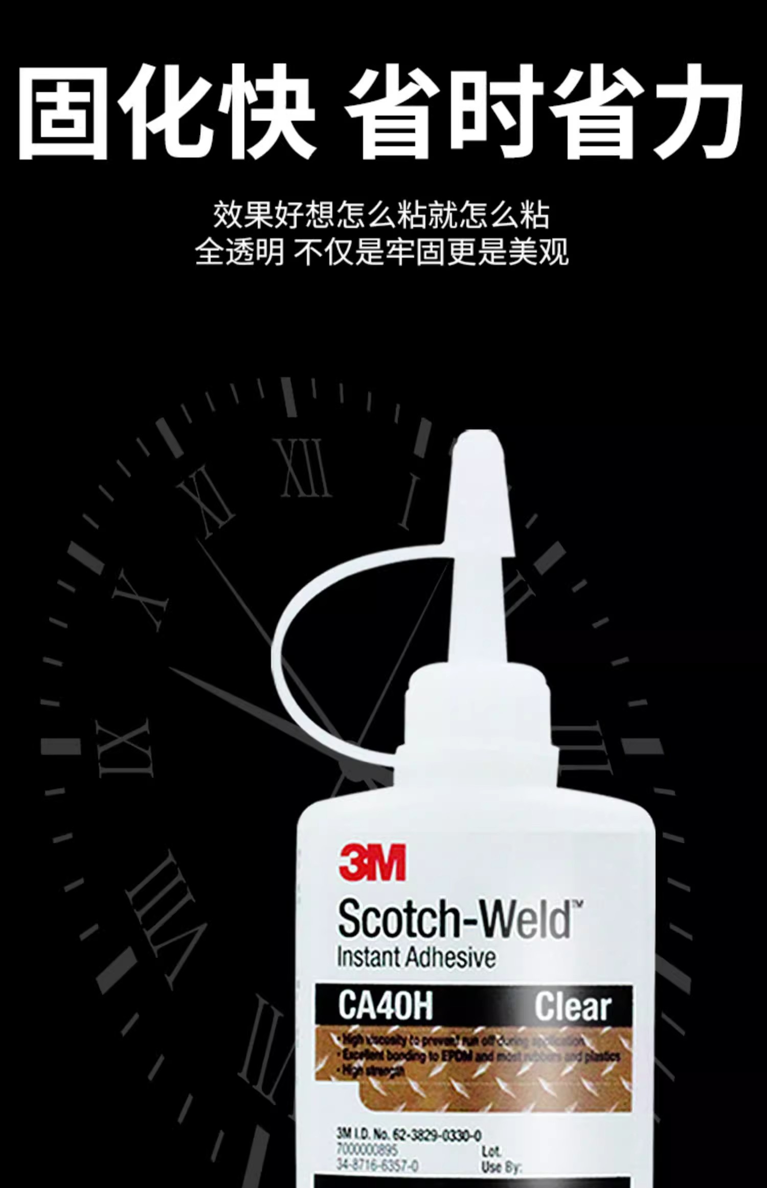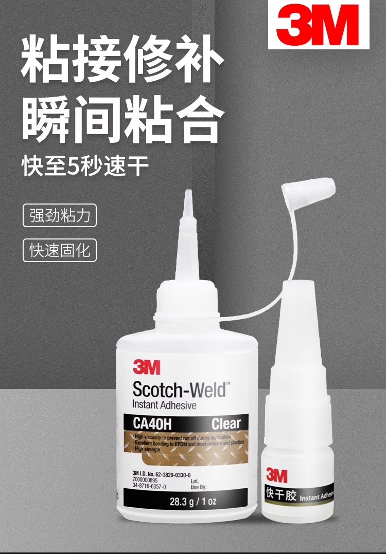 3M强力透明胶水高强度快干胶粘结陶瓷石头玻璃金属塑料木头亚克力家具饰品固定免打孔免钉多功能胶水CA40H