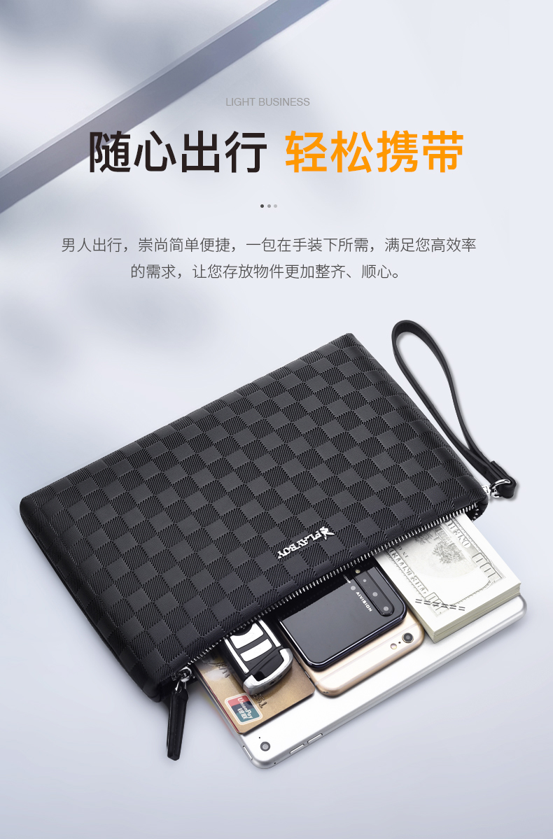花花公子男士手包新款时尚钱包商务手提信封包手拿夹包手抓包男包