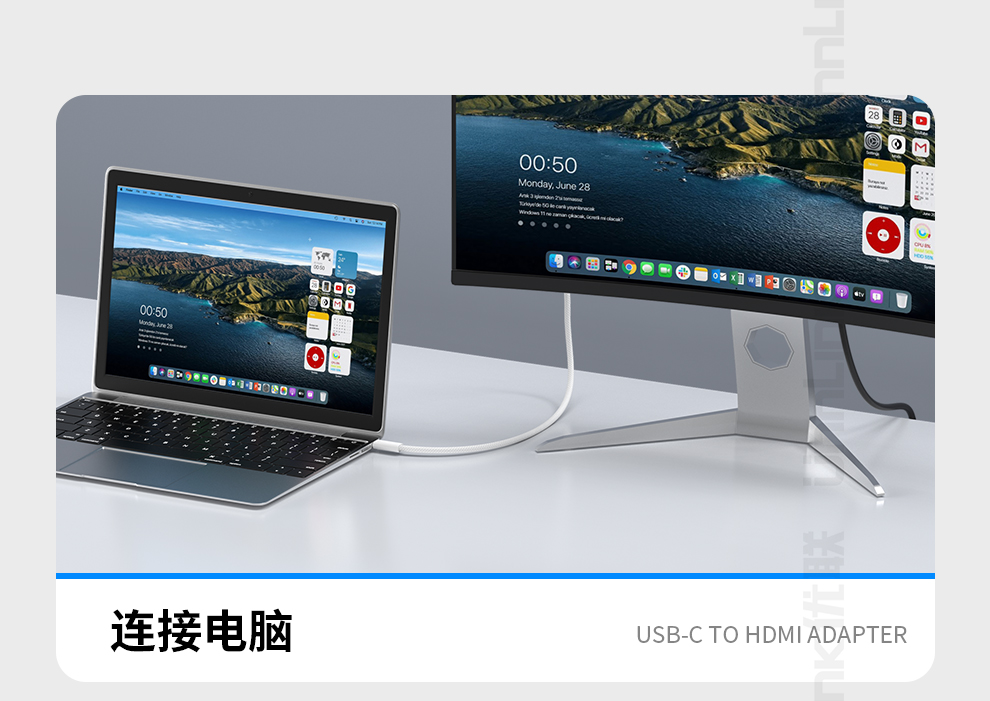 优联typec转hdmi手机电脑电视投屏转换连接线带充电笔记本投影仪适用于苹果iPhone15同屏线4K高清100w快充