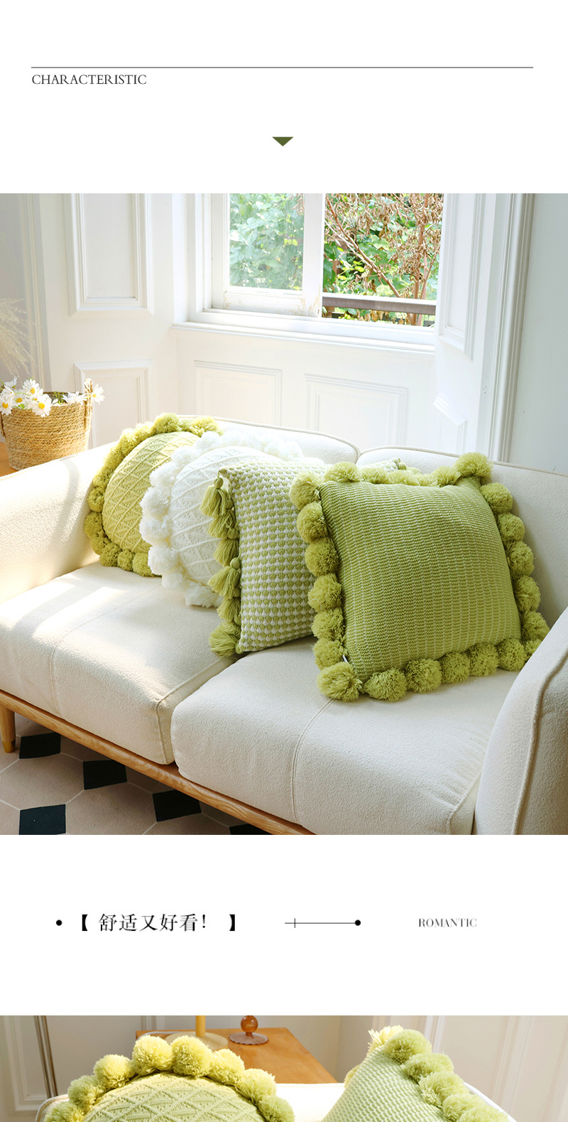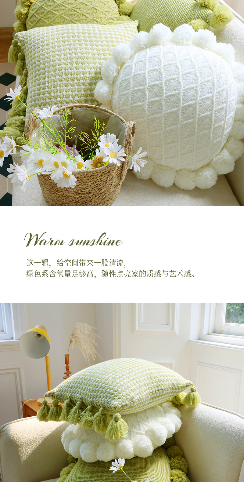 北欧ins风针织清新田园薄荷绿嫩网红软装圆靠垫蒲团沙发客厅抱枕