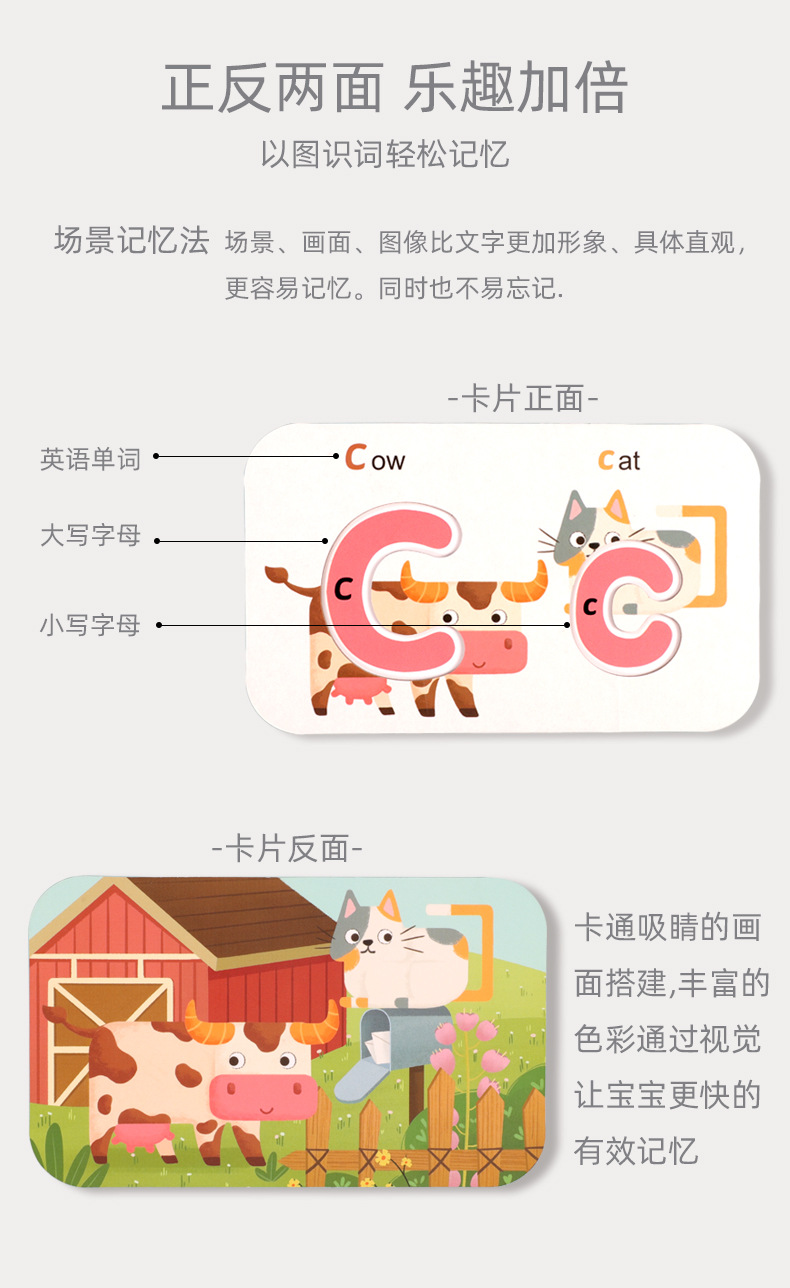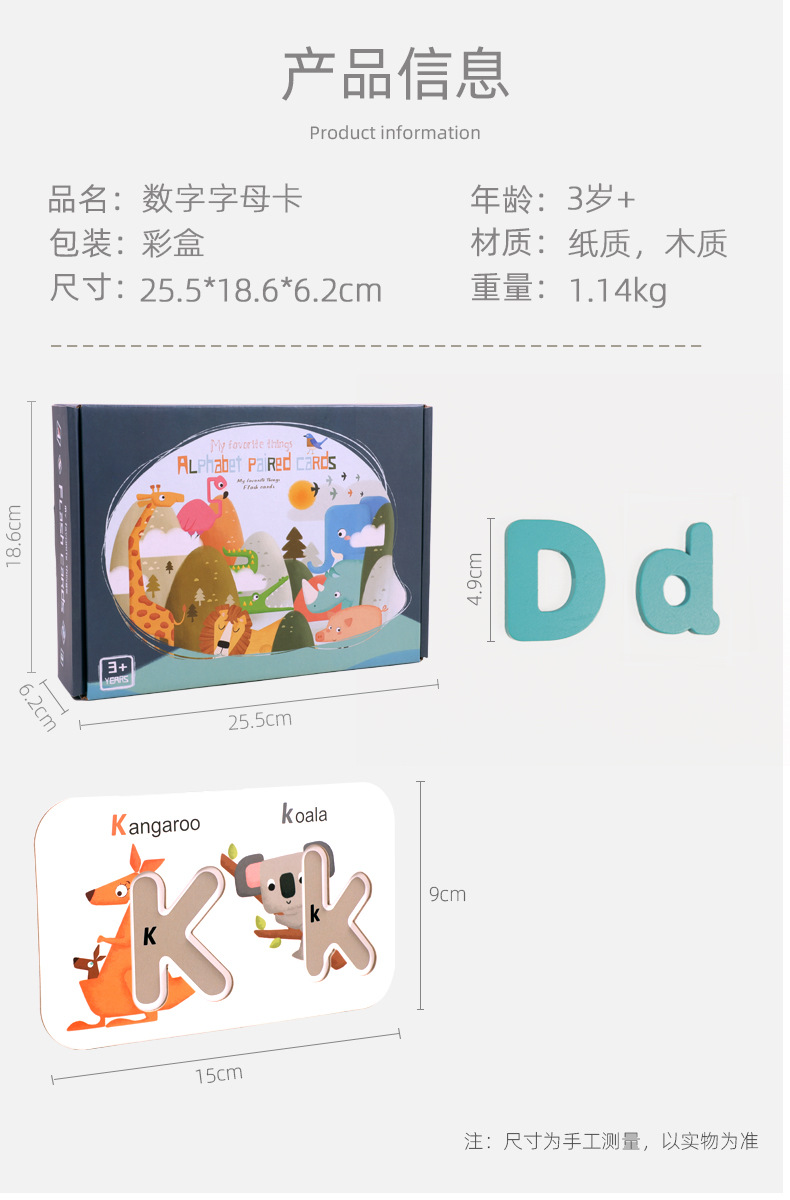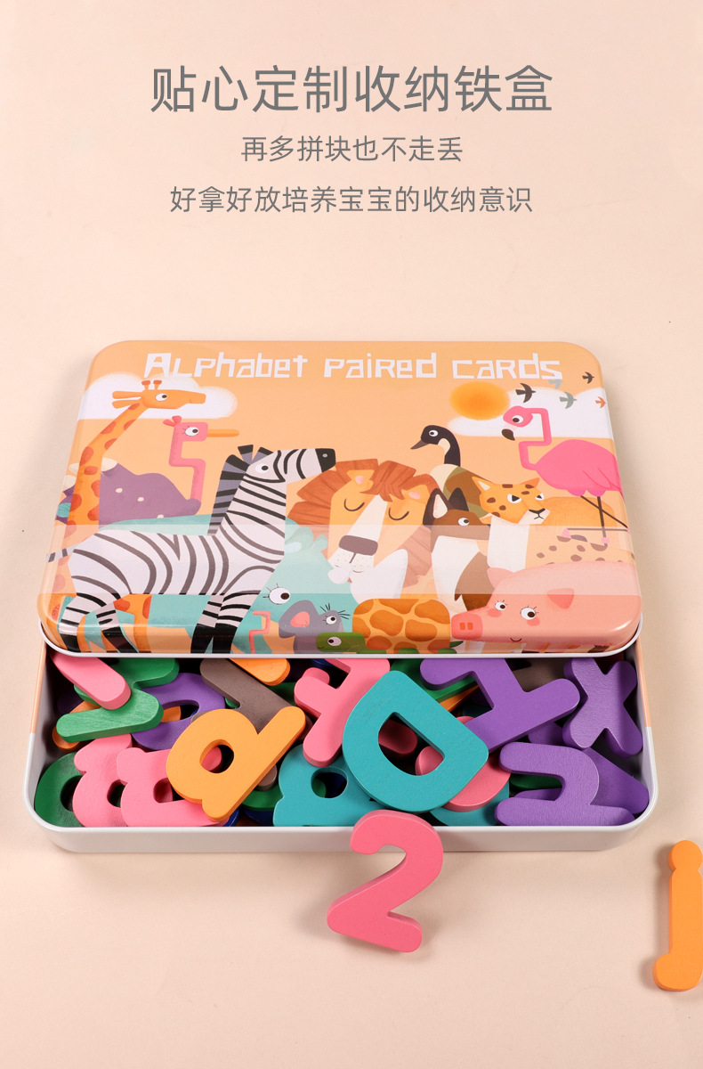 儿童木制玩具益智铁盒拼板大小写字母数字启蒙配对撕不烂卡片拼图