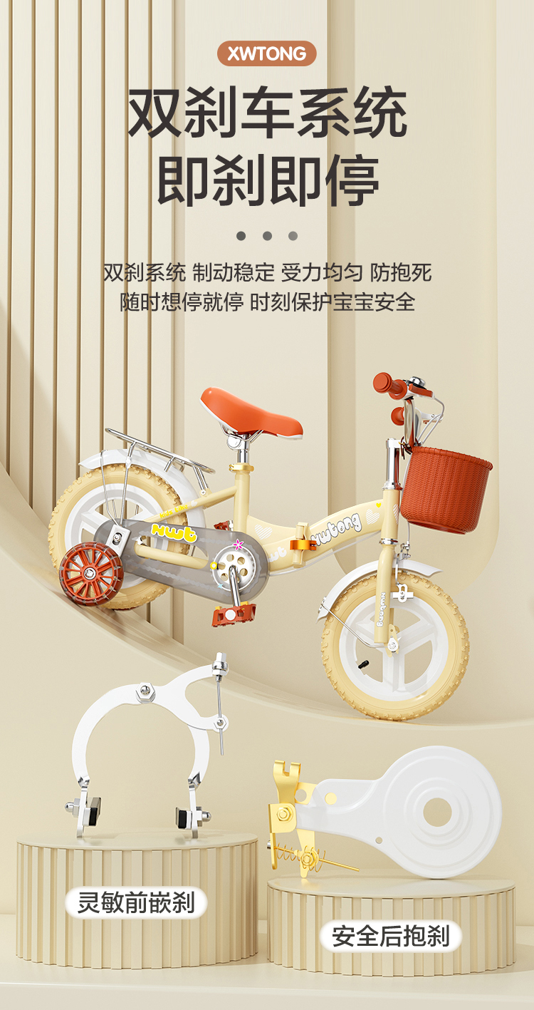 新款儿童自行车女孩3-5-6-8岁男宝宝单车小孩脚踏车折叠复古童车