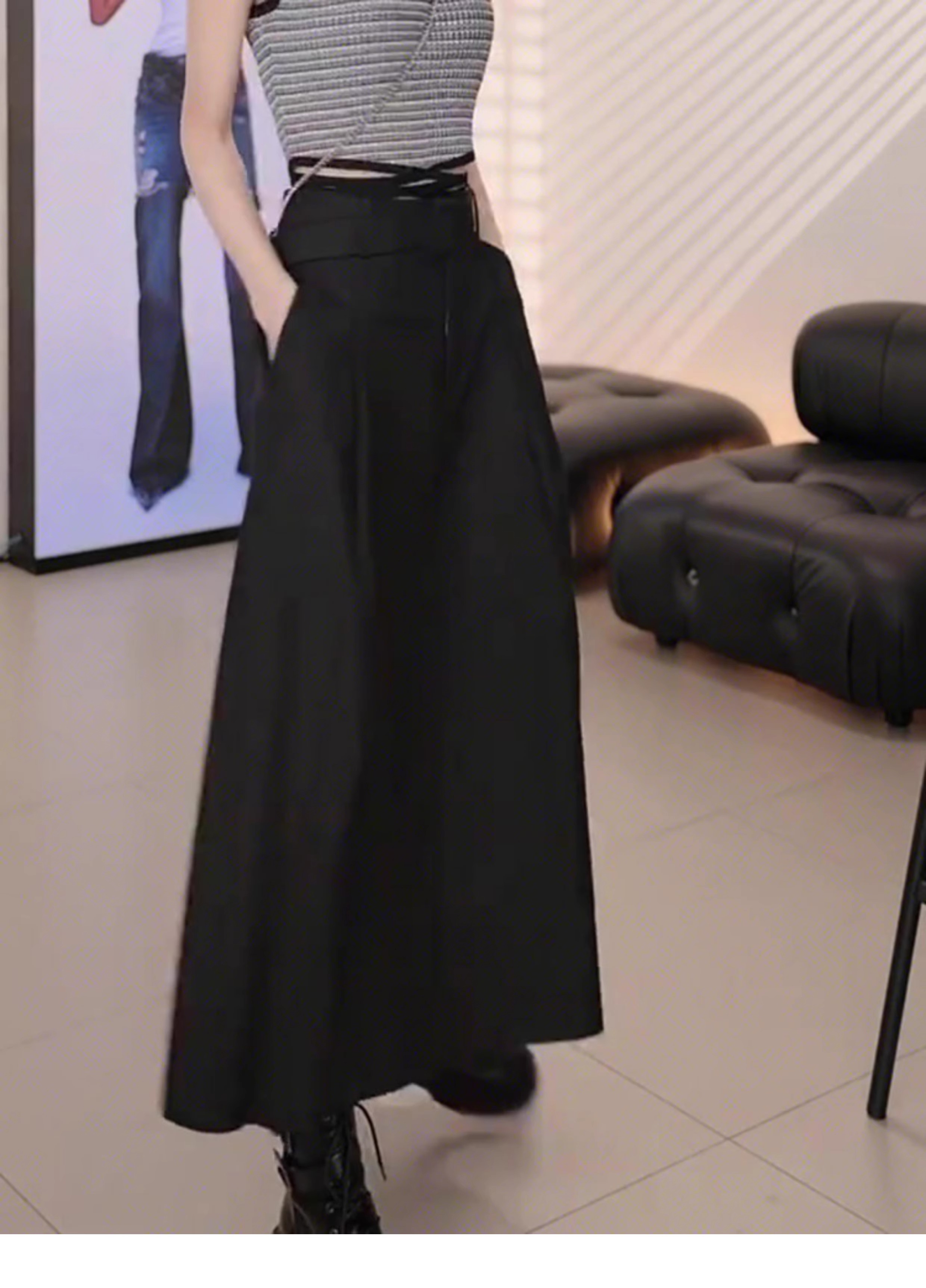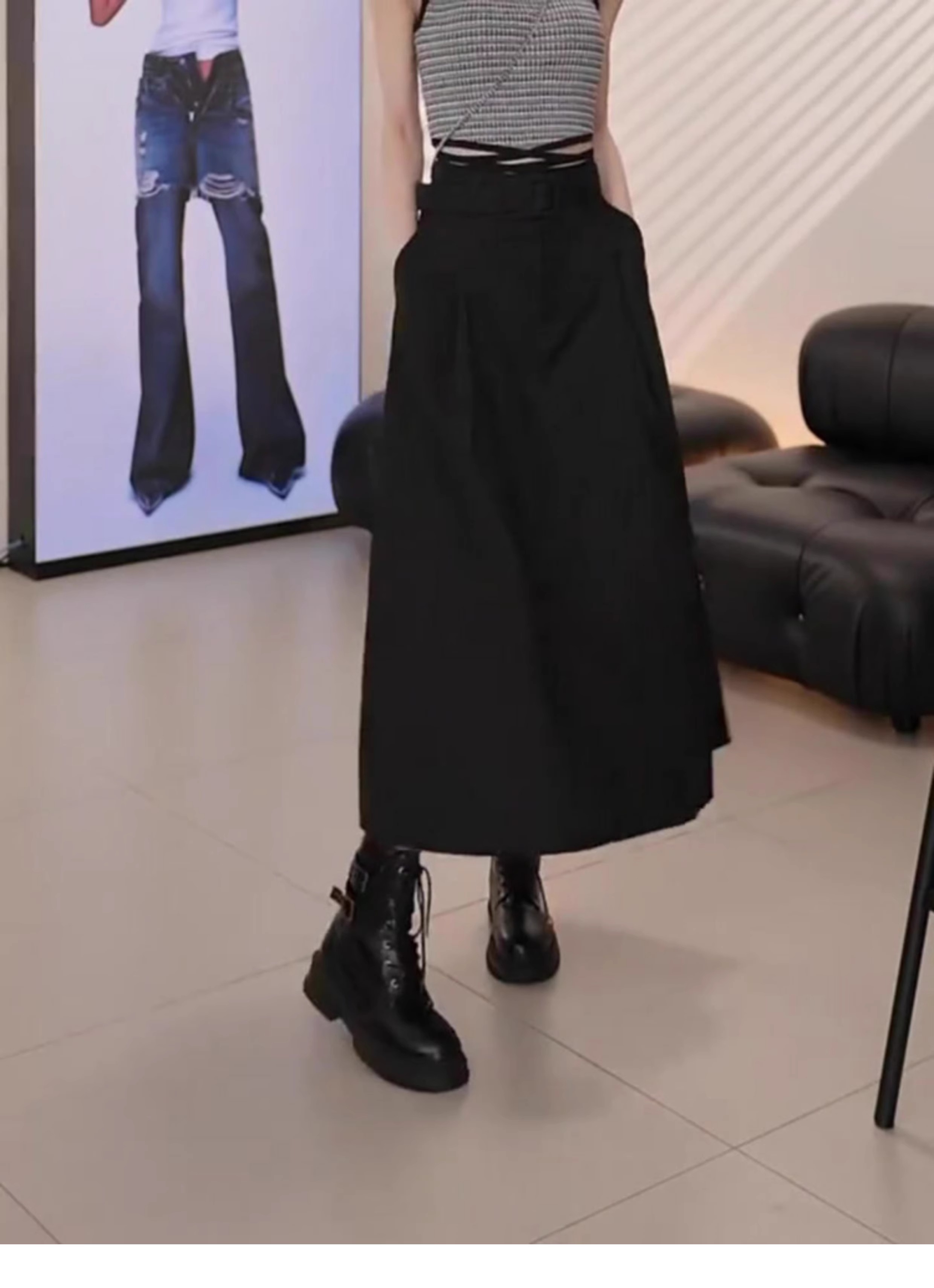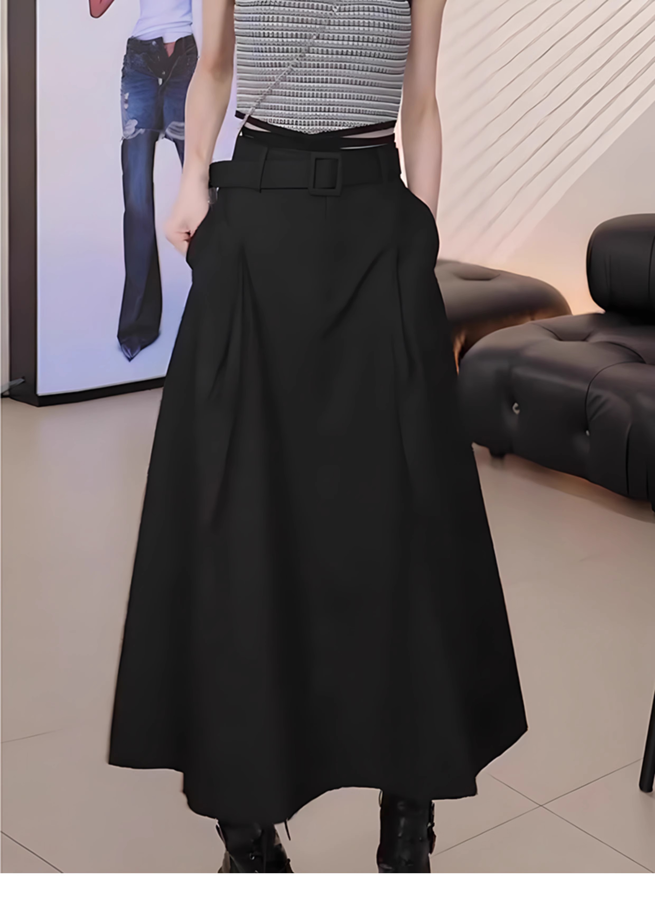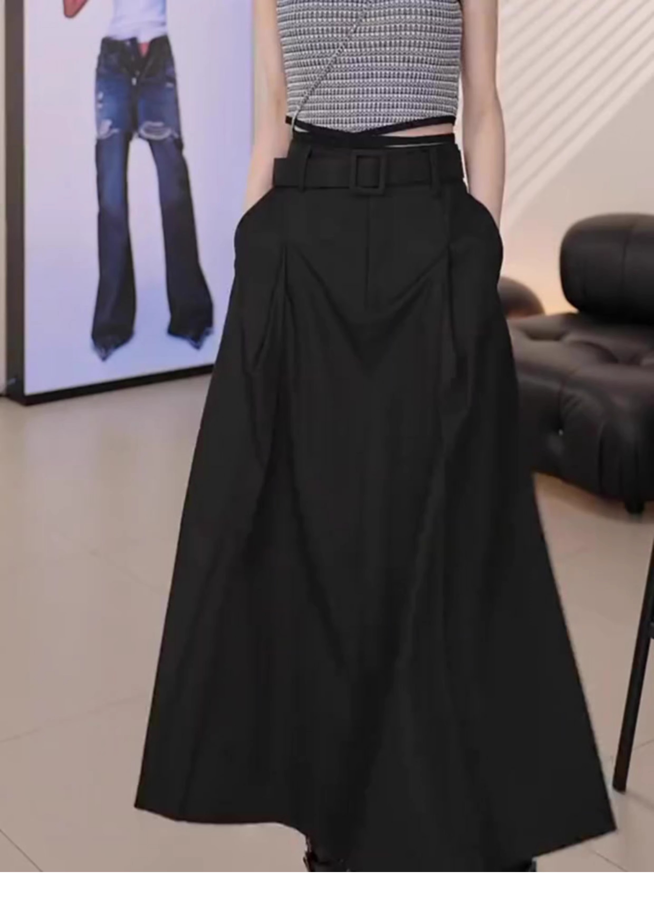 夏季韩版黑色半身裙女2025新款时尚高腰显瘦设计感A字休闲中长裙