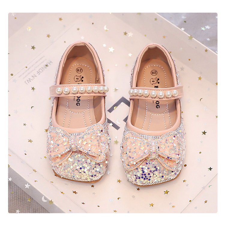 巴布豆公主鞋女童2024新款水晶鞋春秋爱莎皮鞋水钻软底主持演出鞋