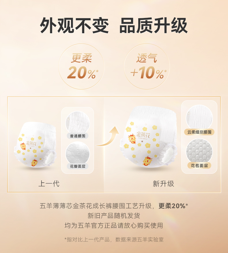 五羊宝宝拉拉裤薄薄芯成长裤超薄透气婴儿纸尿裤L-4XL码4包尿不湿