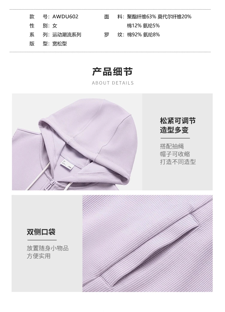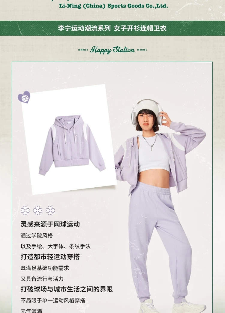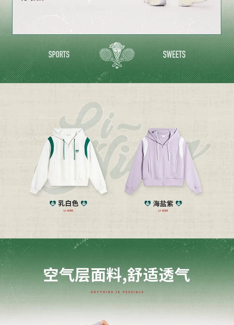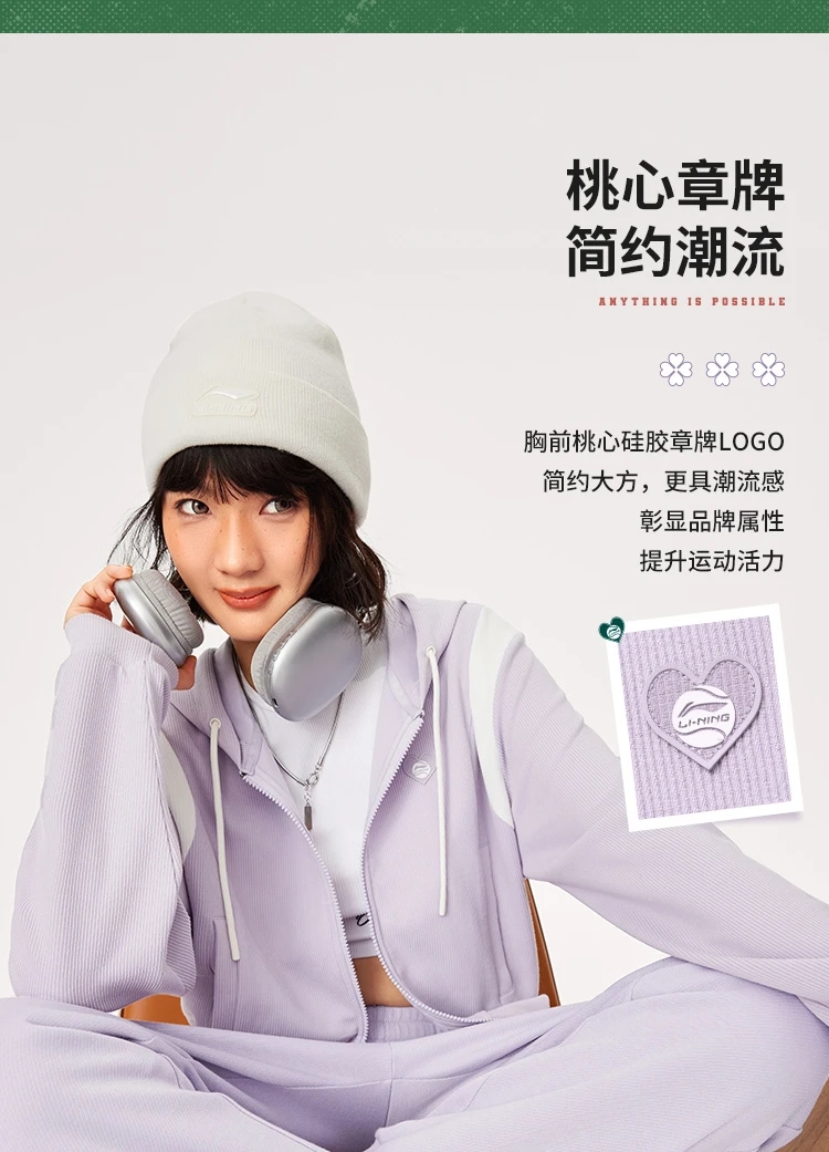 李宁外套女2024秋新款运动潮流系列女子宽松开衫连帽卫衣AWDU602