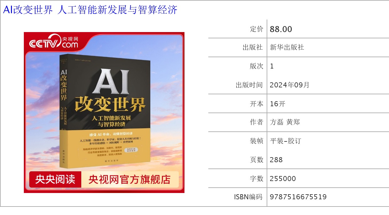 AI改变世界 人工智能新发展与智算经济 聚焦人工智能新发展 走向智能未来的最新探索指南 计算机人工智能科普书籍 XH
