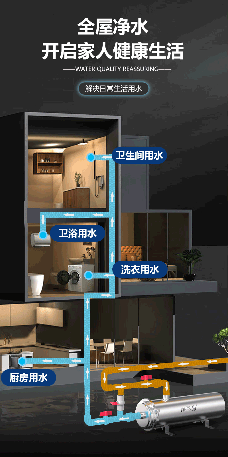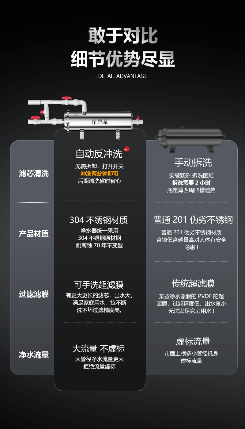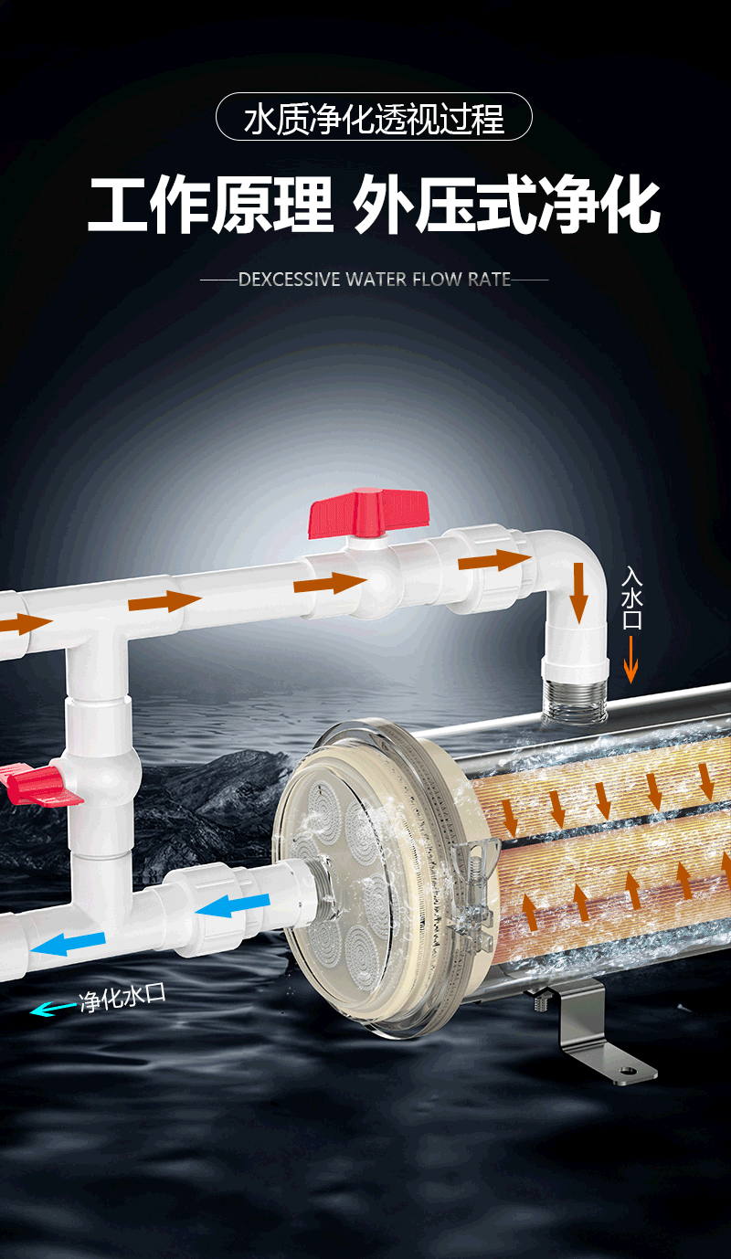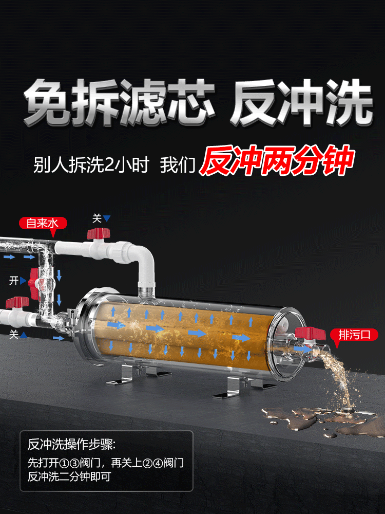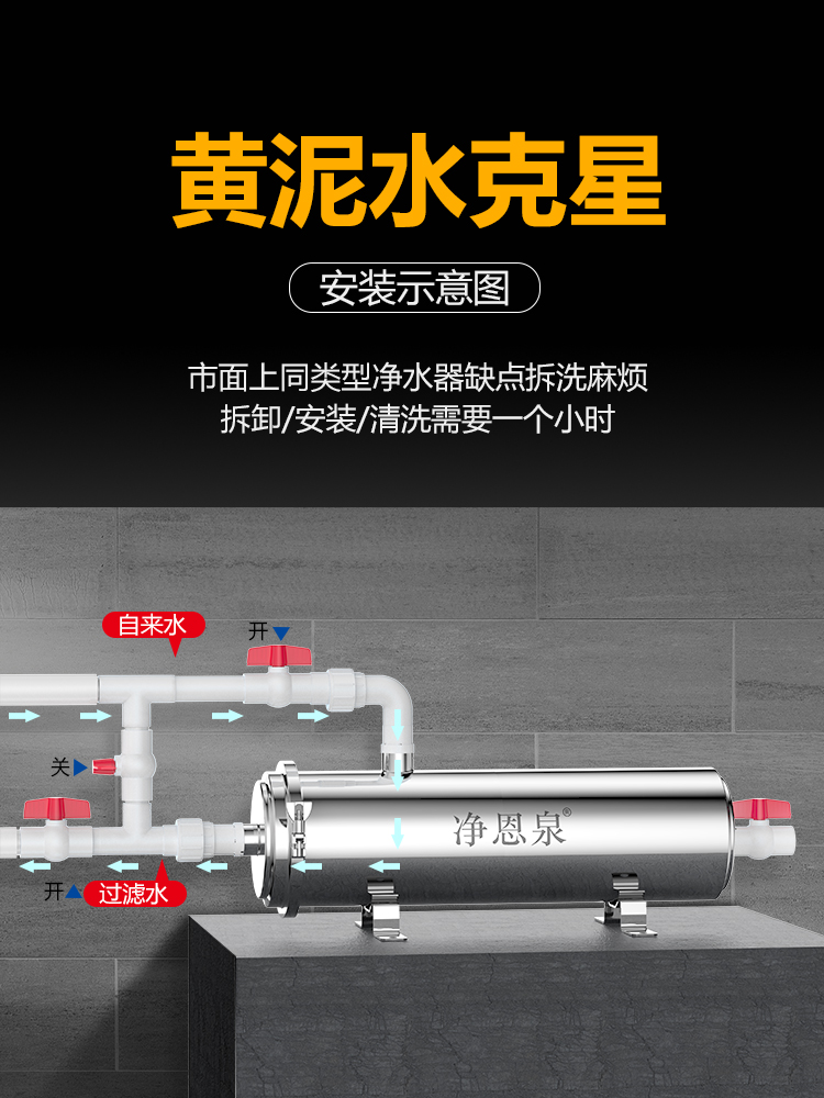 农村自来水大型全屋家用大流量净水器水塔深井水泥沙前置过滤器