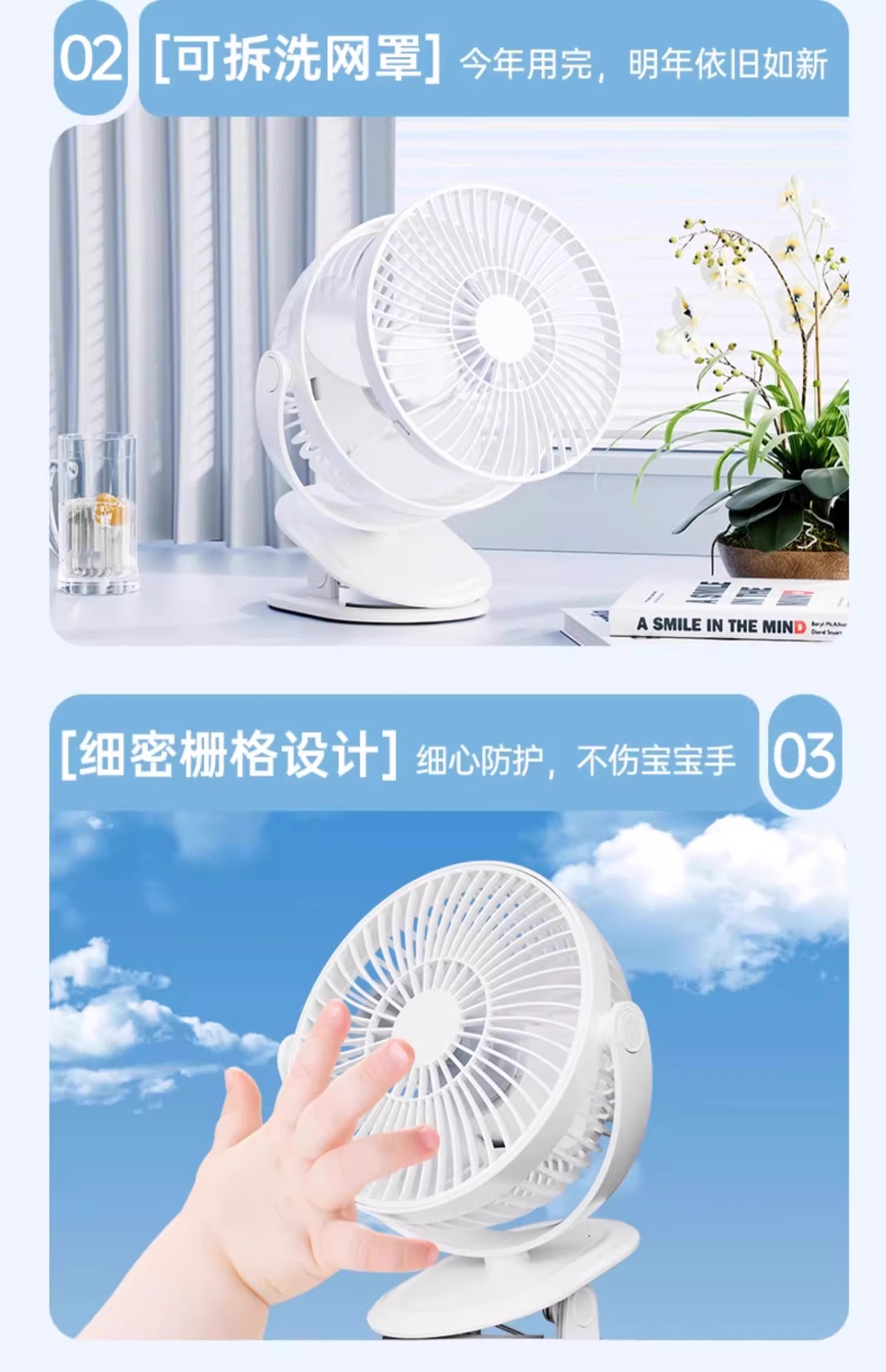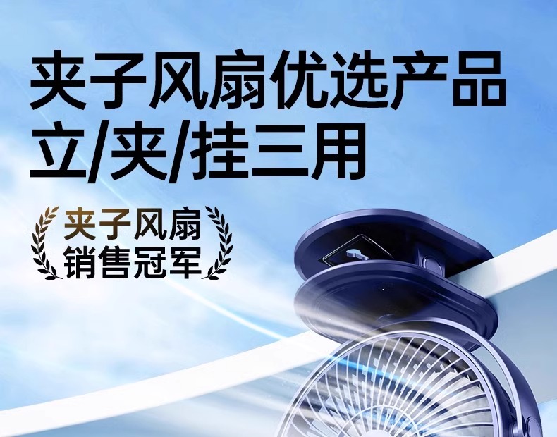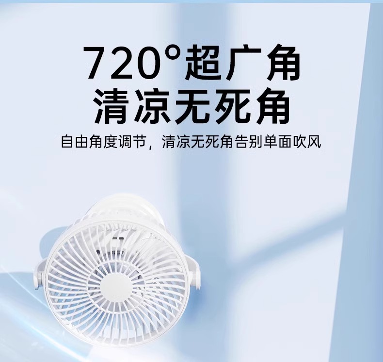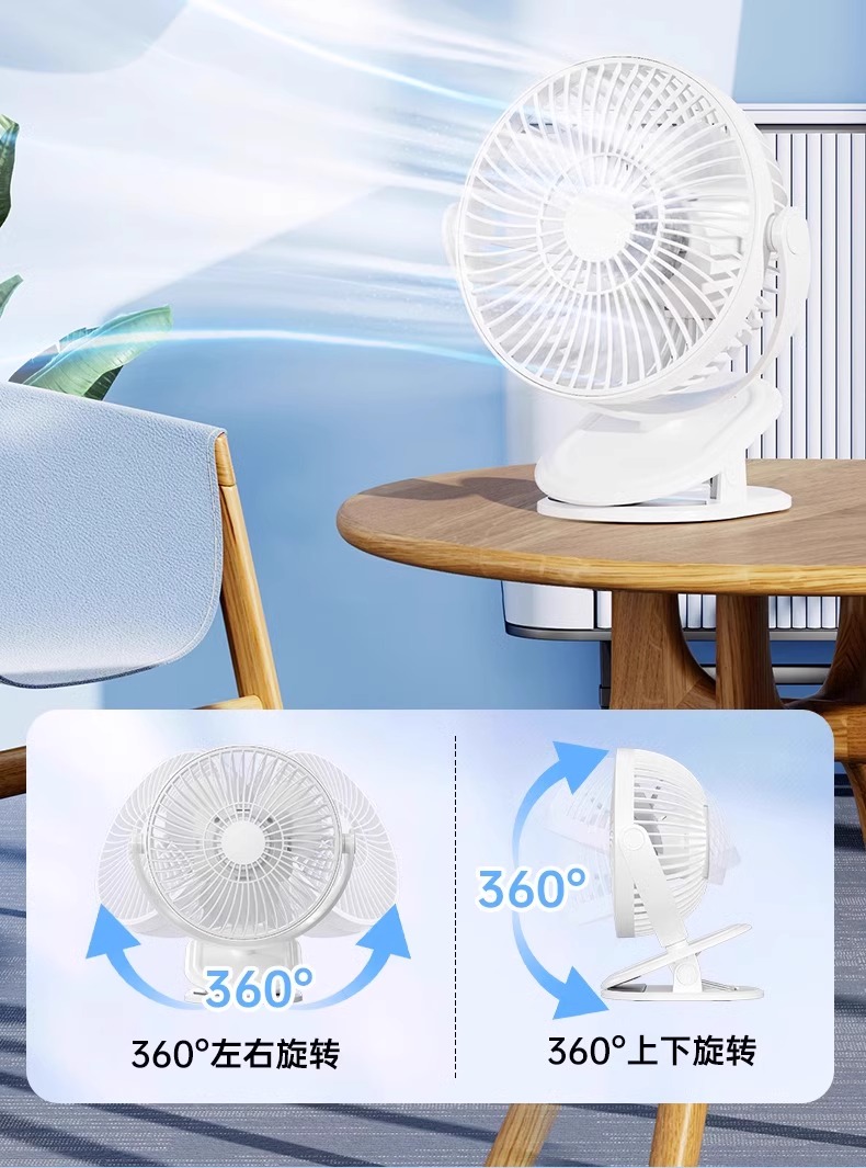 夹式小风扇小型学生宿舍便携式可充电USB夹子风扇电扇办公室桌面静音床头电风扇婴儿车户外长续航车载大风力