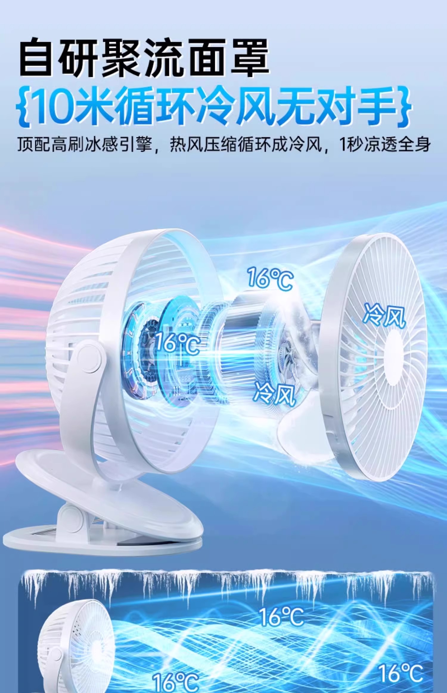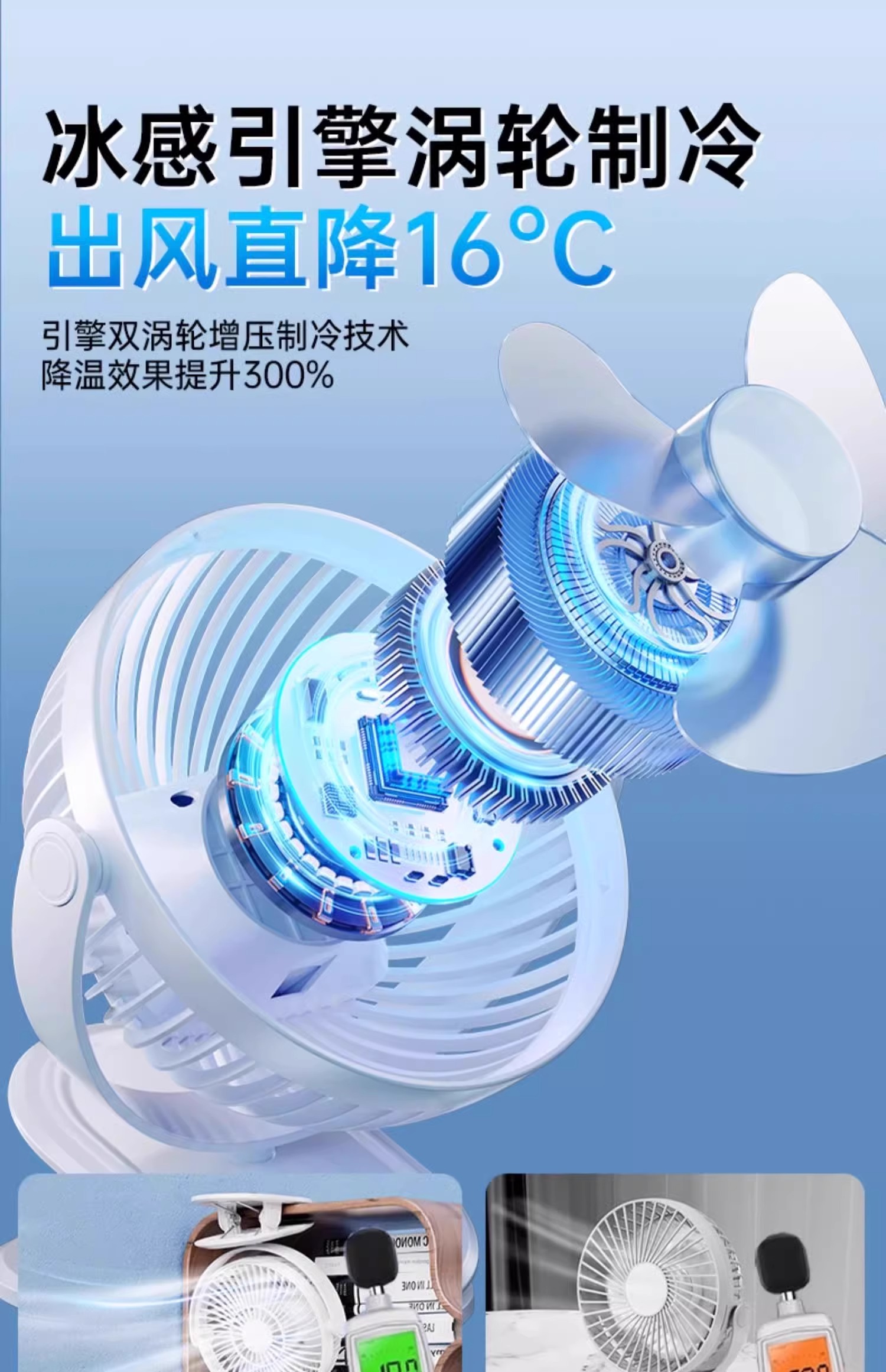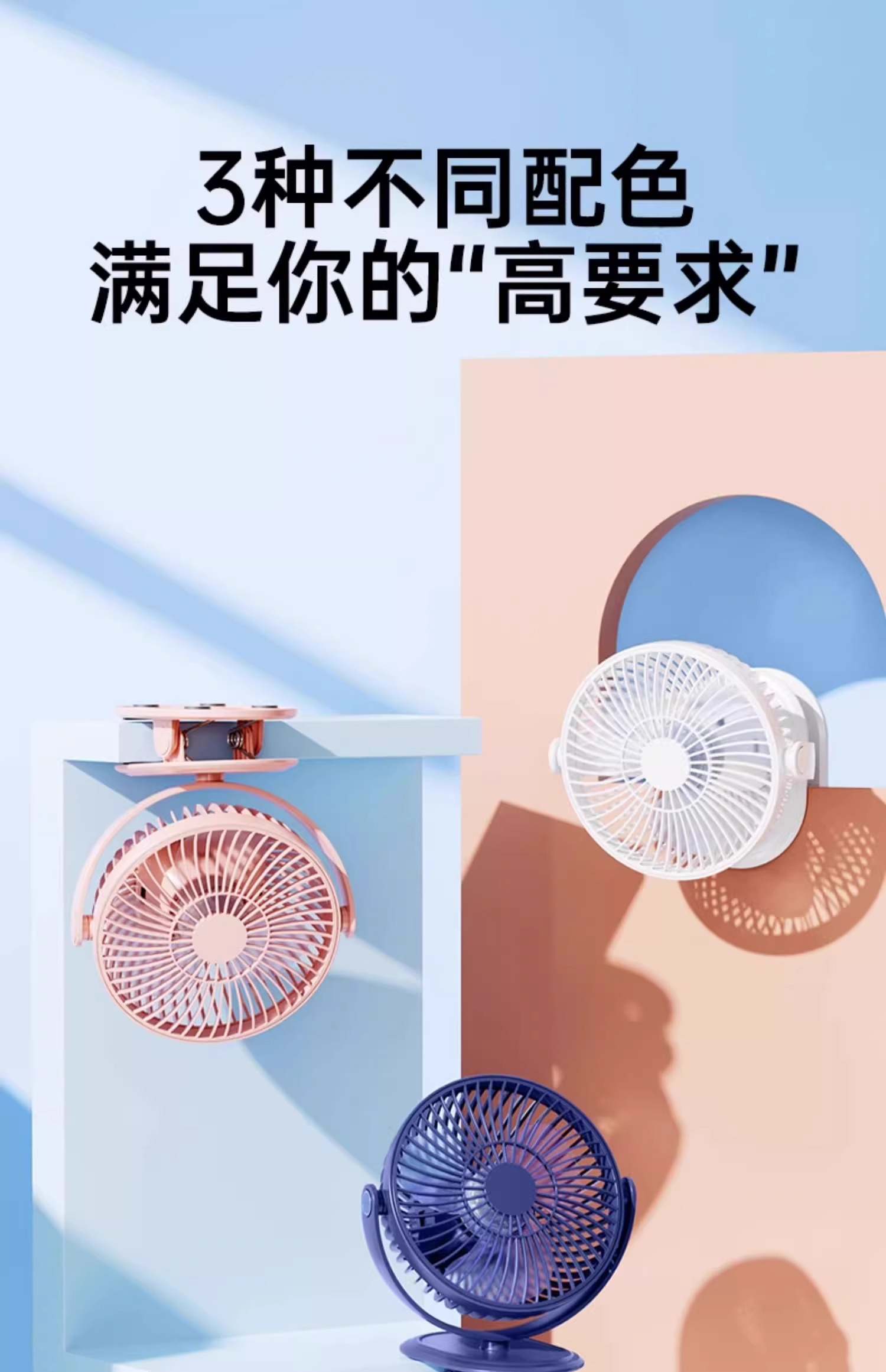 夹式小风扇小型学生宿舍便携式可充电USB夹子风扇电扇办公室桌面静音床头电风扇婴儿车户外长续航车载大风力