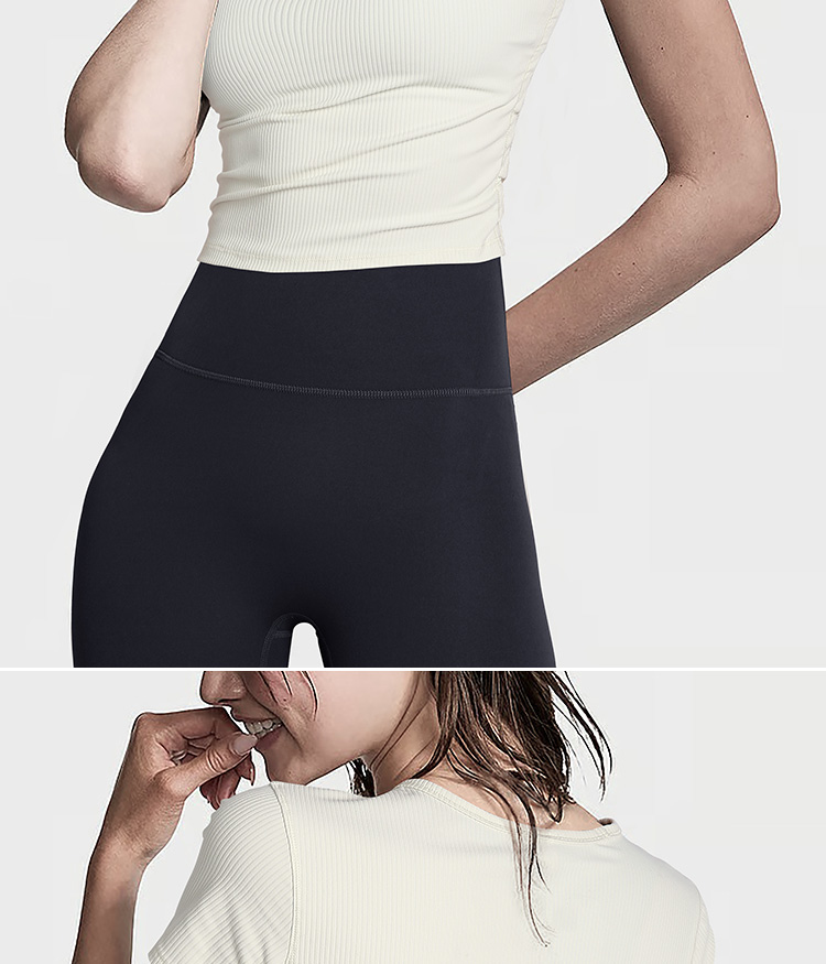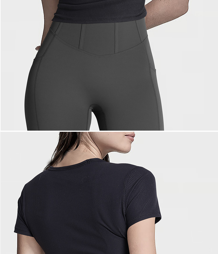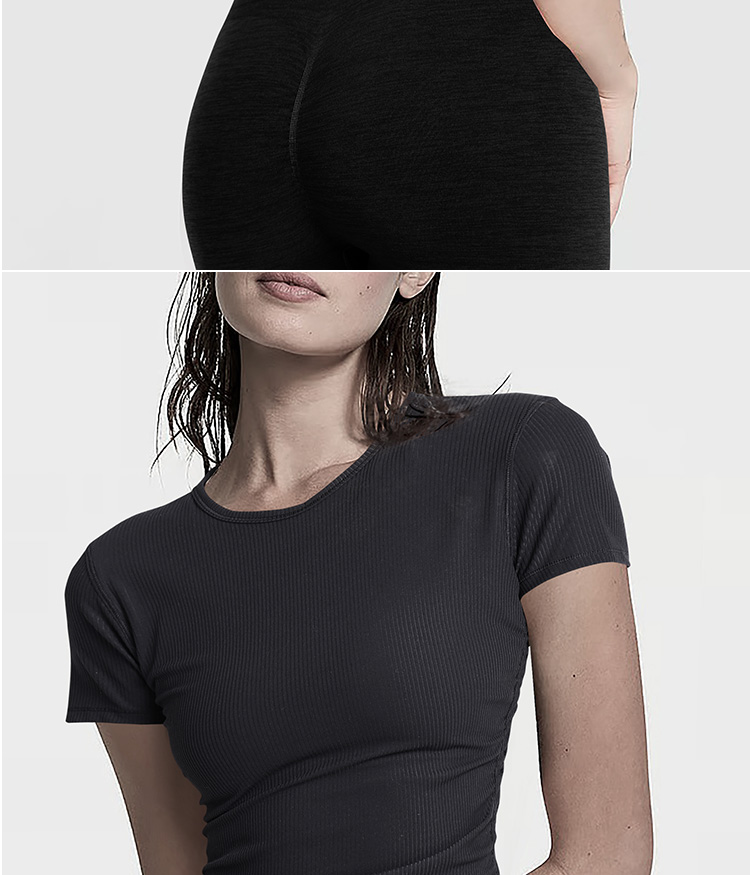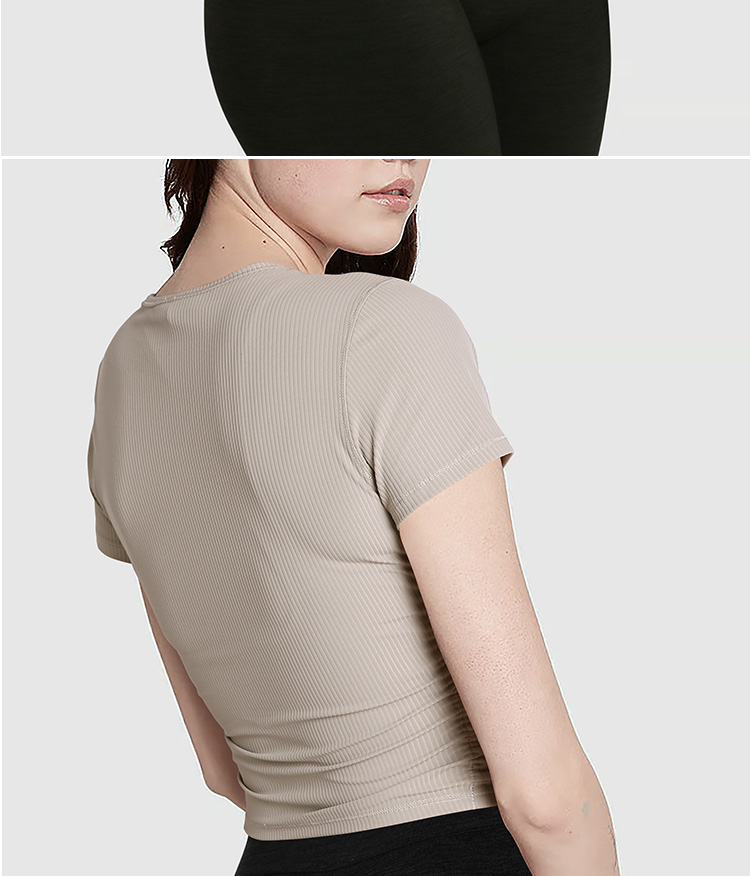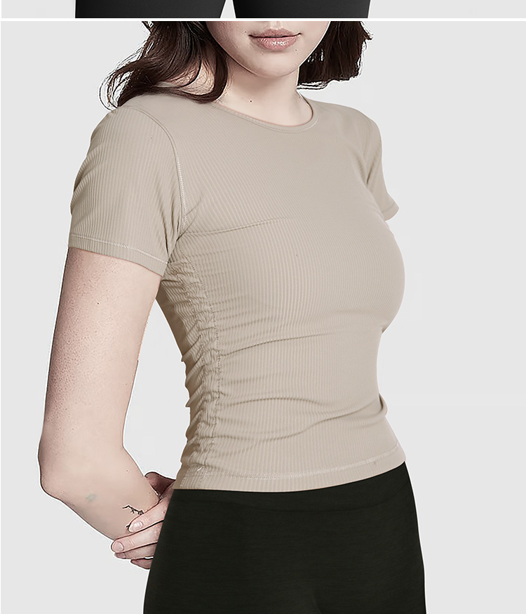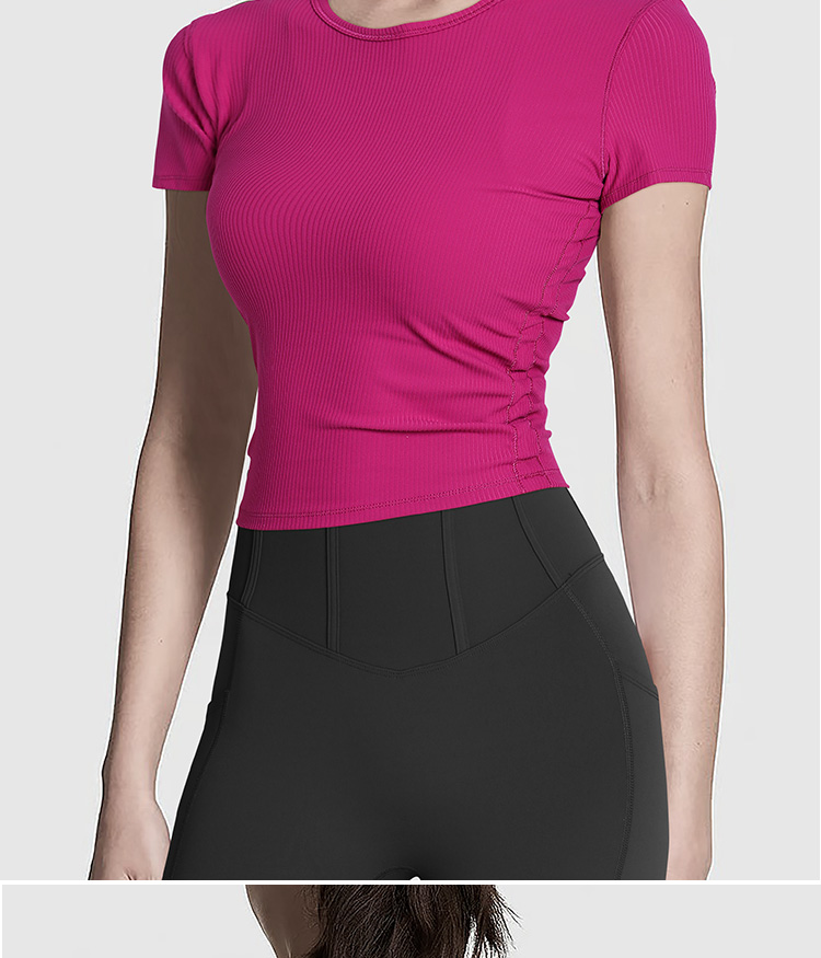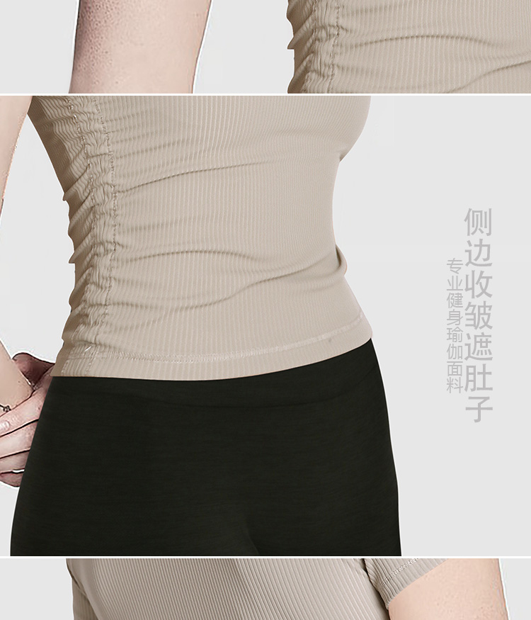 苏派淘显瘦遮肚子短袖瑜伽服上衣侧边收腰健身衣上衣运动速干女夏