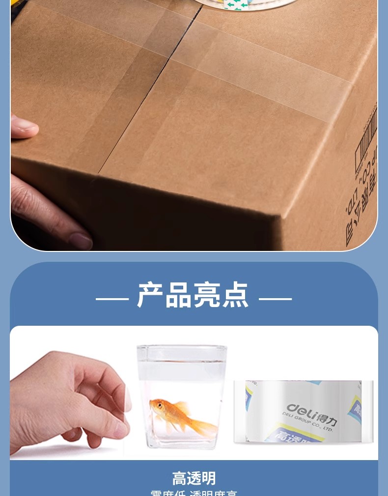 得力30130透明胶带粘胶打包胶带封箱胶 文具胶 24mm*30y桌面胶带