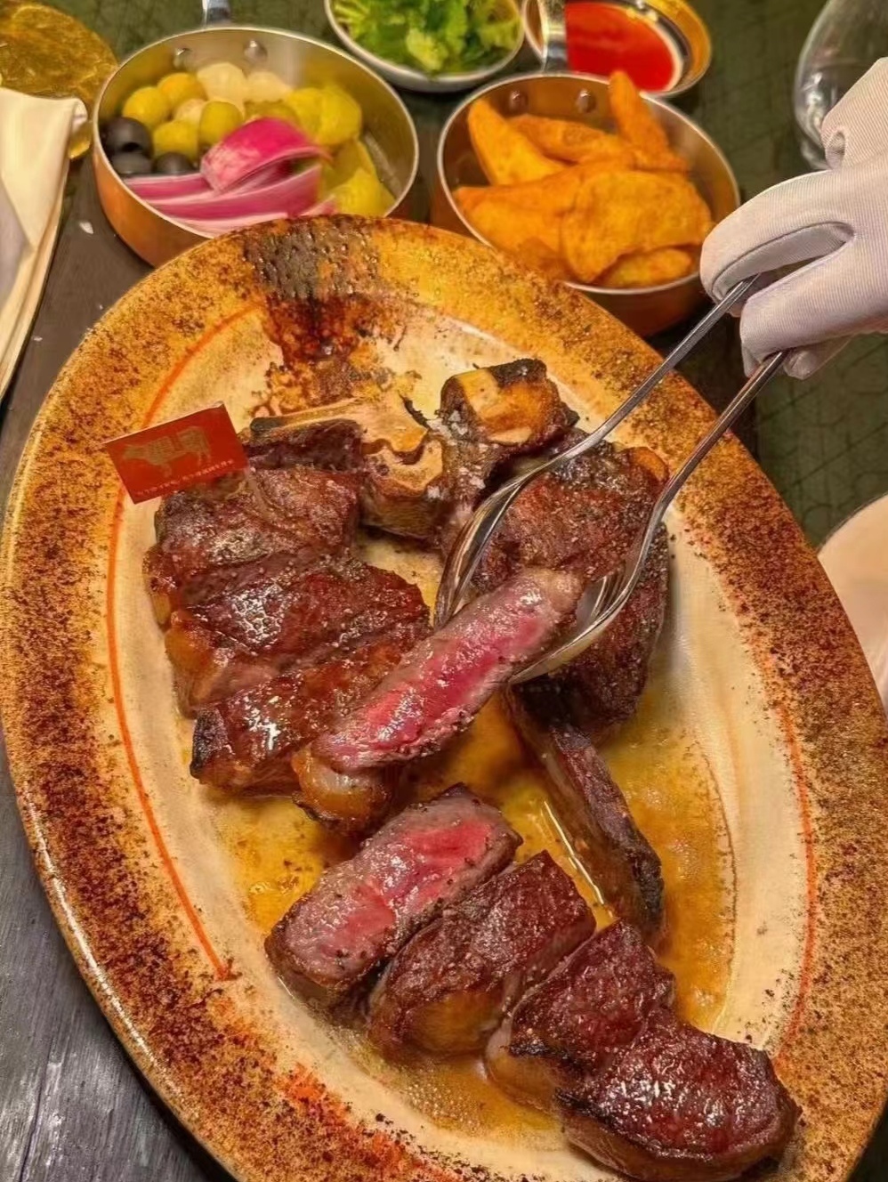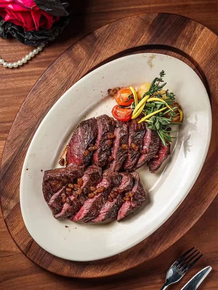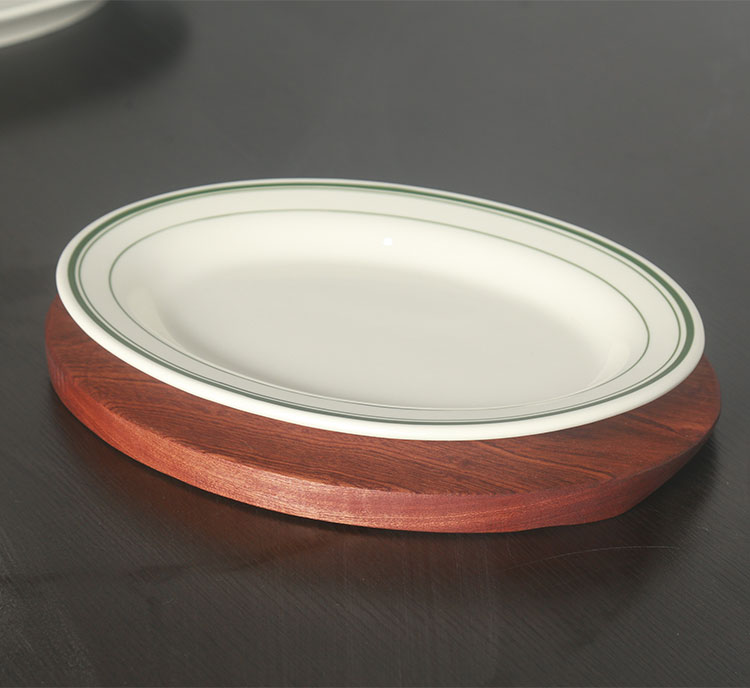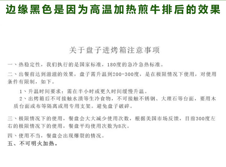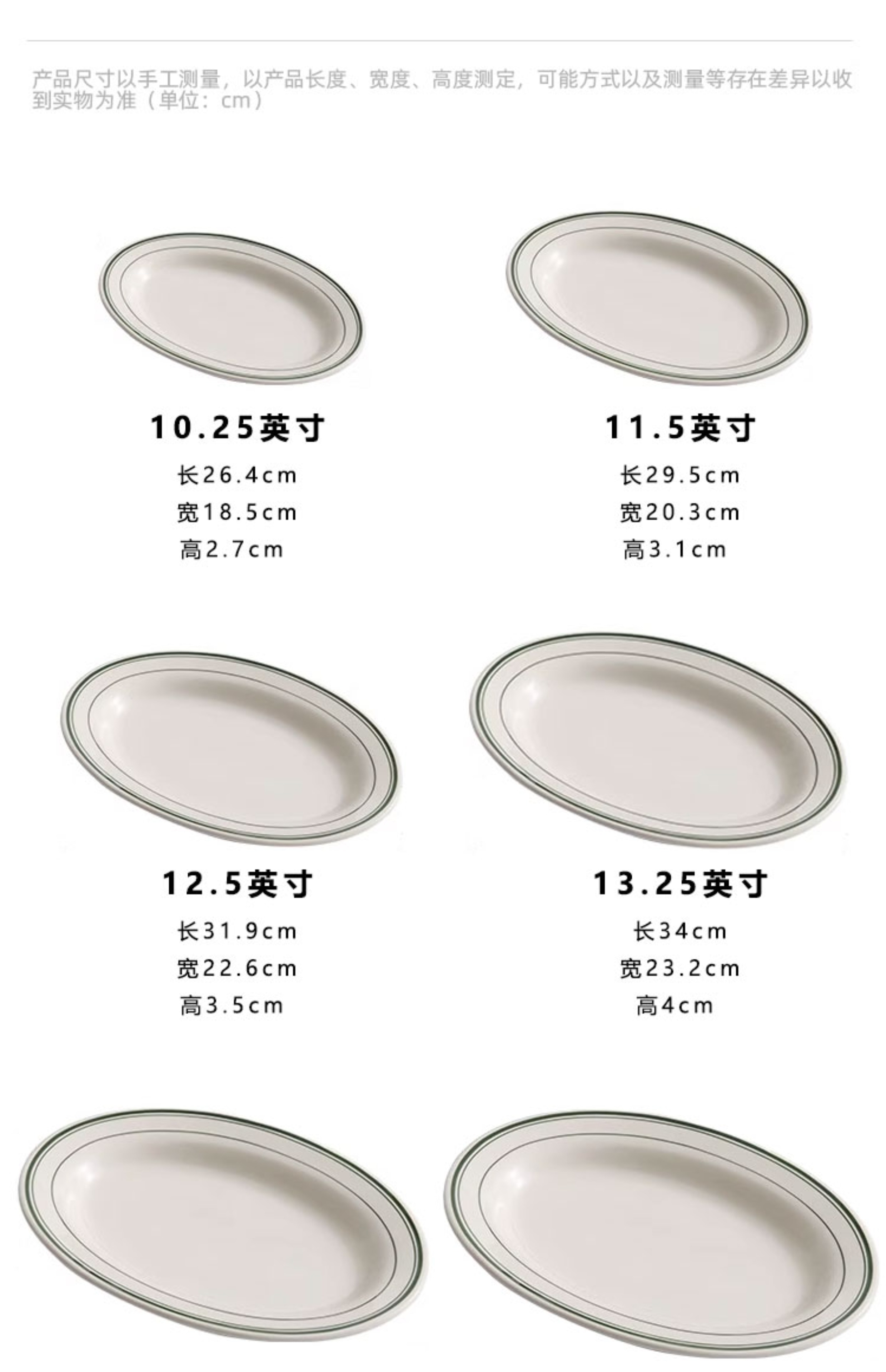 高温牛排盘烤盘烤箱专用战斧牛扒绿线瓷盘耐高温牛排tuxton椭圆盘