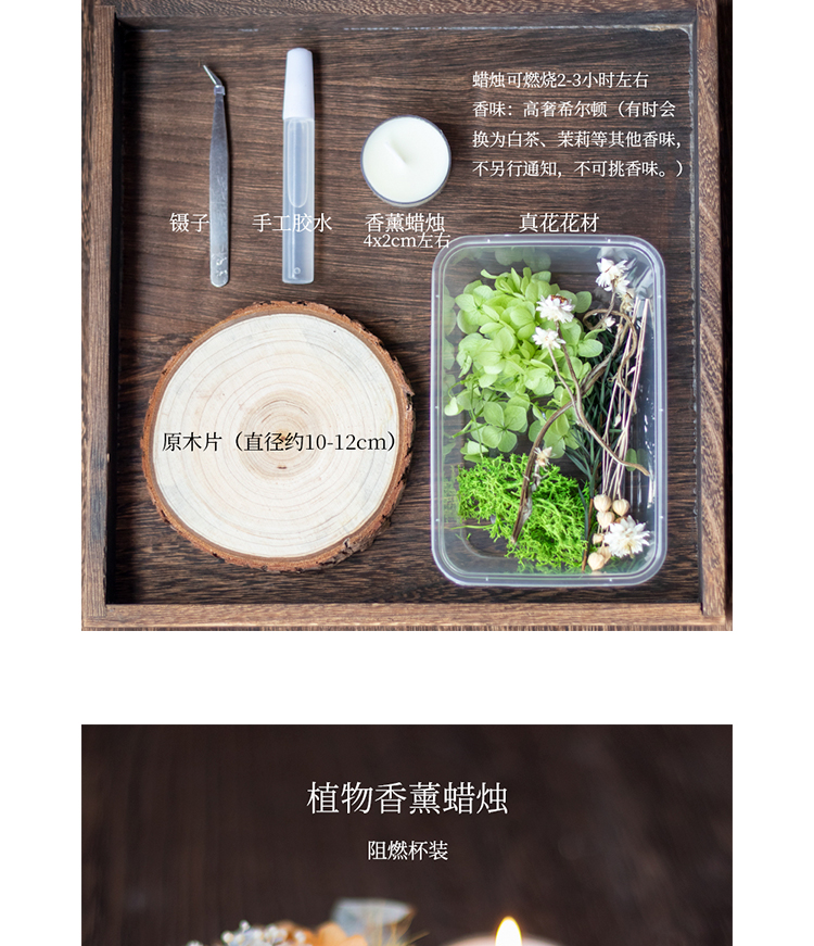 香薰蜡烛台桌面装饰植物摆件520节日沙龙活动永生干花diy材料包