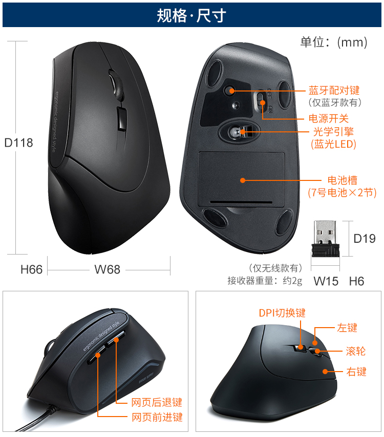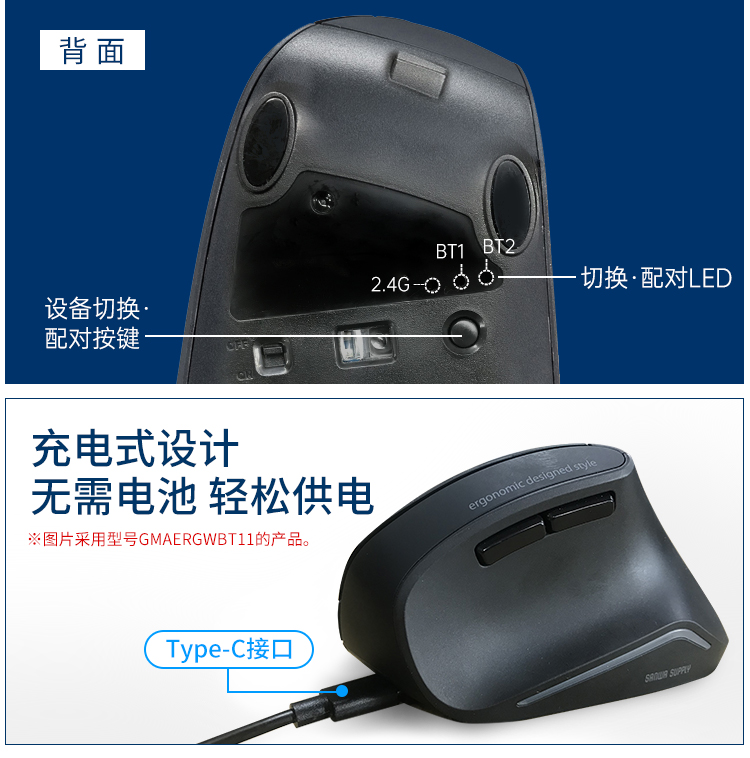 日本SANWA无线鼠标人体工学大尺寸直立竖握式蓝牙usb电脑静音男女