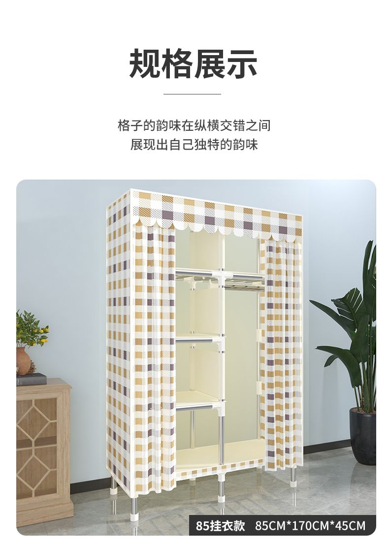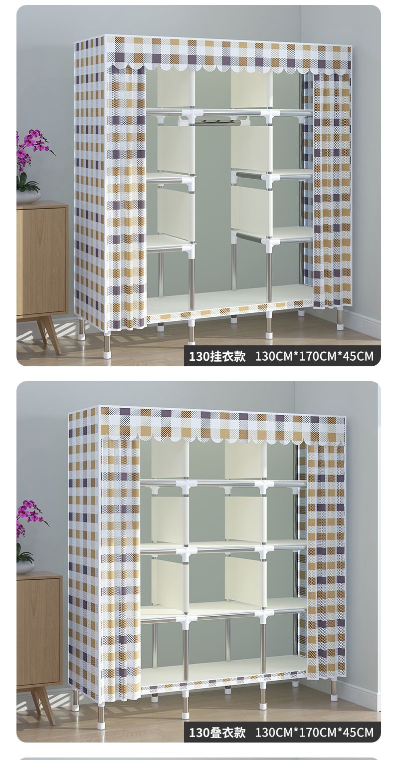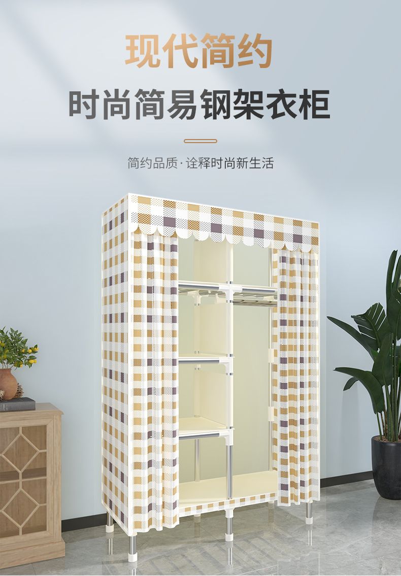 新型简易衣柜家用卧室组装布衣柜全钢架加粗加固出租房收纳柜衣橱