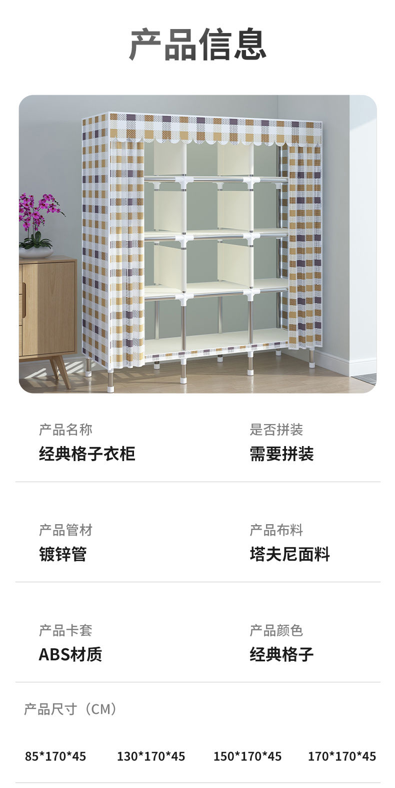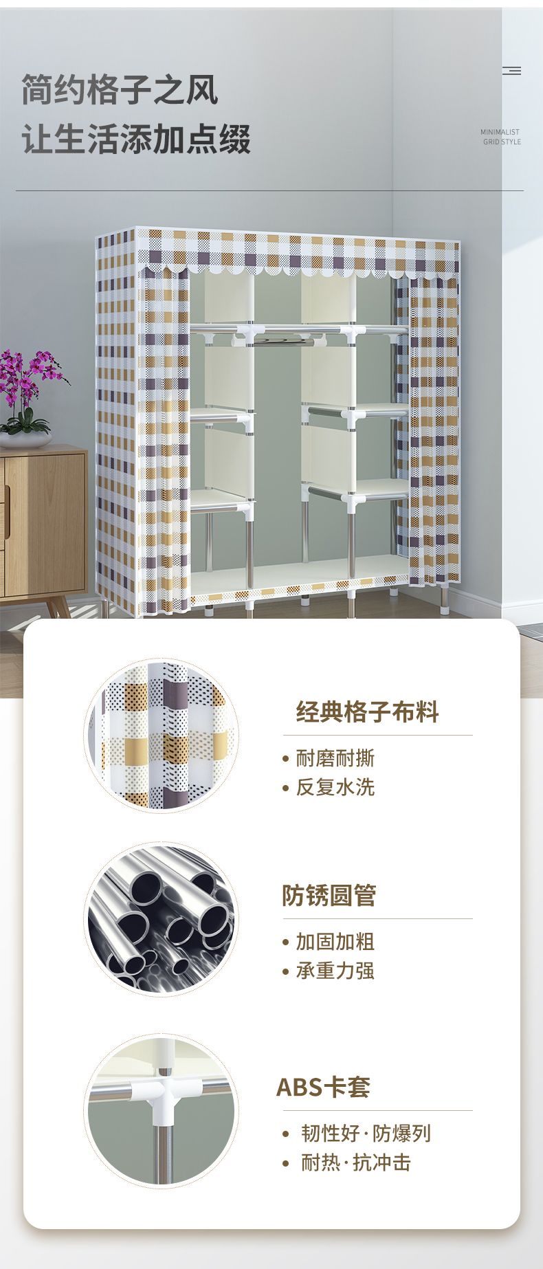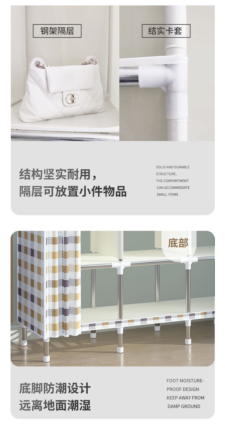 新型简易衣柜家用卧室组装布衣柜全钢架加粗加固出租房收纳柜衣橱