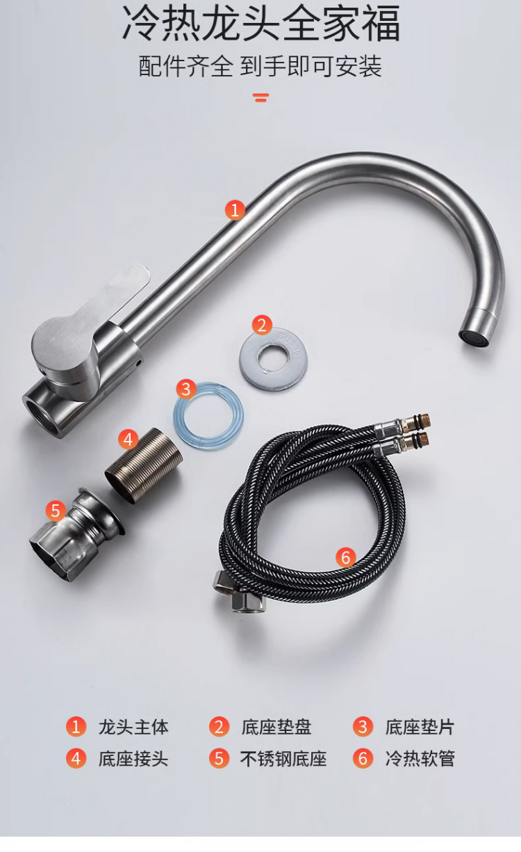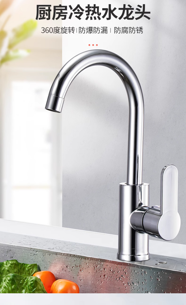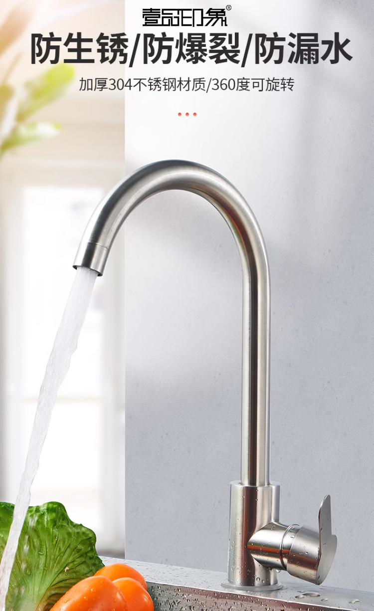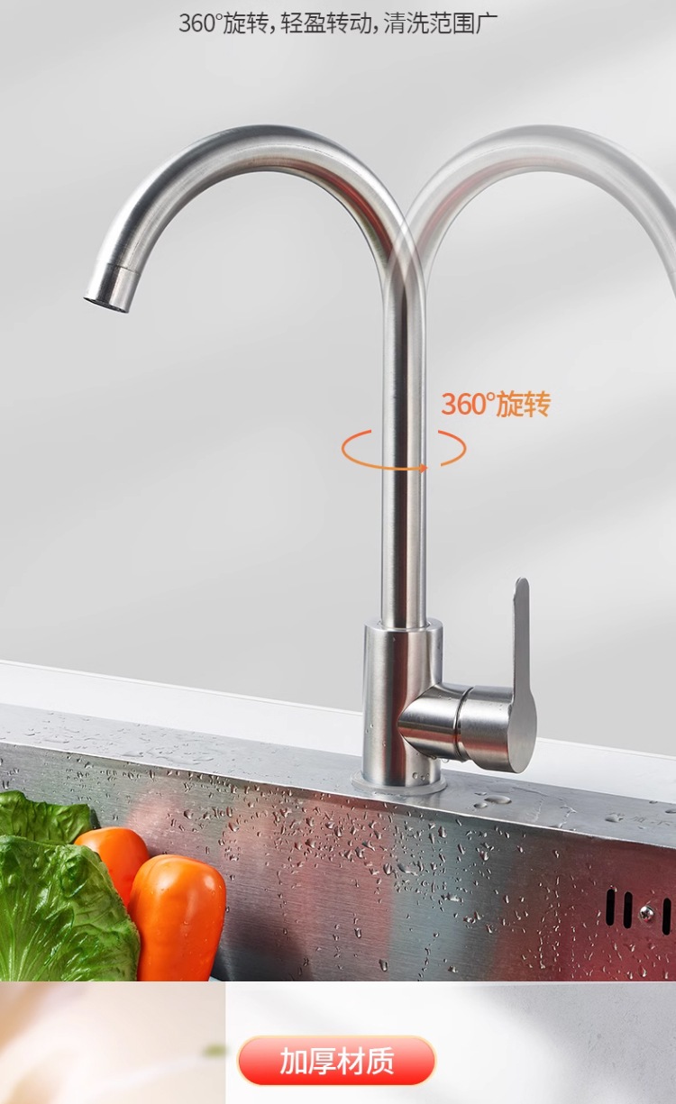 不锈钢厨房水龙头冷热水款家用防溅水二合一洗菜盆单冷洗手池洗碗