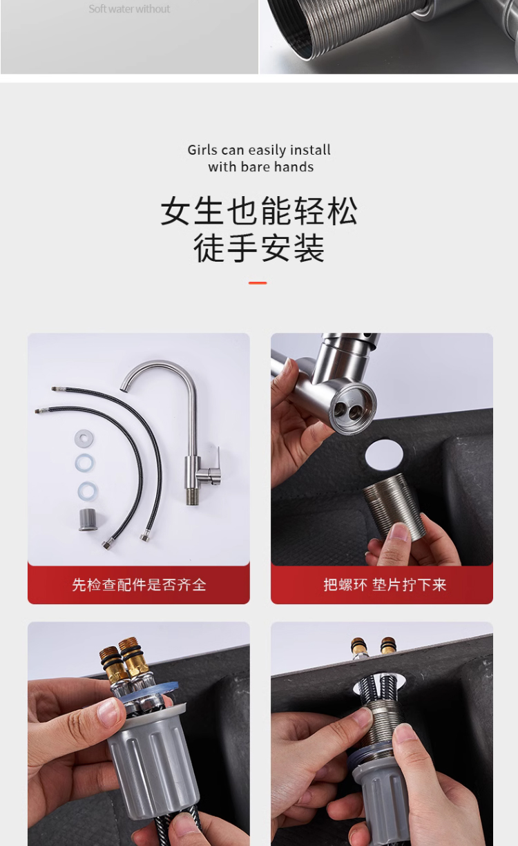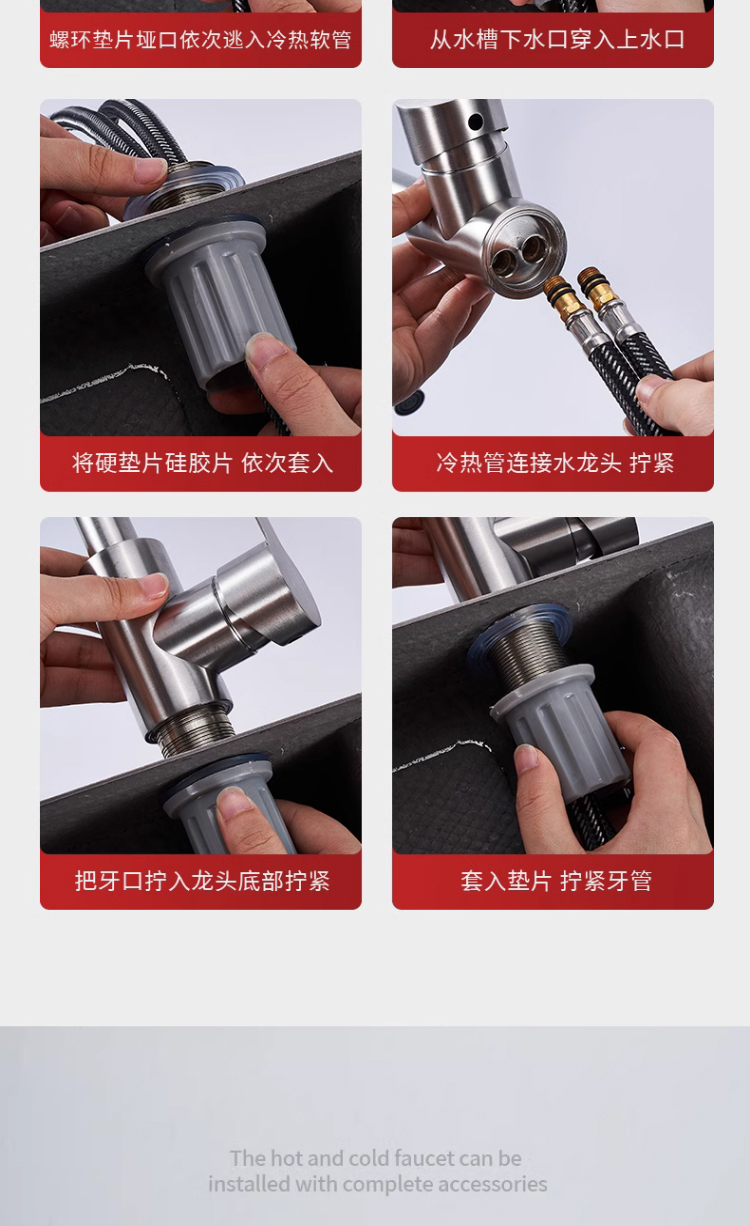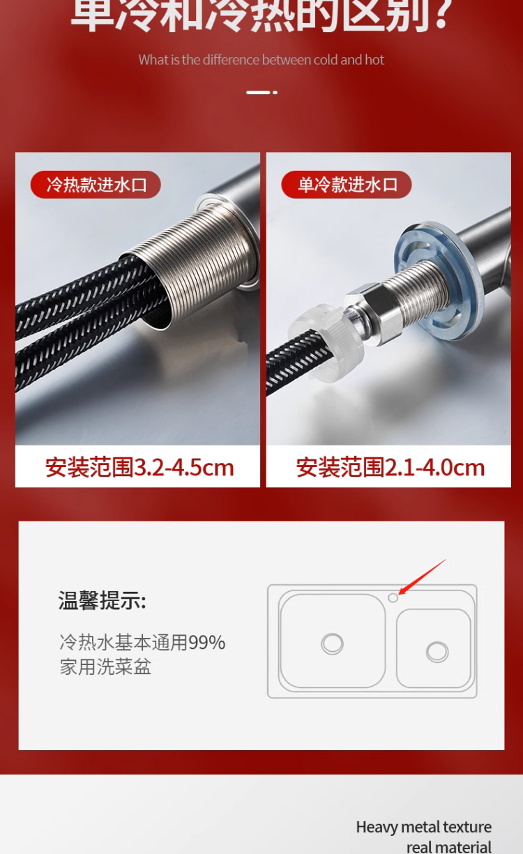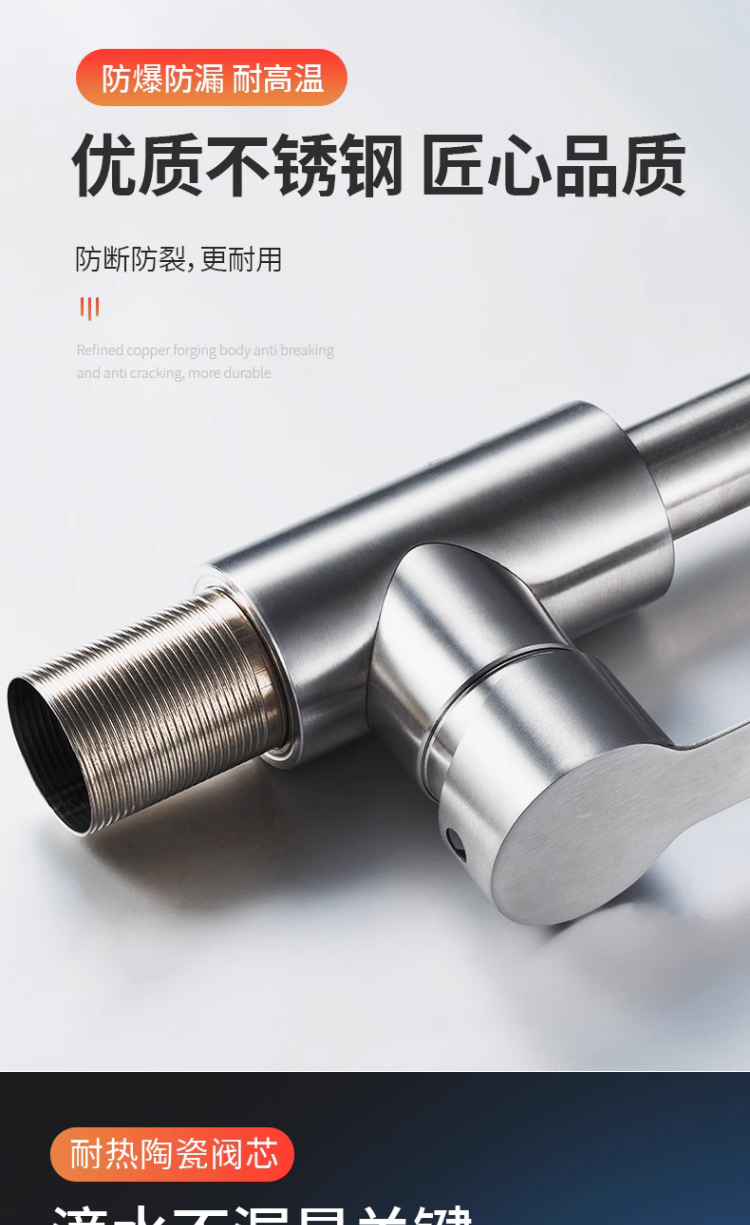 不锈钢厨房水龙头冷热水款家用防溅水二合一洗菜盆单冷洗手池洗碗