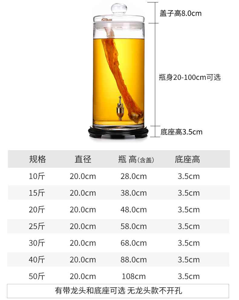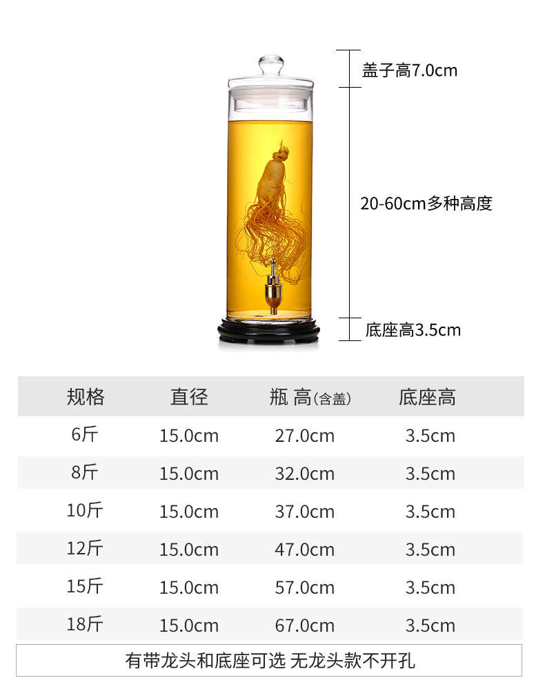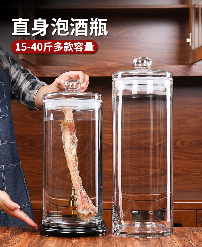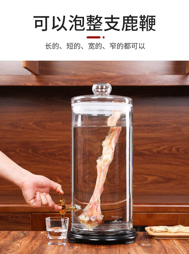 广口泡酒玻璃瓶大号鹿鞭人参专用泡酒瓶带龙头密封罐家用高档酒坛