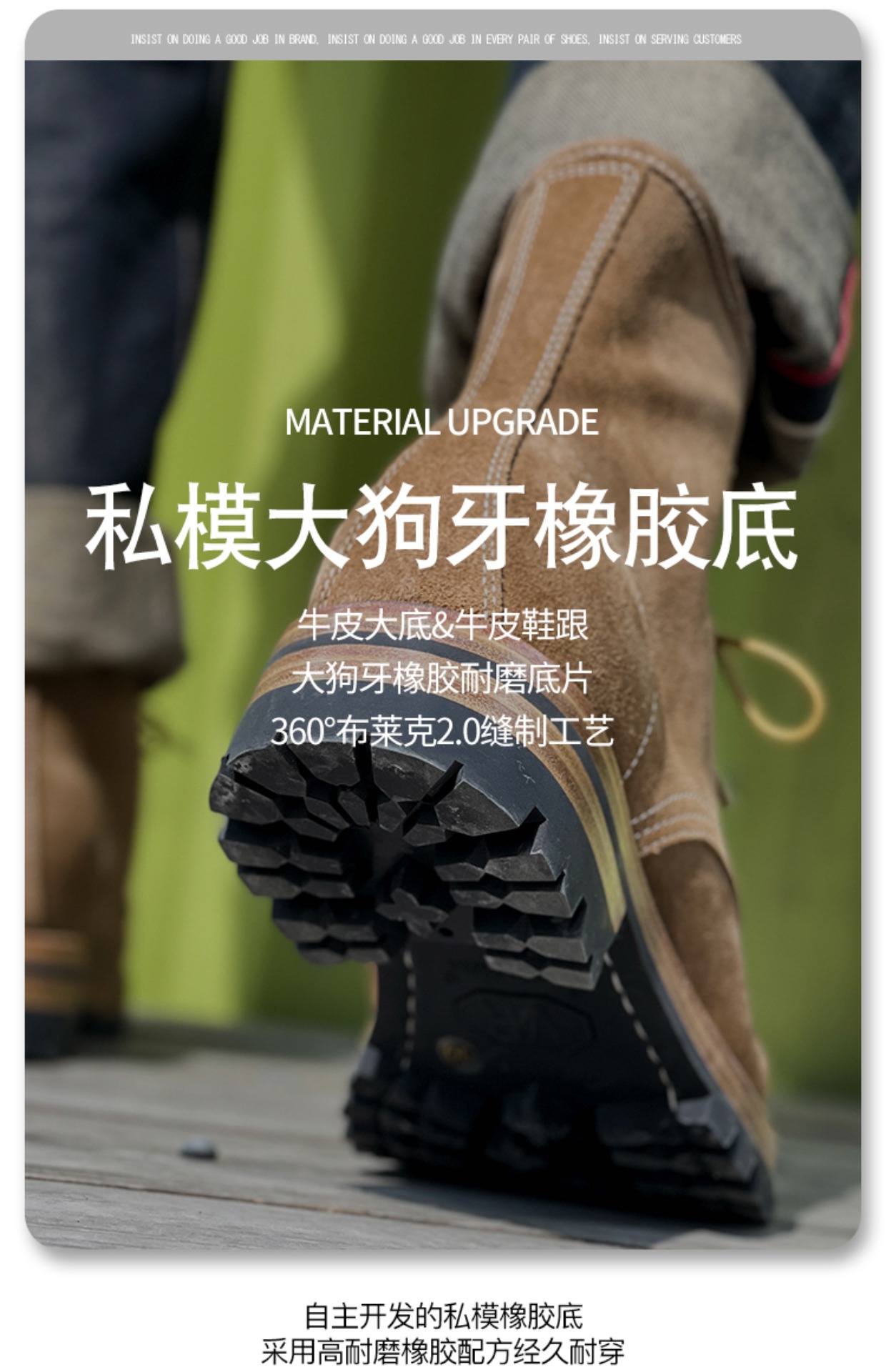 VR兔爷8孔马丁靴男棕色反绒皮美式硬汉风工装鞋真皮高帮机车靴子