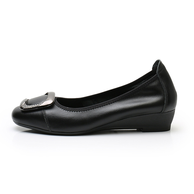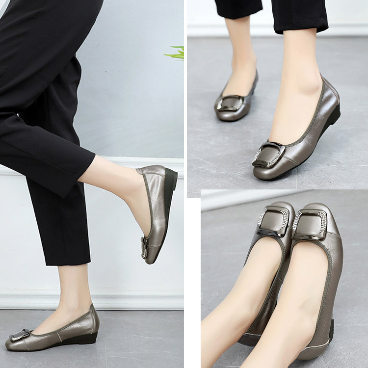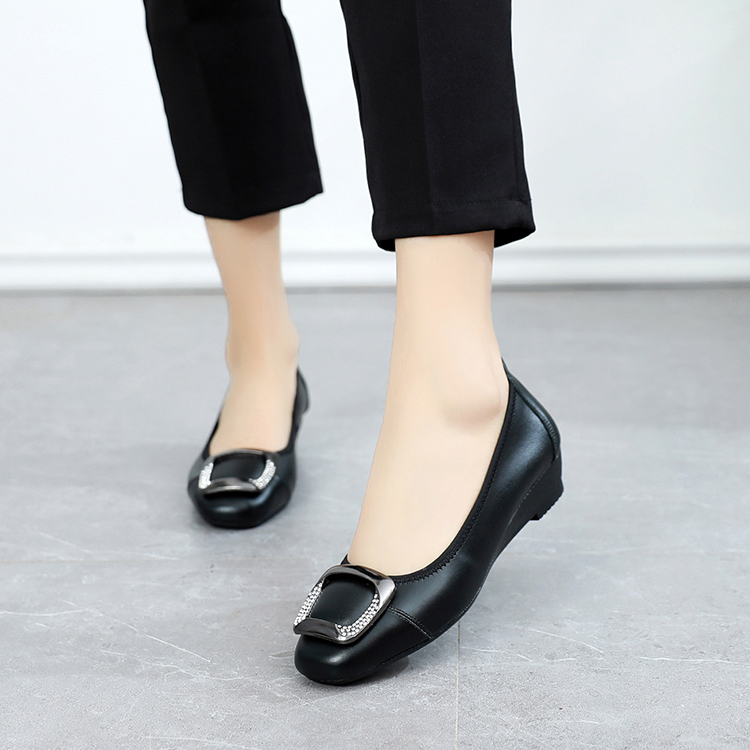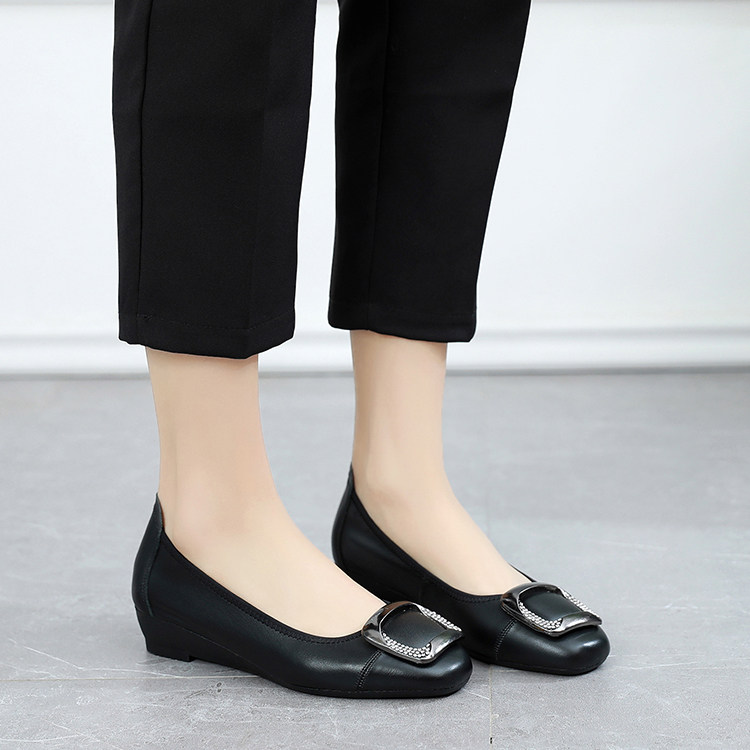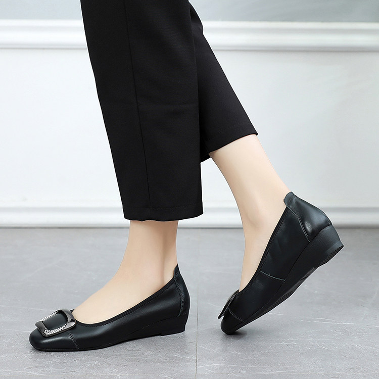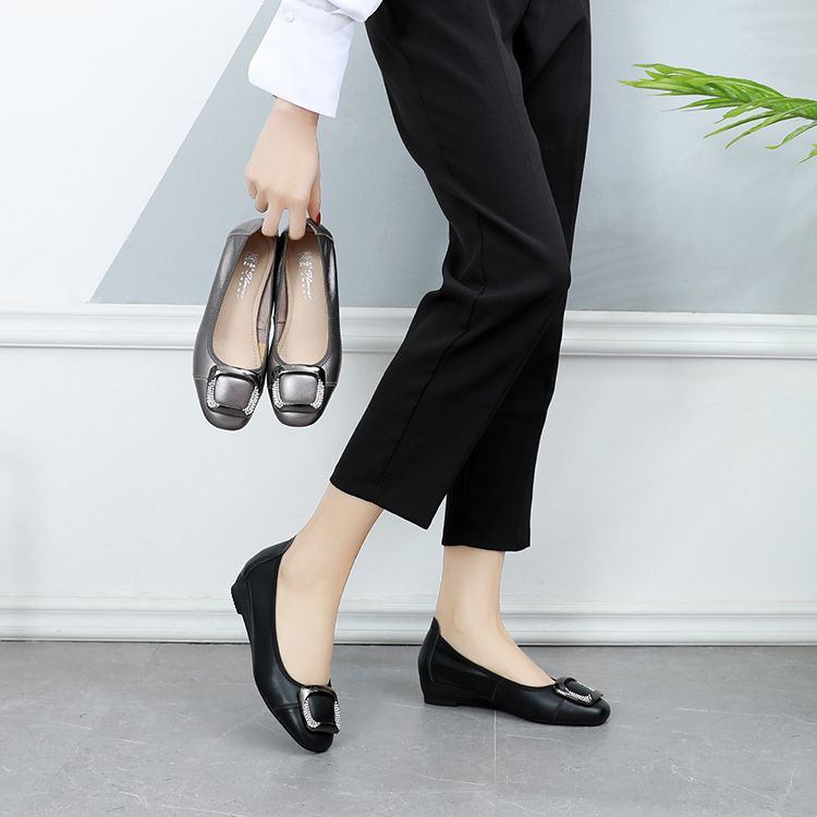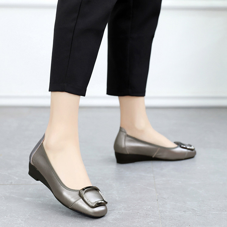 上海花牌真皮浅口软底舒适妈妈鞋坡跟懒人鞋百搭皮鞋大码中年单鞋
