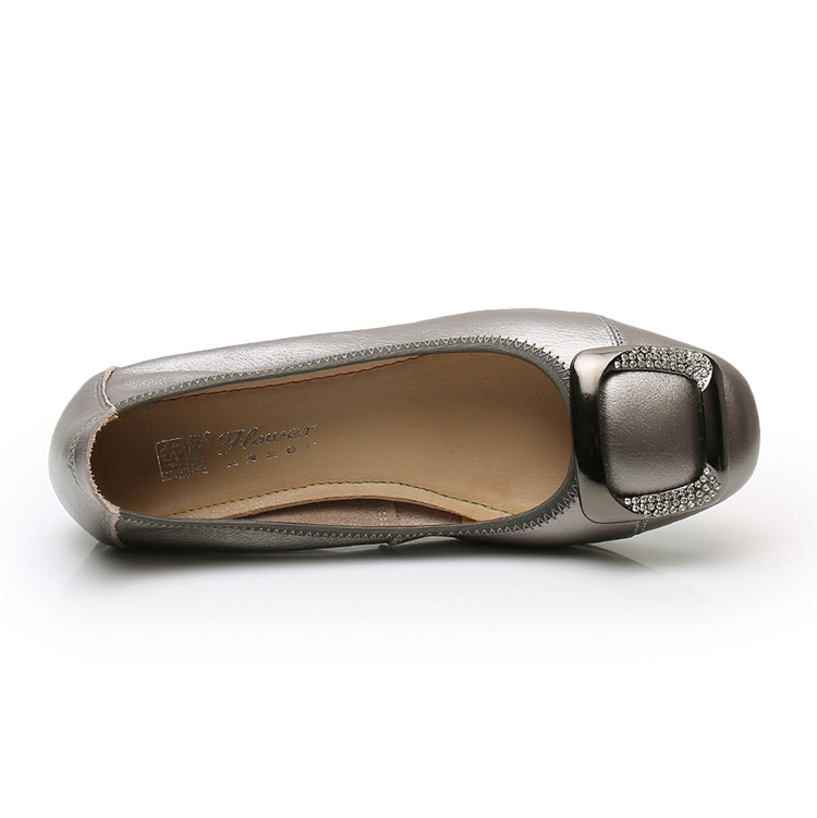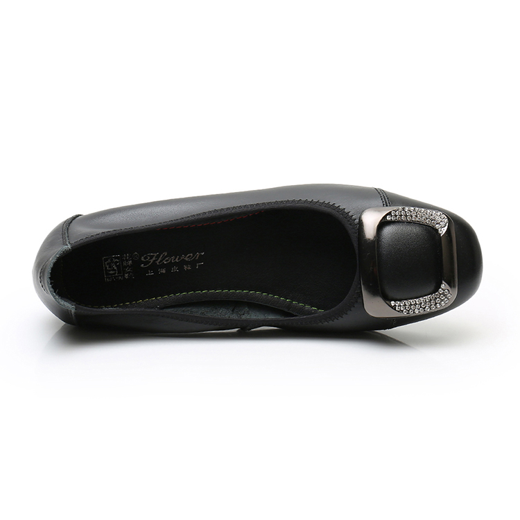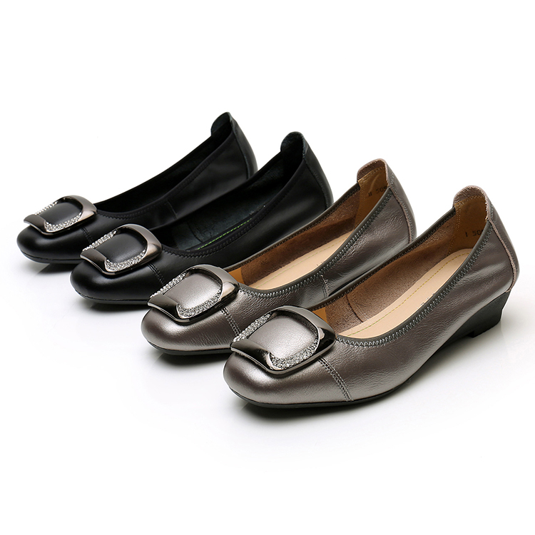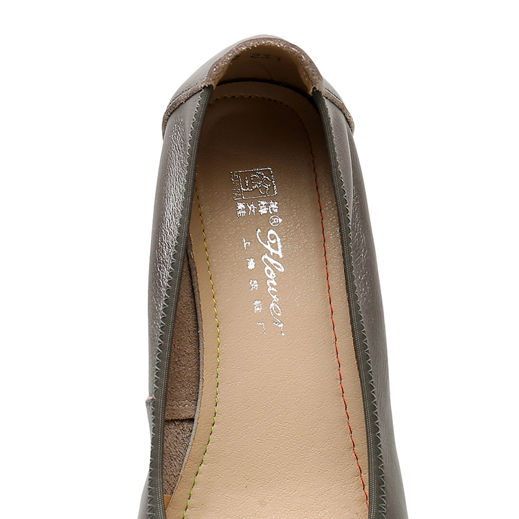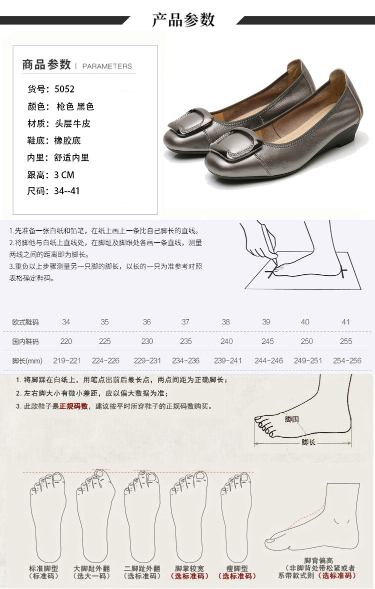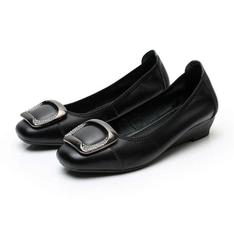 上海花牌真皮浅口软底舒适妈妈鞋坡跟懒人鞋百搭皮鞋大码中年单鞋