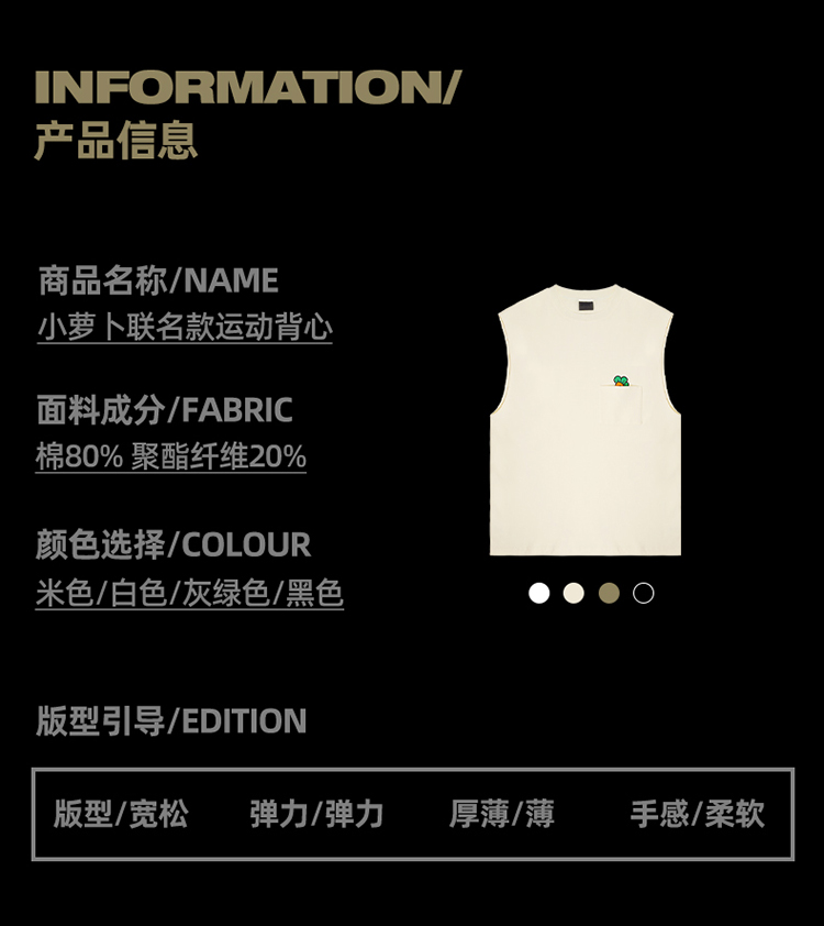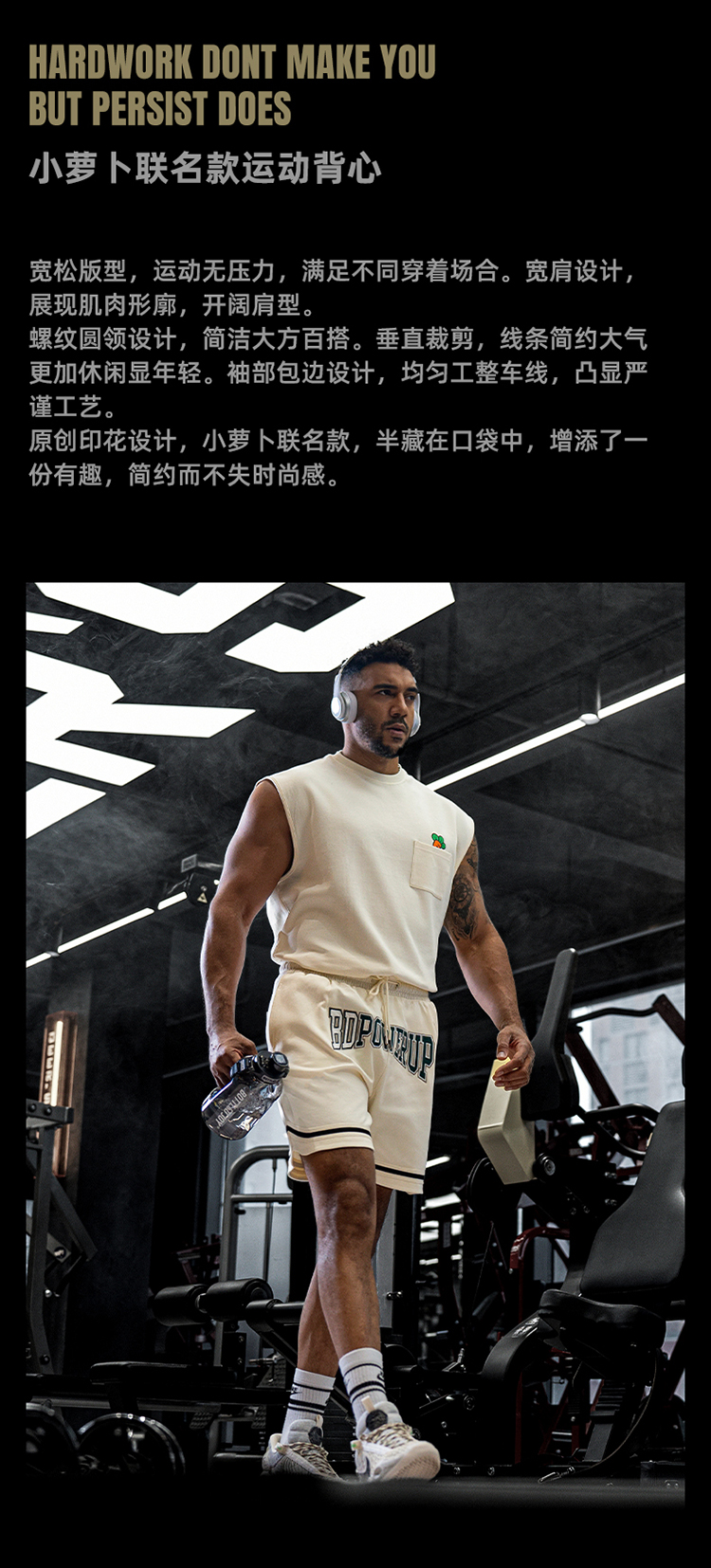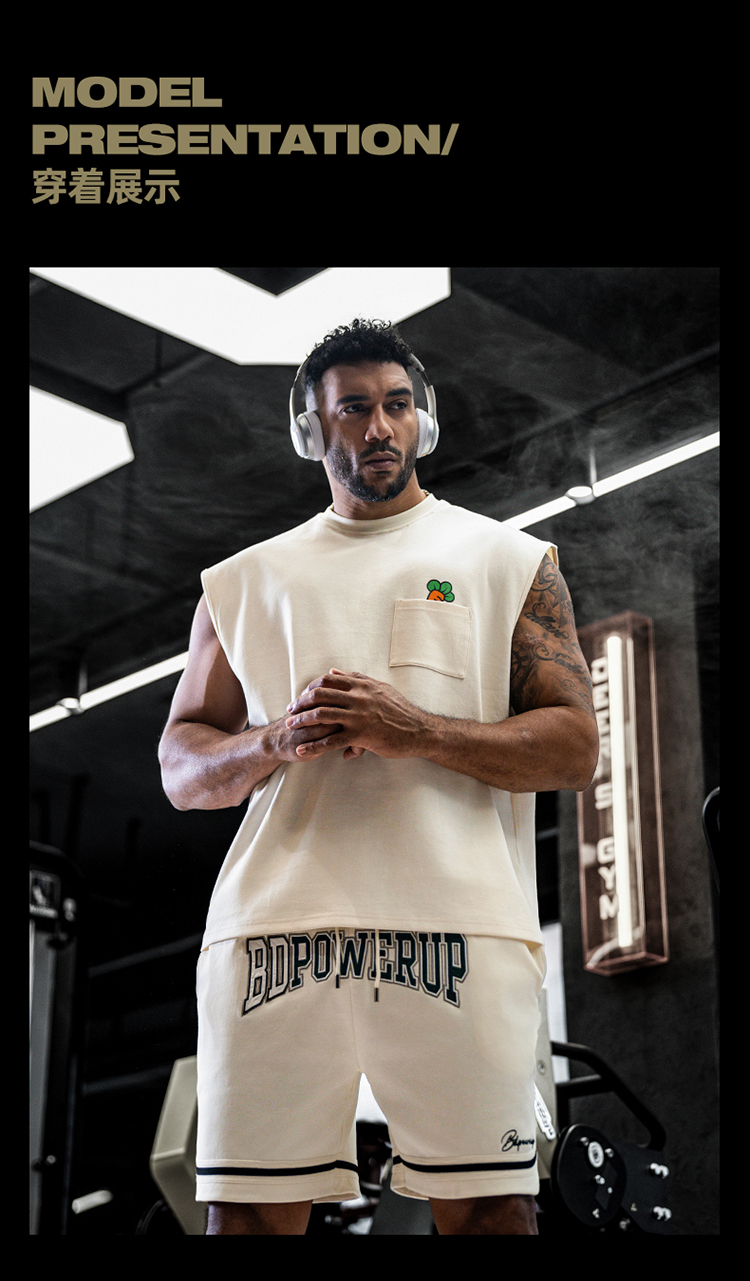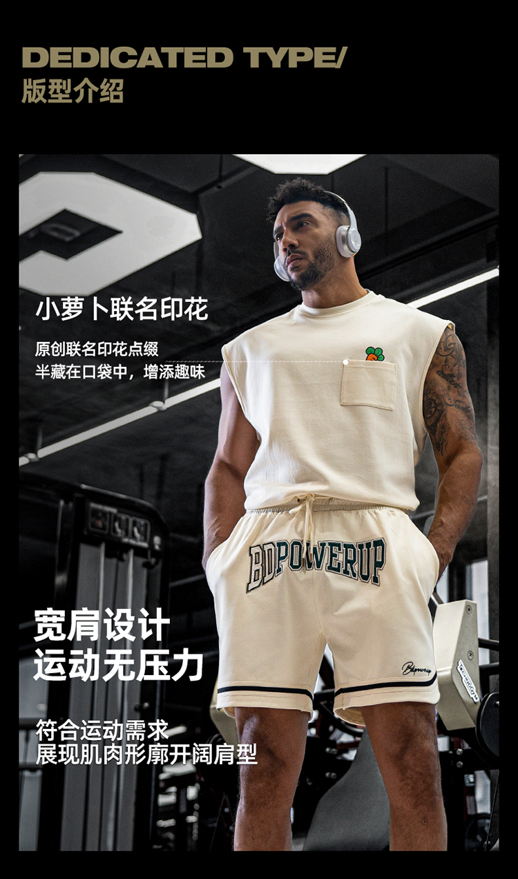 BD健美站小萝卜联名运动背心男宽松跑步训练健身无袖t恤坎肩上衣