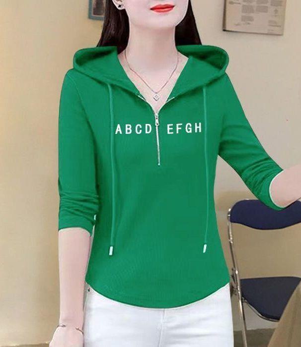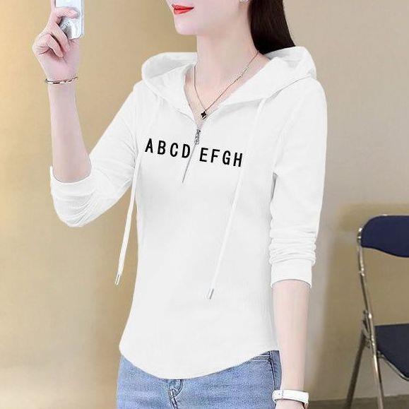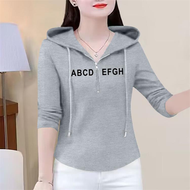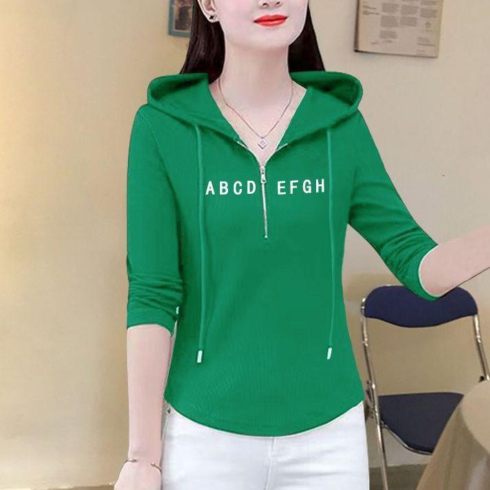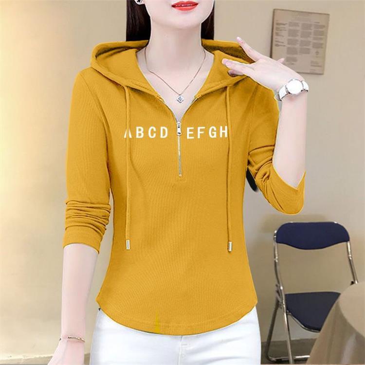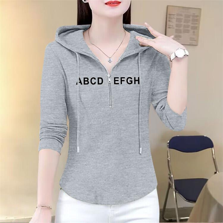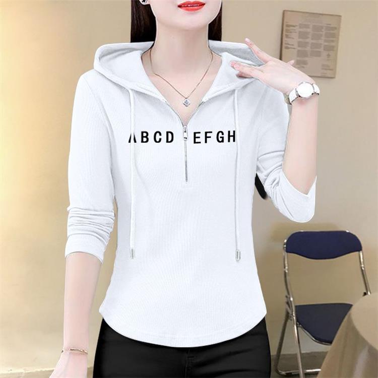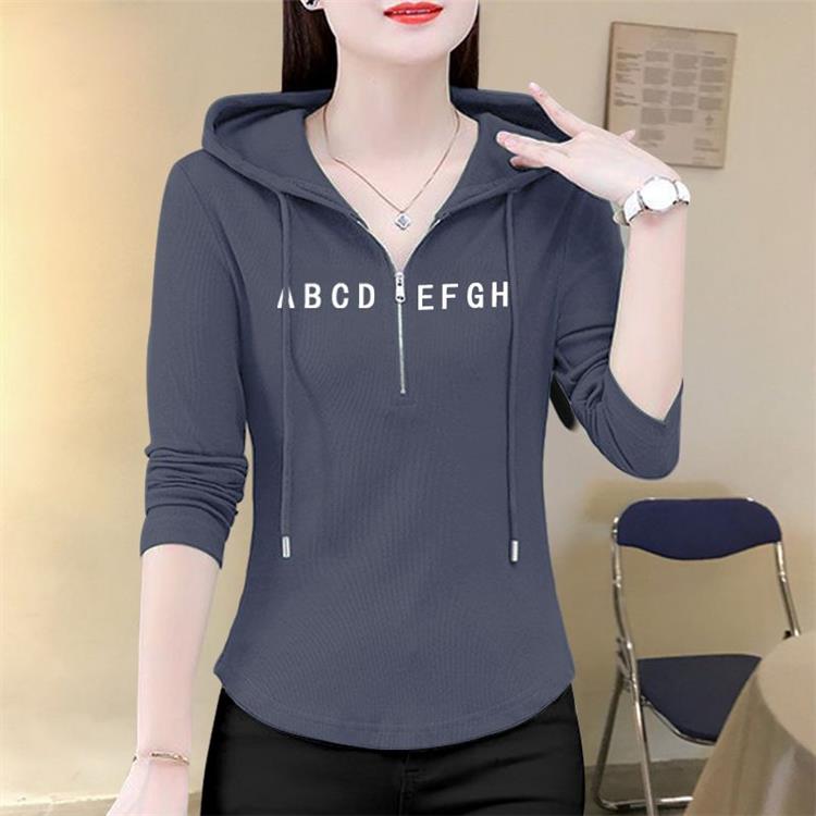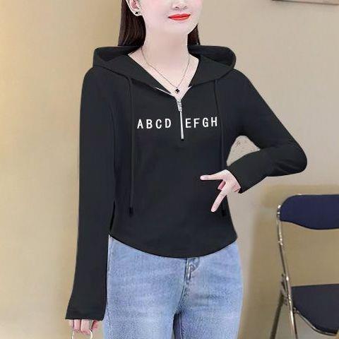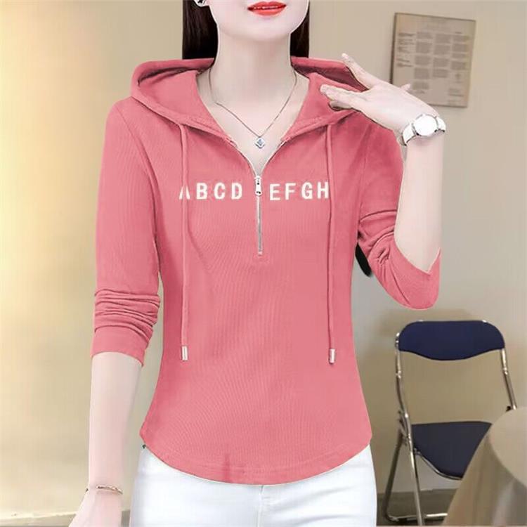 连帽卫衣女打底衫半拉链上衣秋冬季内搭矮个子外套修身时尚休闲衫
