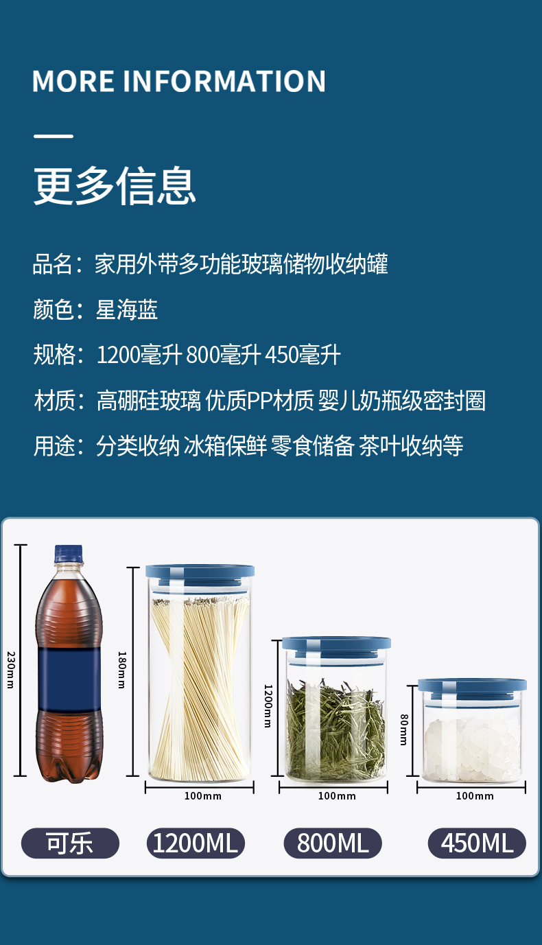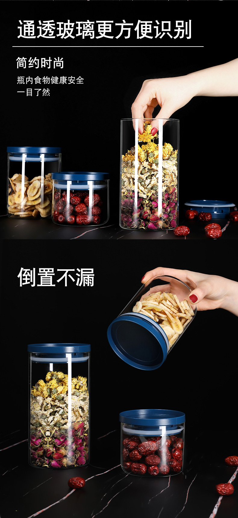 玻璃瓶带盖空瓶茶叶罐储物罐食品密封罐大五谷杂粮收纳盒坚果罐子