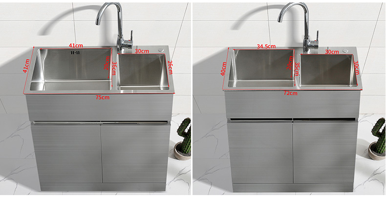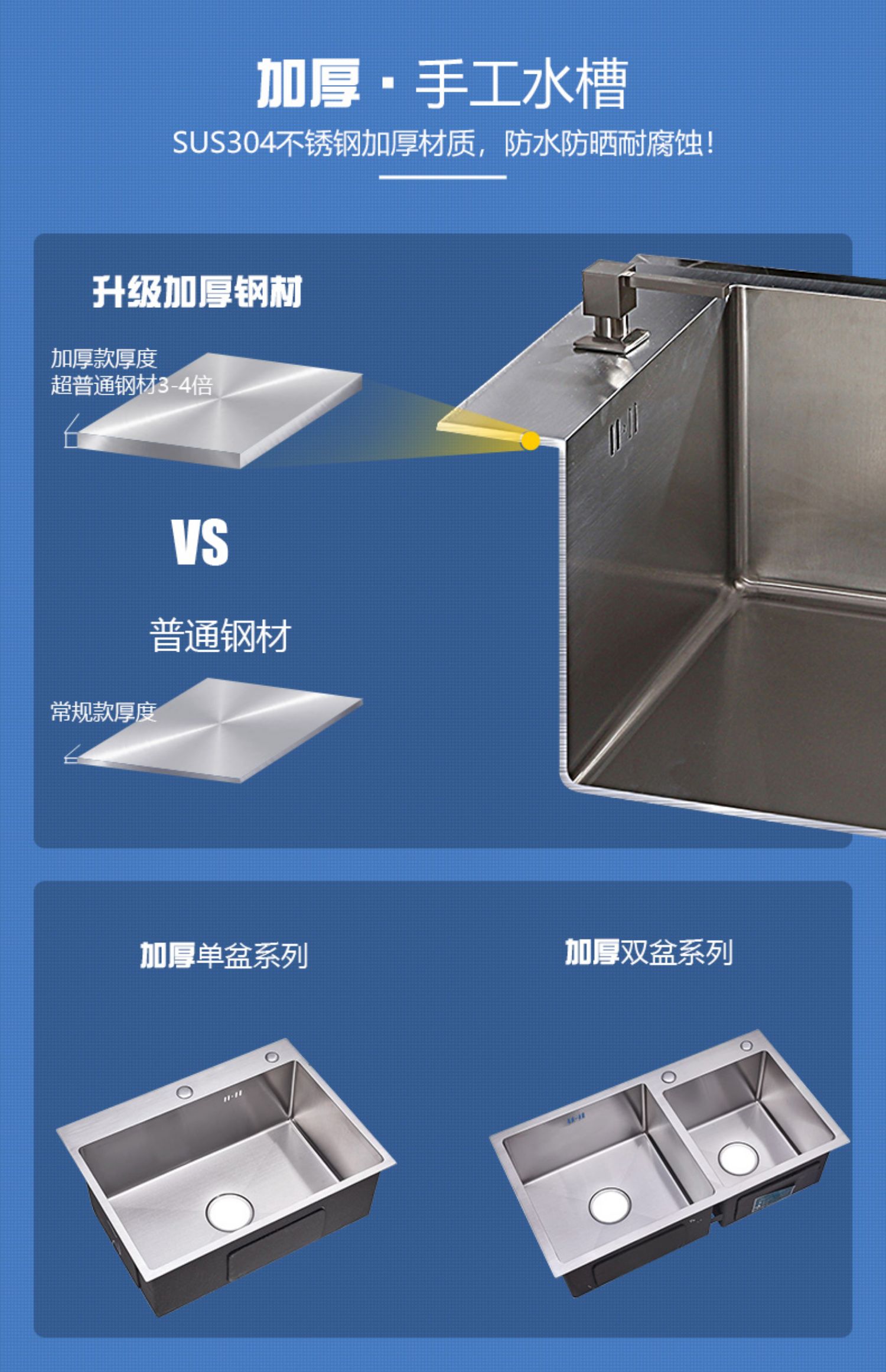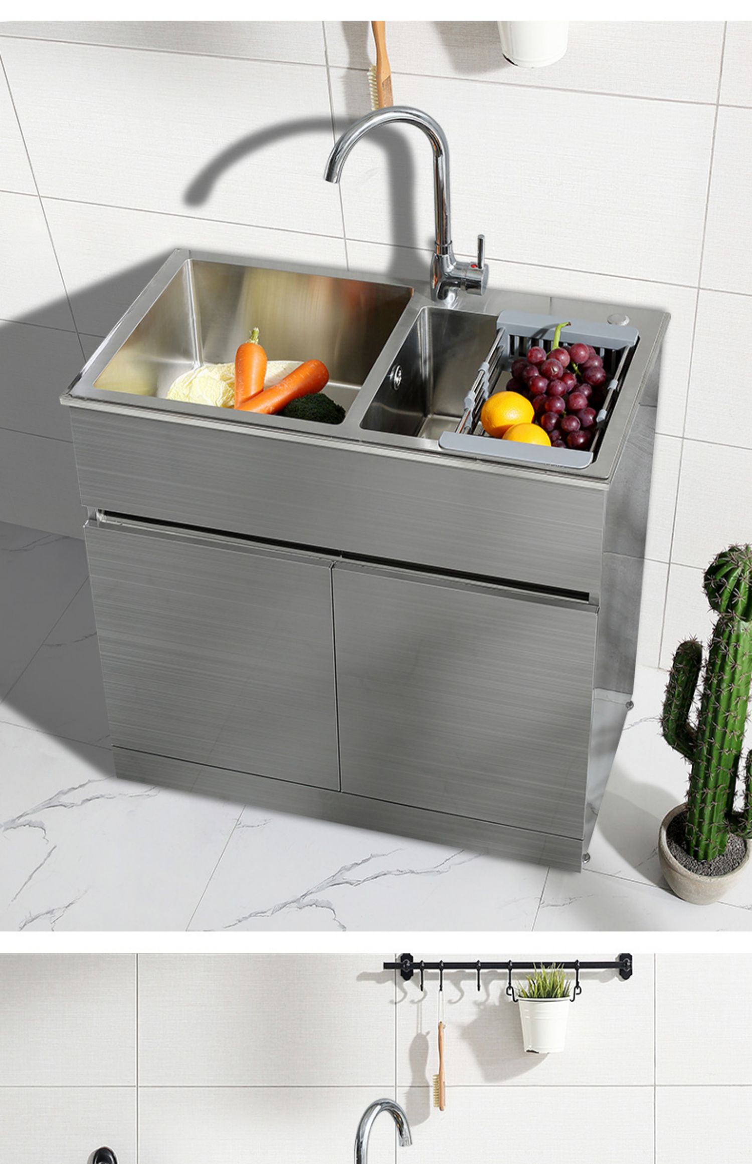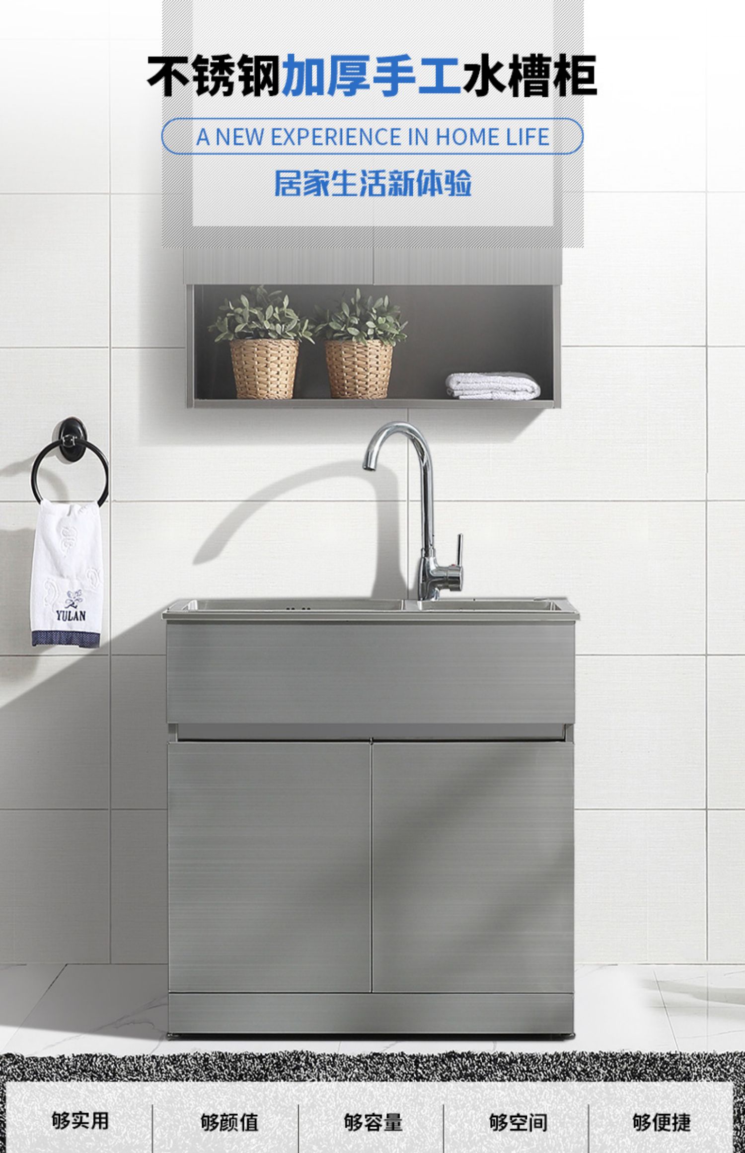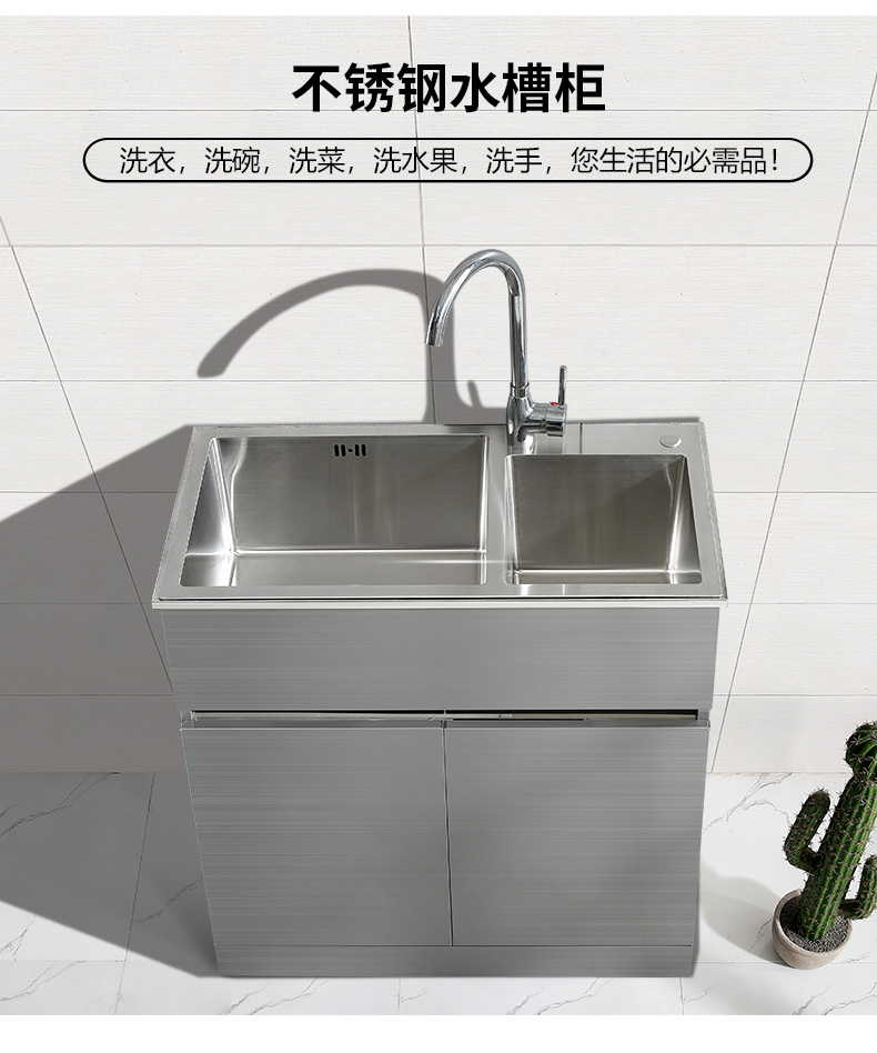 不锈钢水槽柜加厚手工sus304双槽洗菜盆阳台洗衣柜浴室柜洗碗水槽