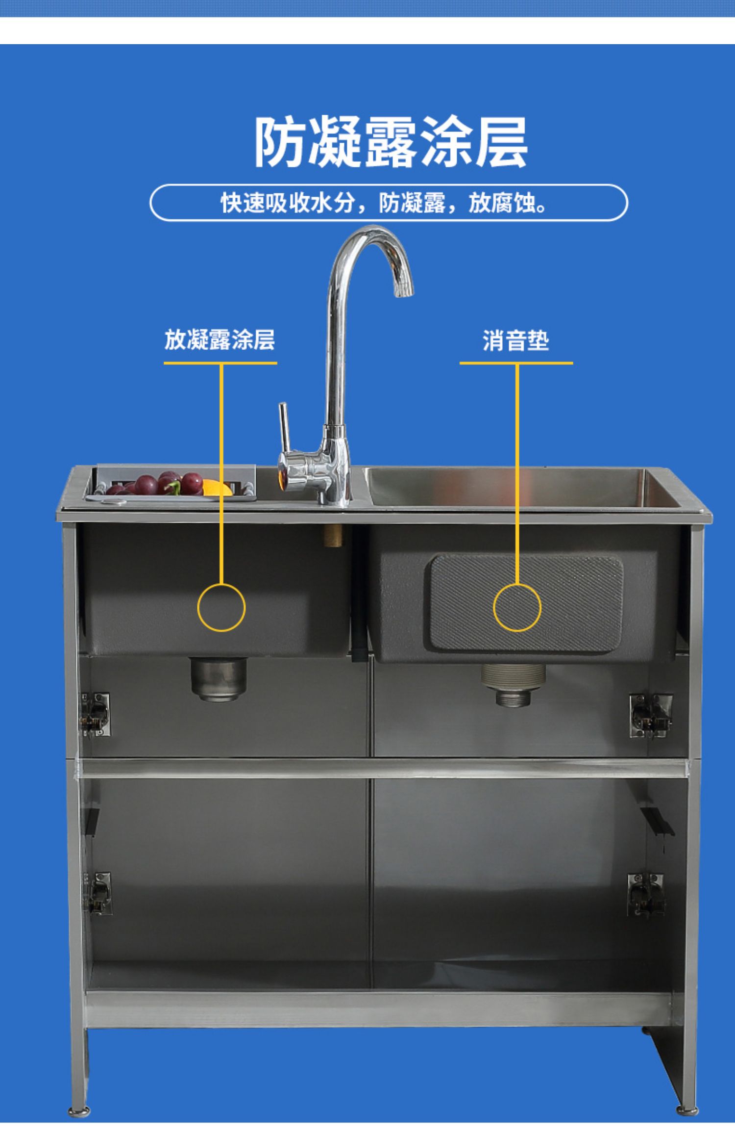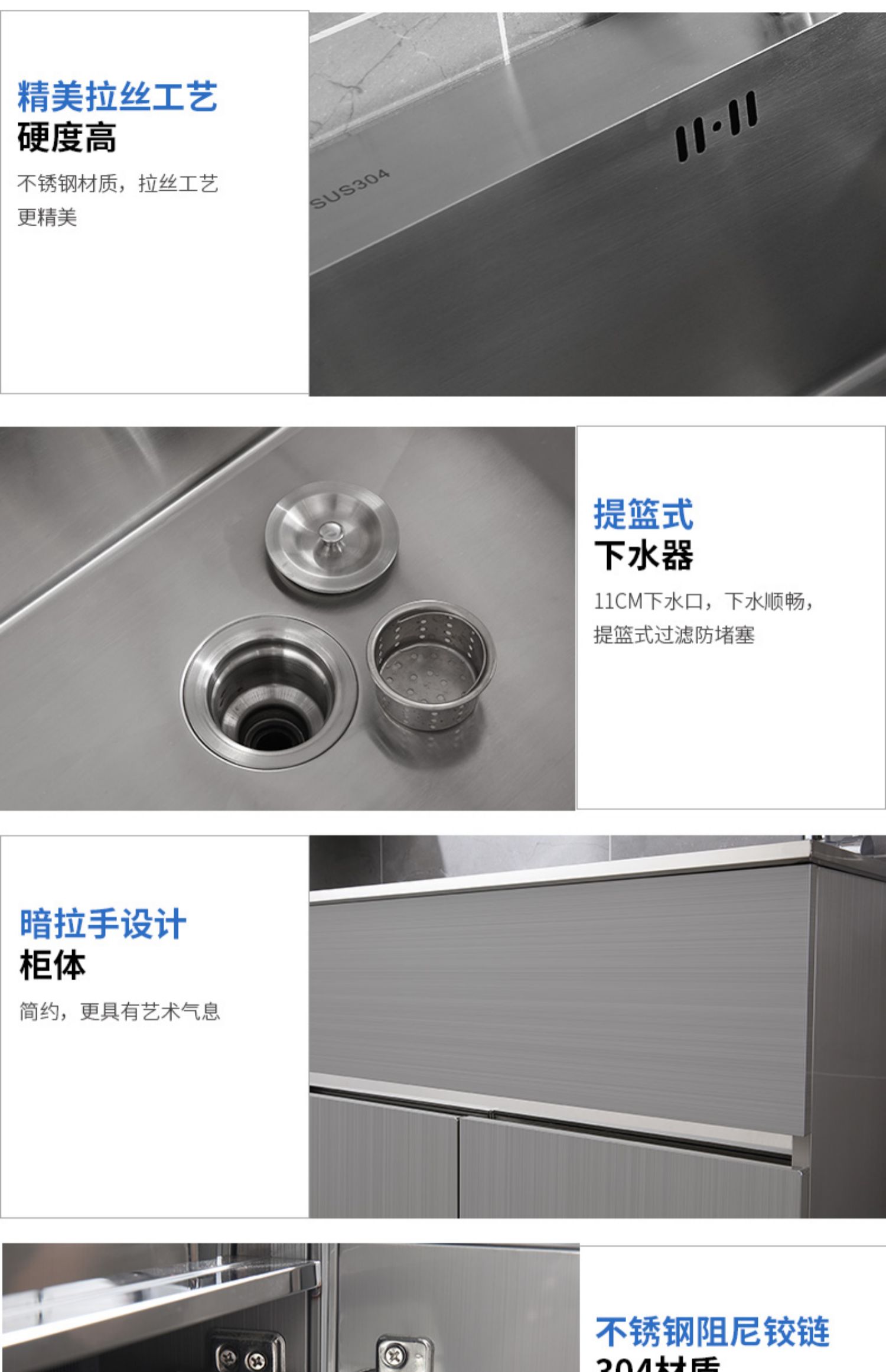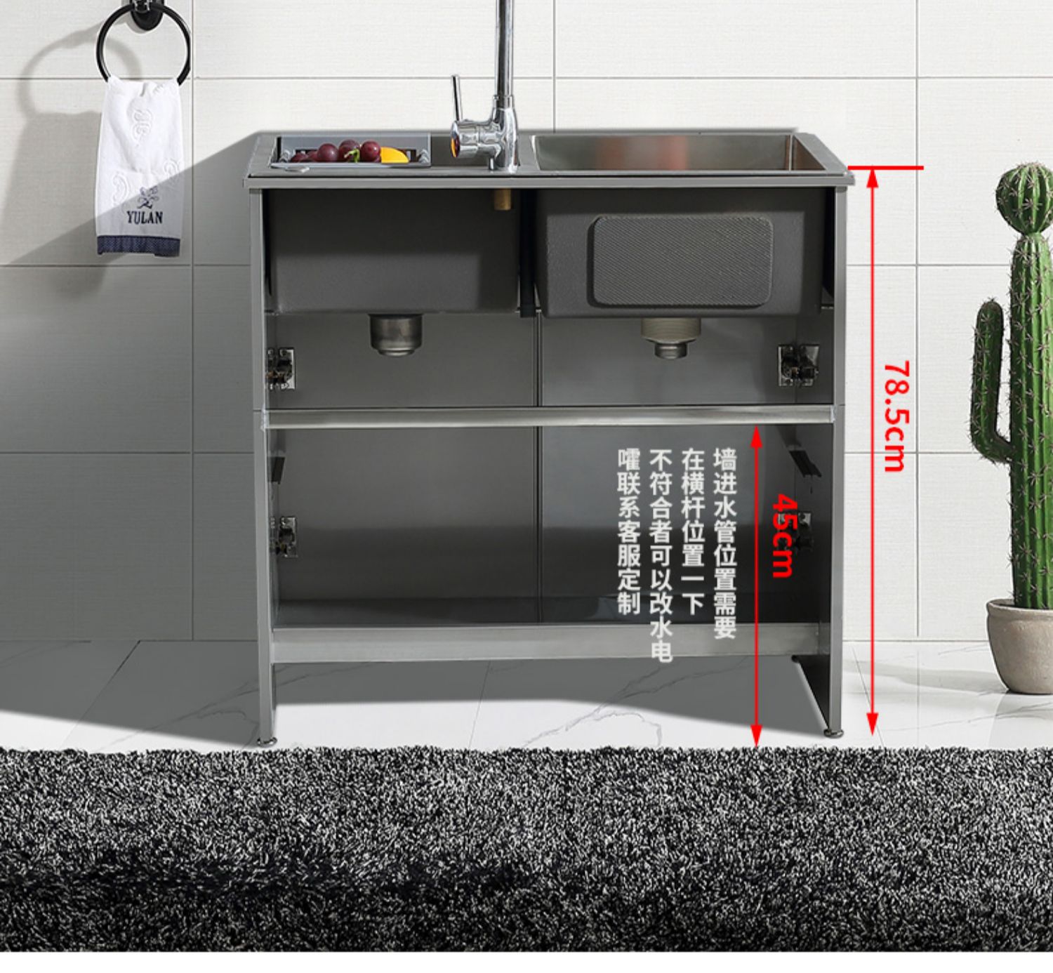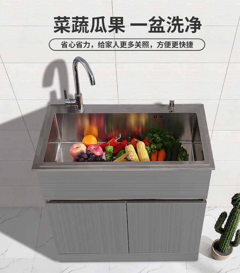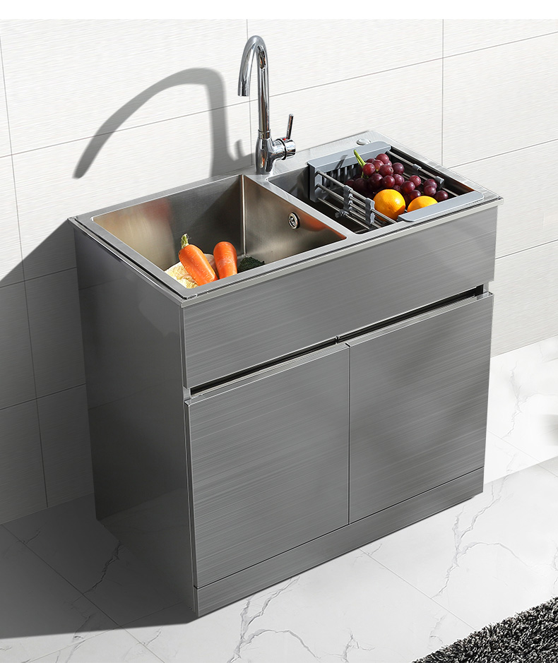 不锈钢水槽柜加厚手工sus304双槽洗菜盆阳台洗衣柜浴室柜洗碗水槽