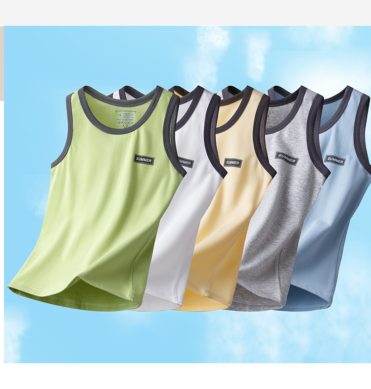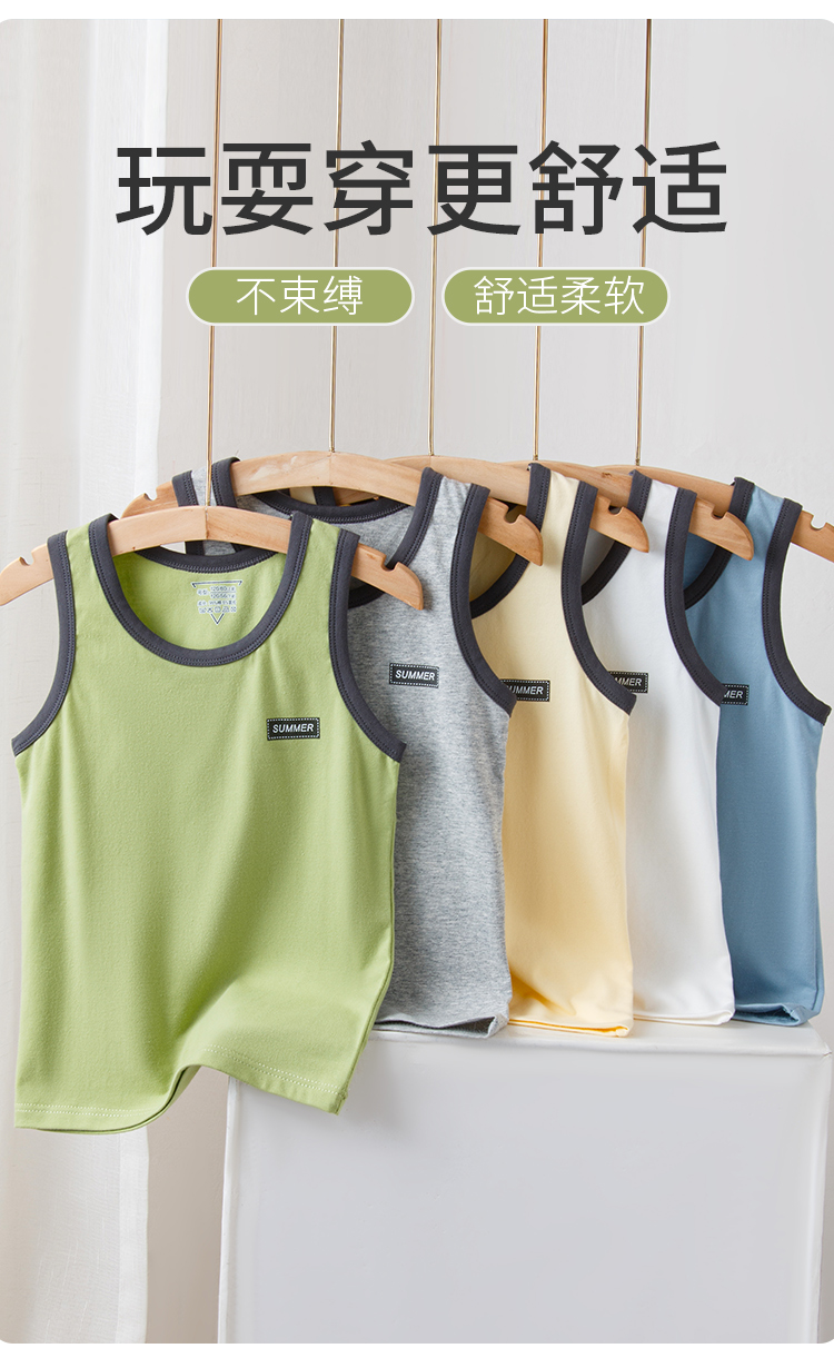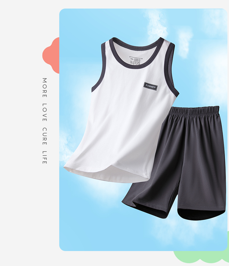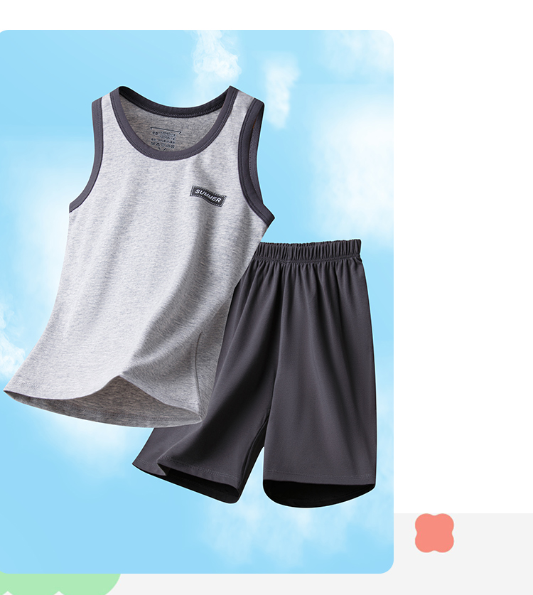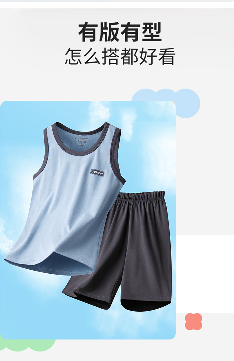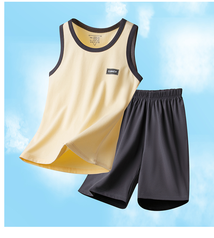 儿童纯棉打底背心夏季男小背心中大童睡衣春秋无袖内衣五分裤套装