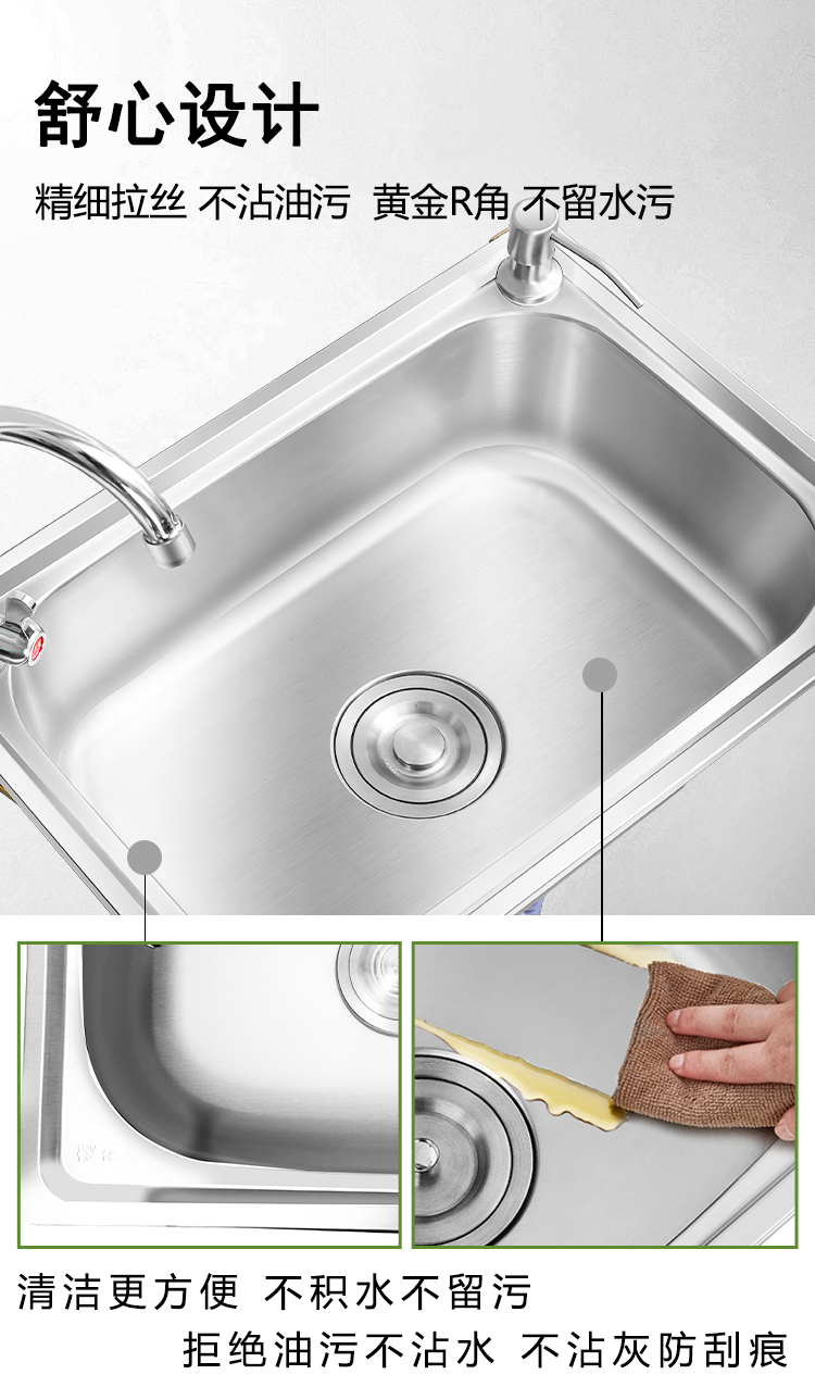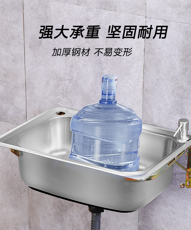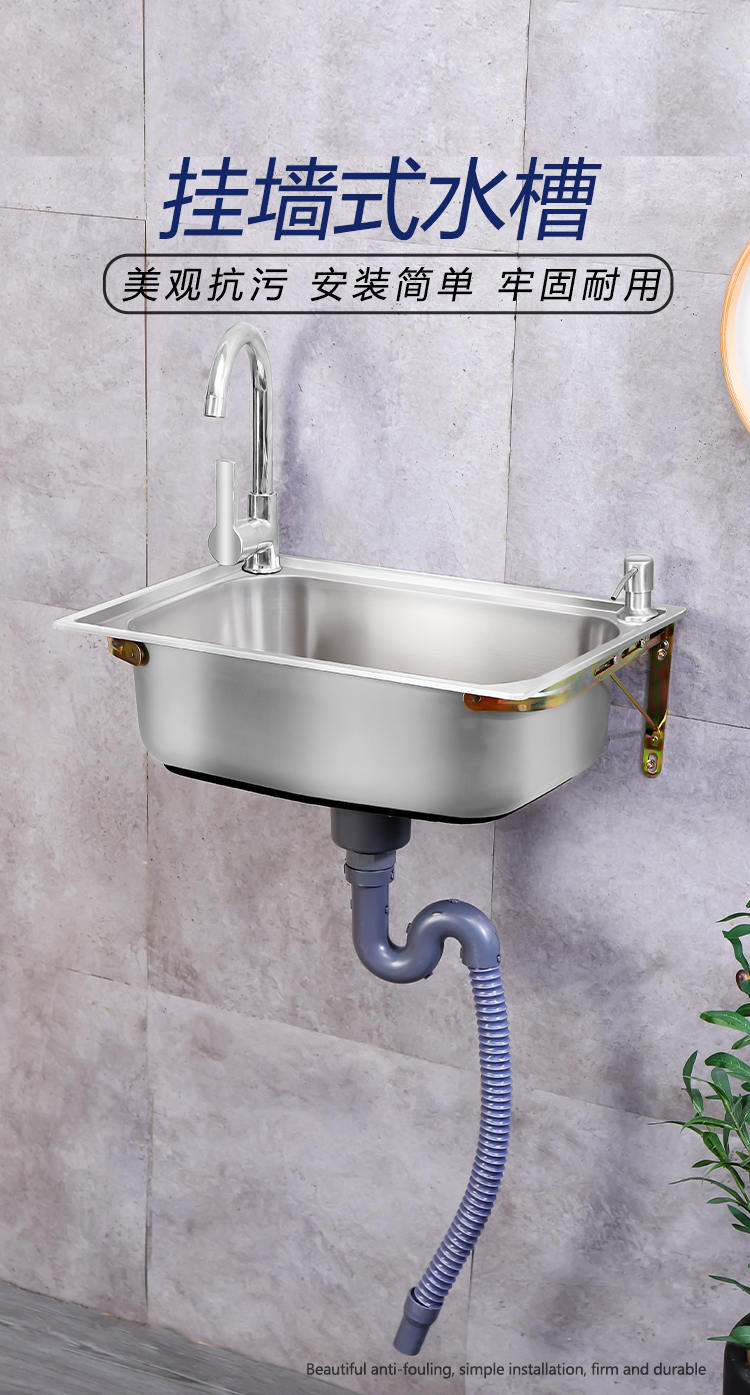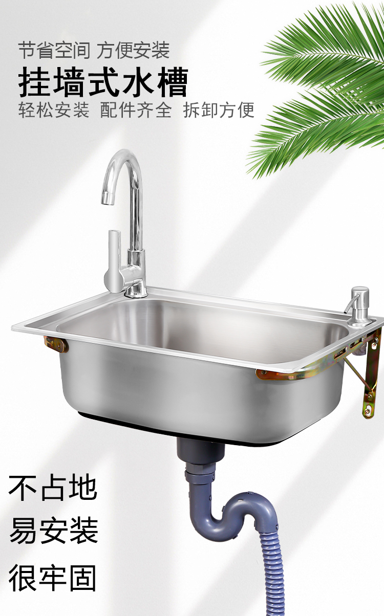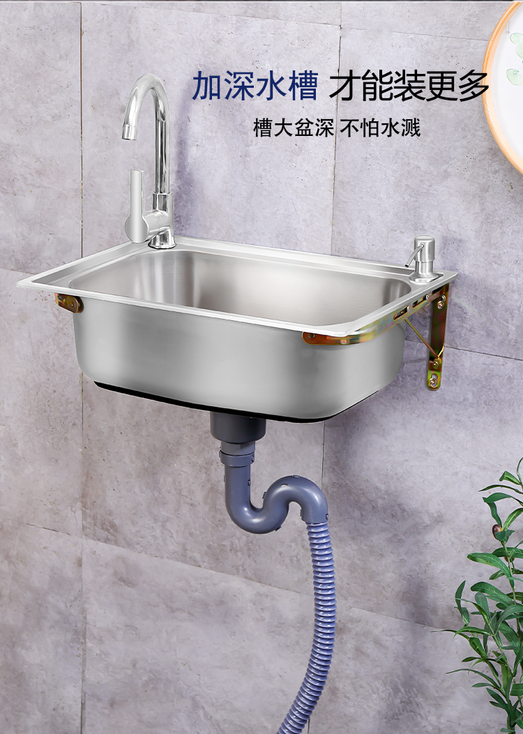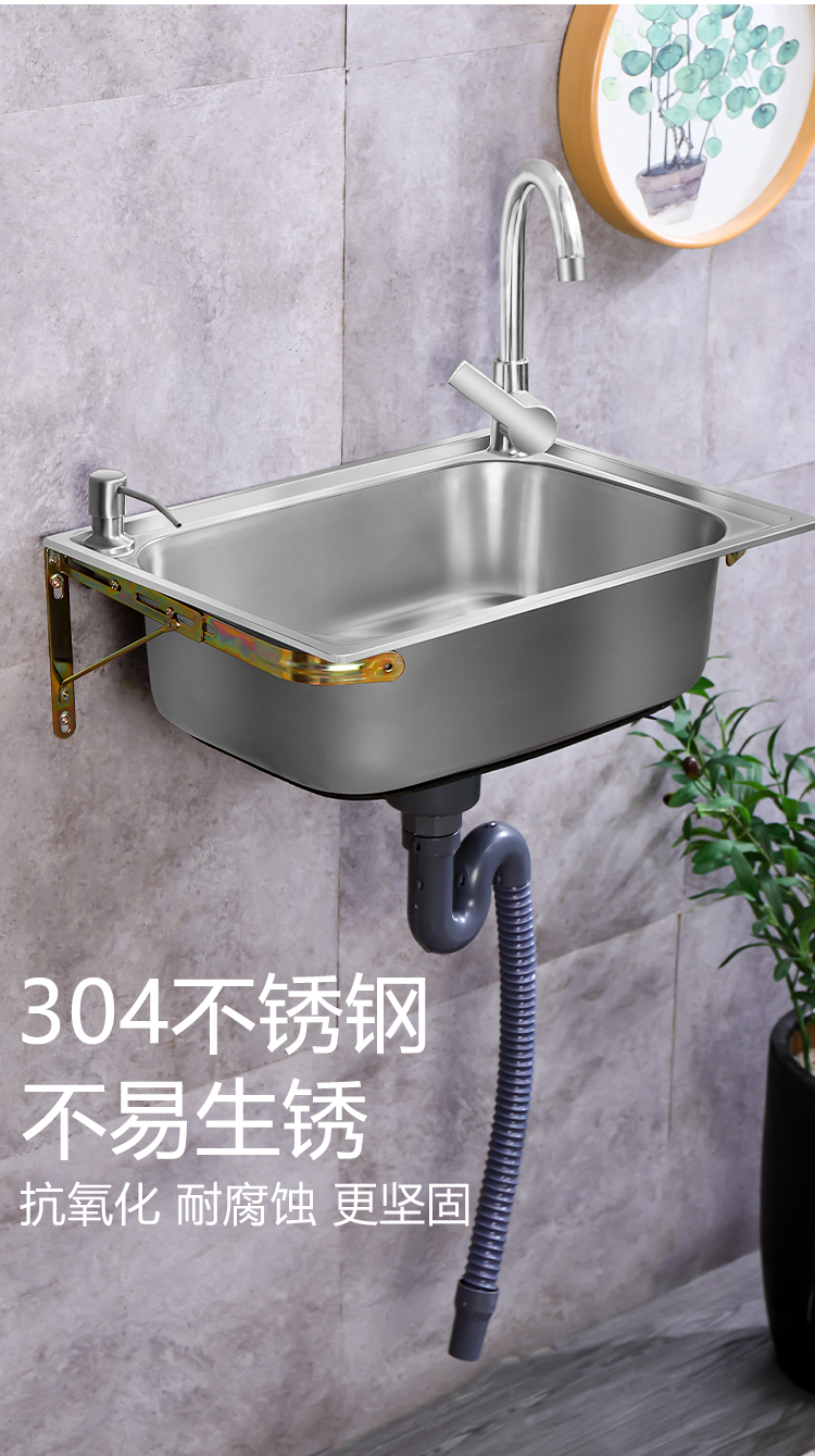 不锈钢水槽洗菜盆单槽家用简易挂墙洗手盆厨房洗碗池带支架水池