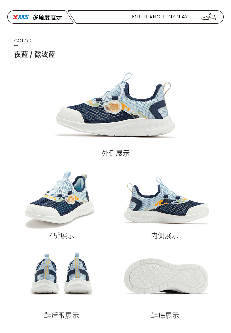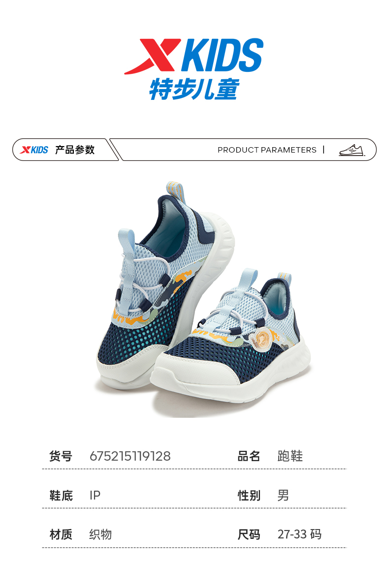 特步童鞋小童夏季新款网面透气儿童运动鞋子男童一脚蹬软底跑步鞋