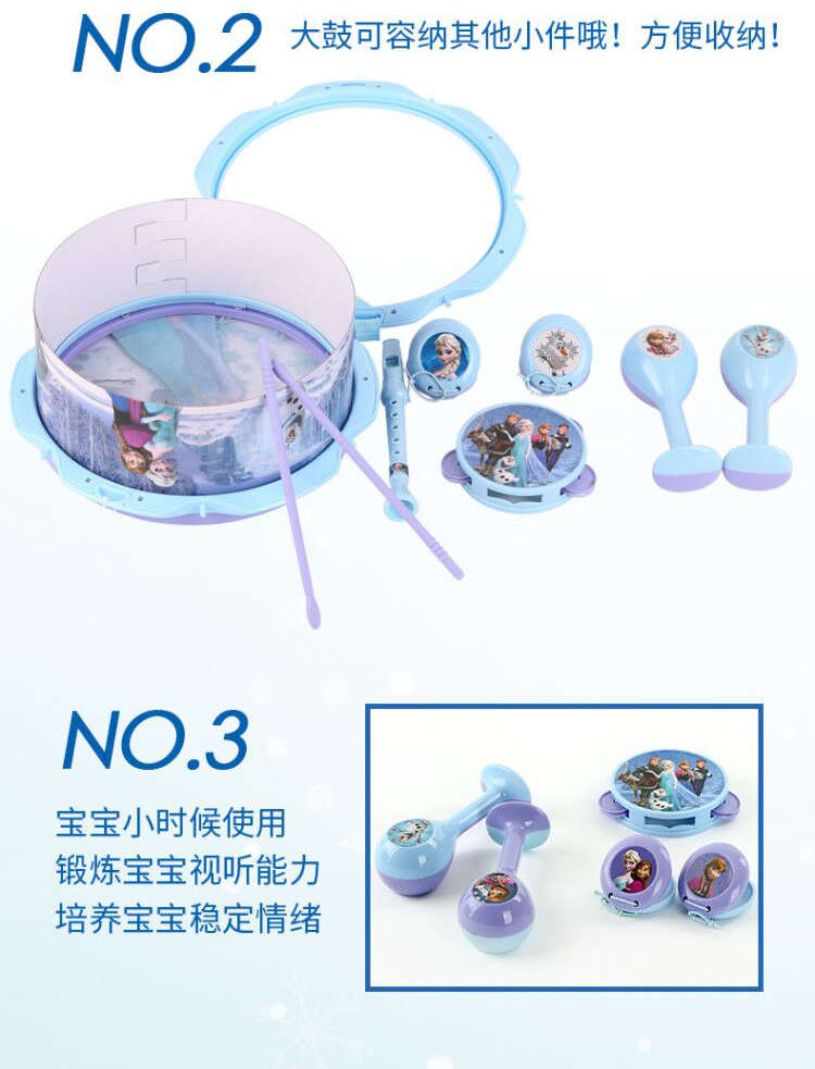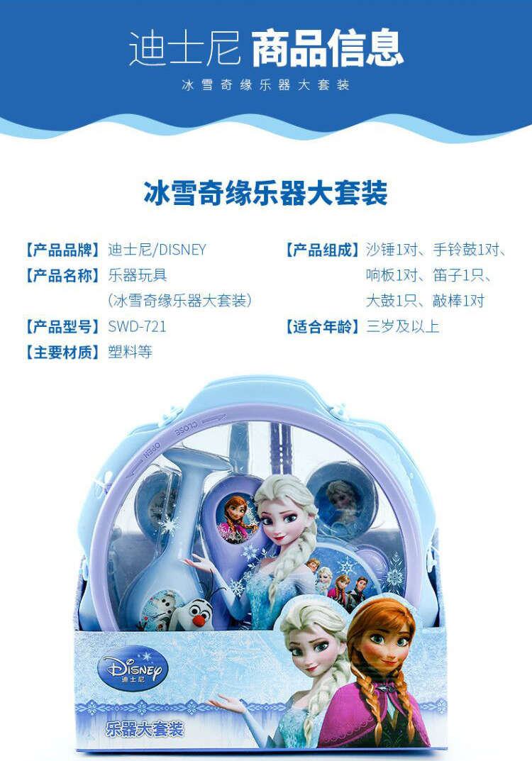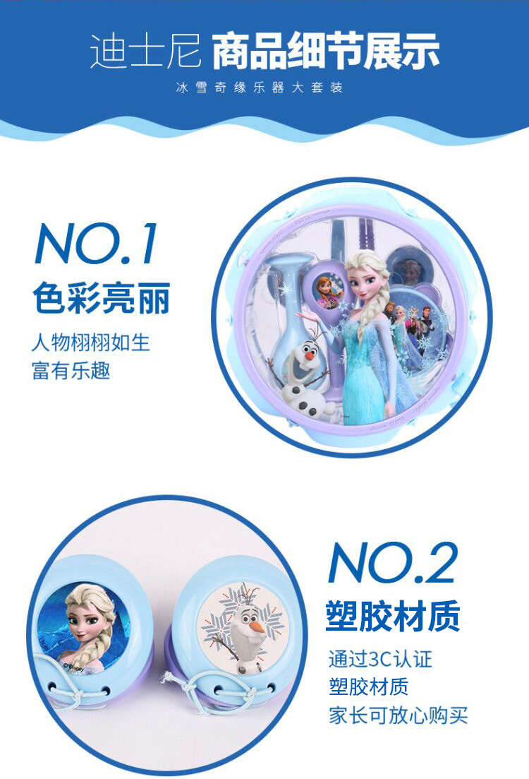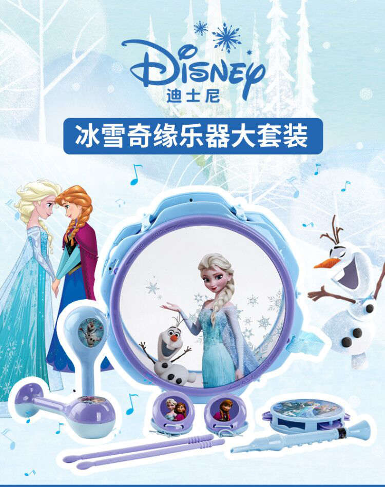 迪士尼冰雪奇缘儿童仿真乐器套装笛子沙锤手铃鼓女孩音乐吹奏玩具