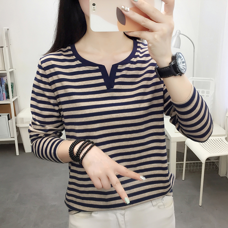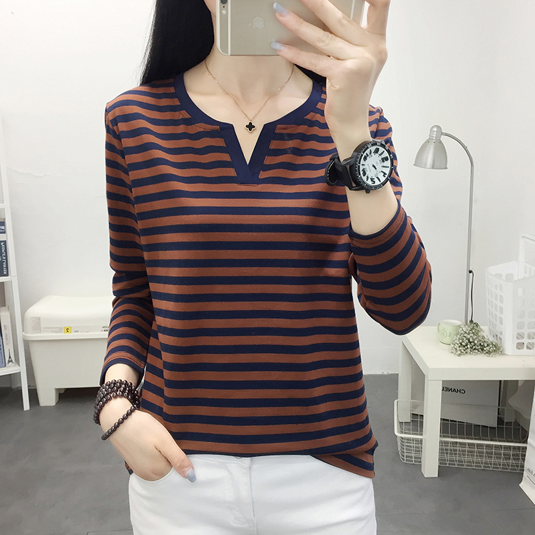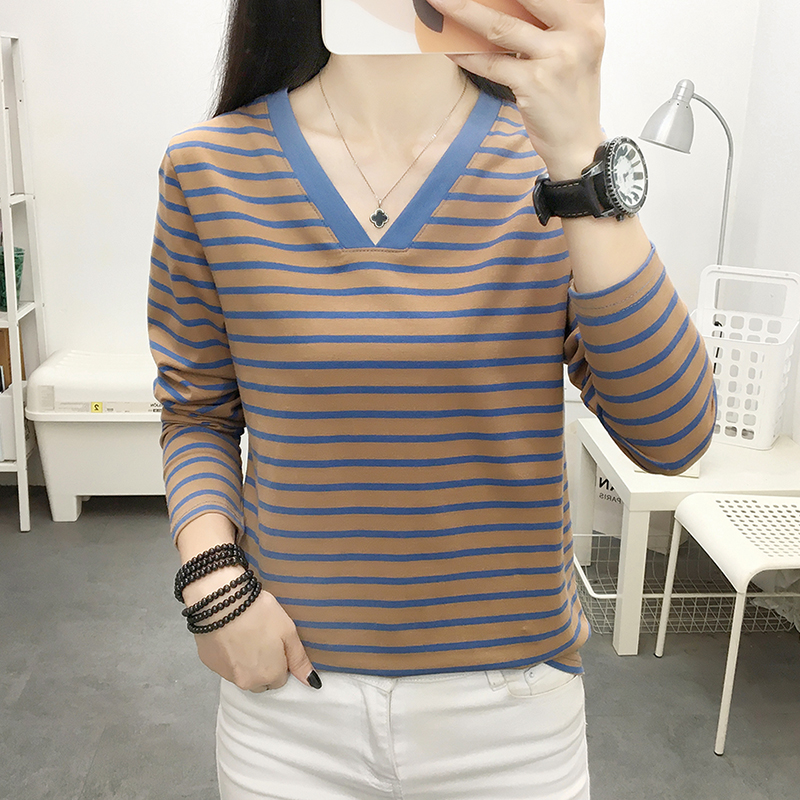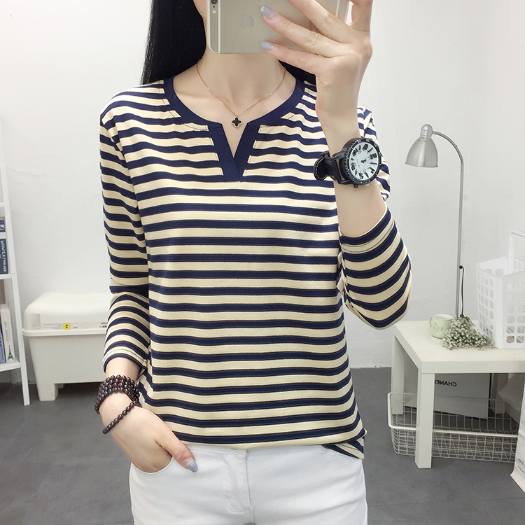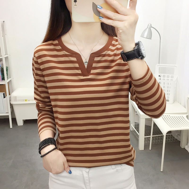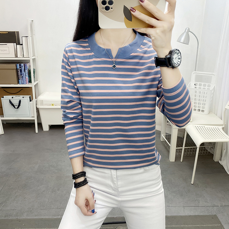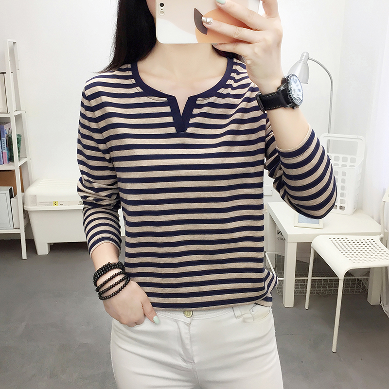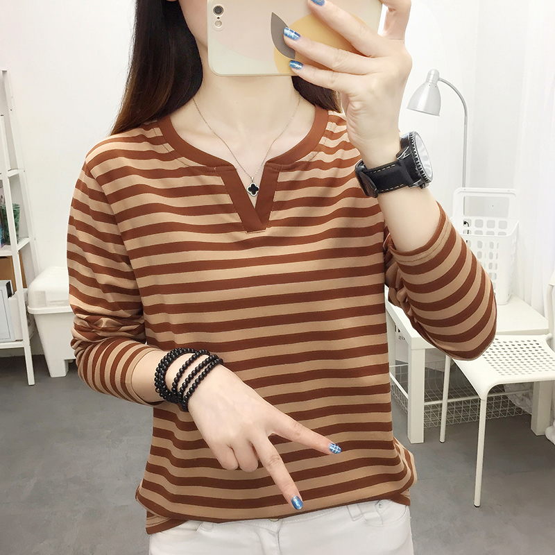 春装2025新款长袖t恤女士秋衣大码宽松打底衫中年妈妈纯棉上衣V领