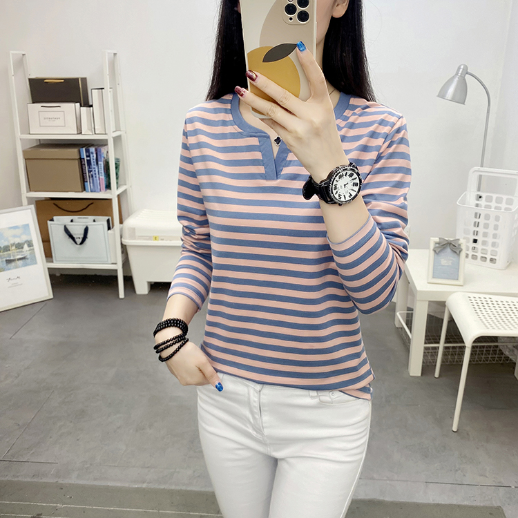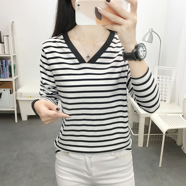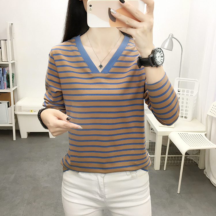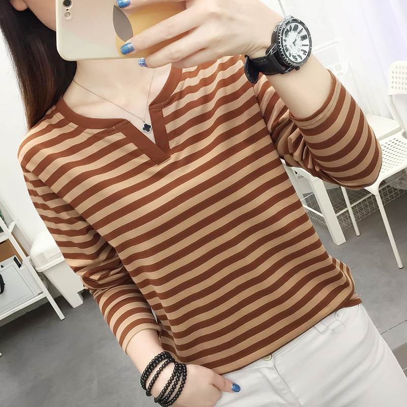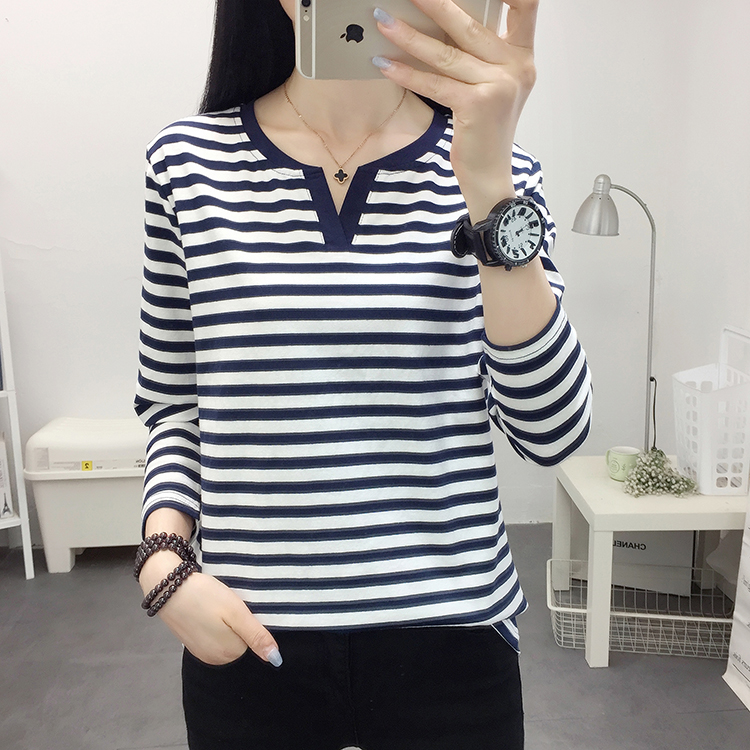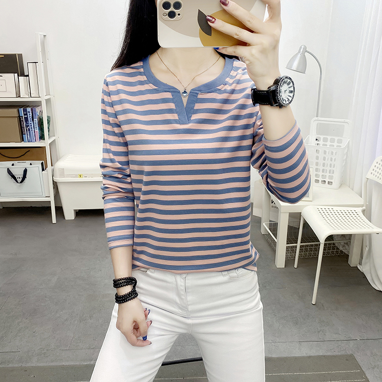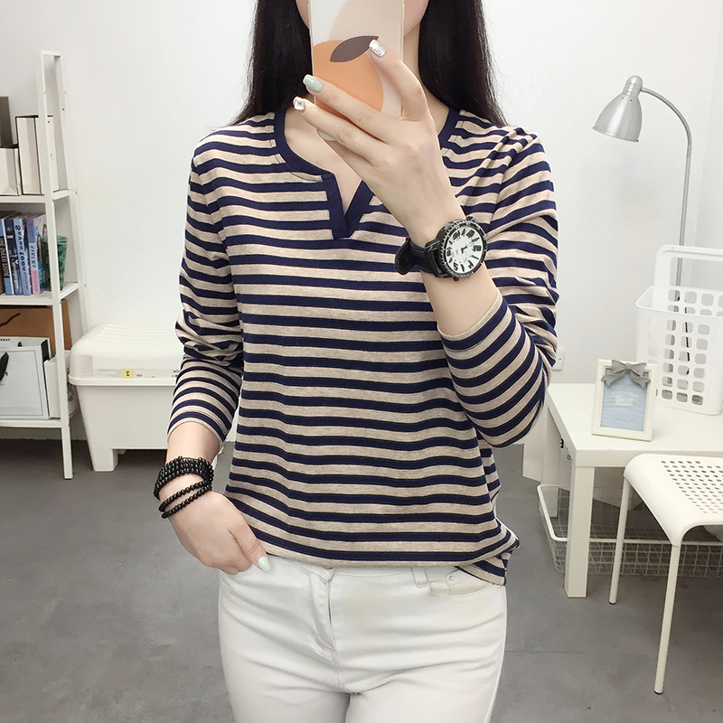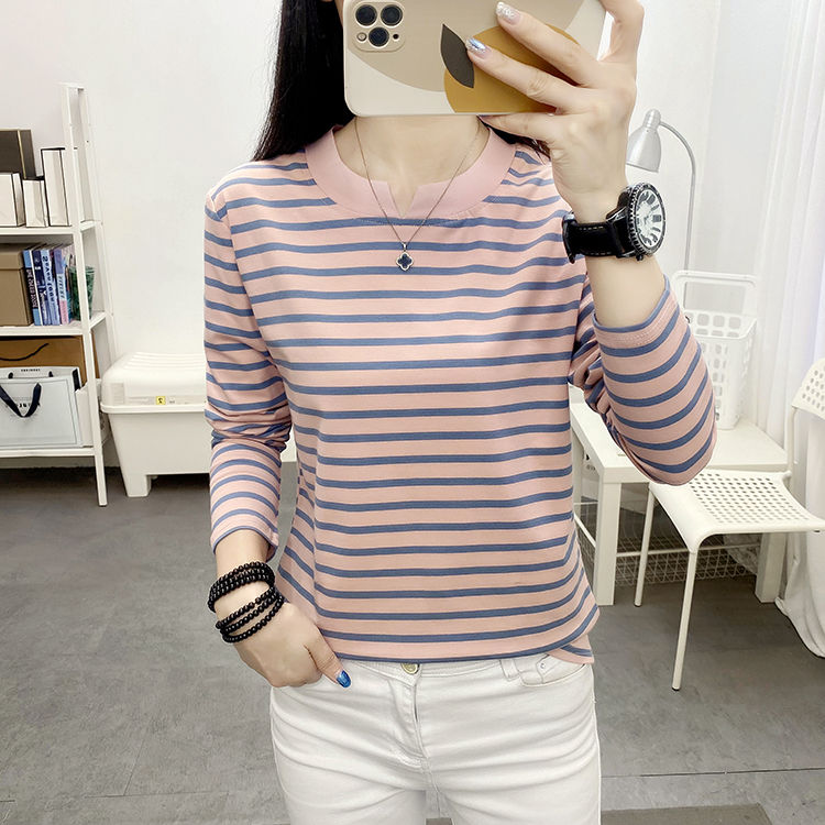 春装2025新款长袖t恤女士秋衣大码宽松打底衫中年妈妈纯棉上衣V领