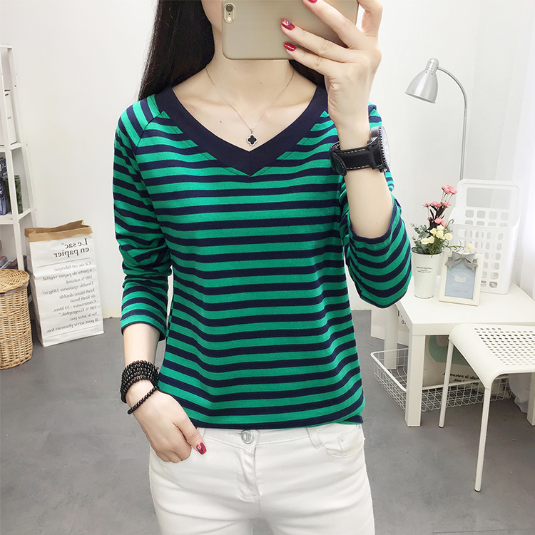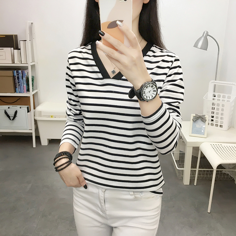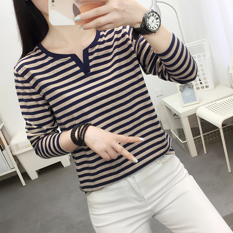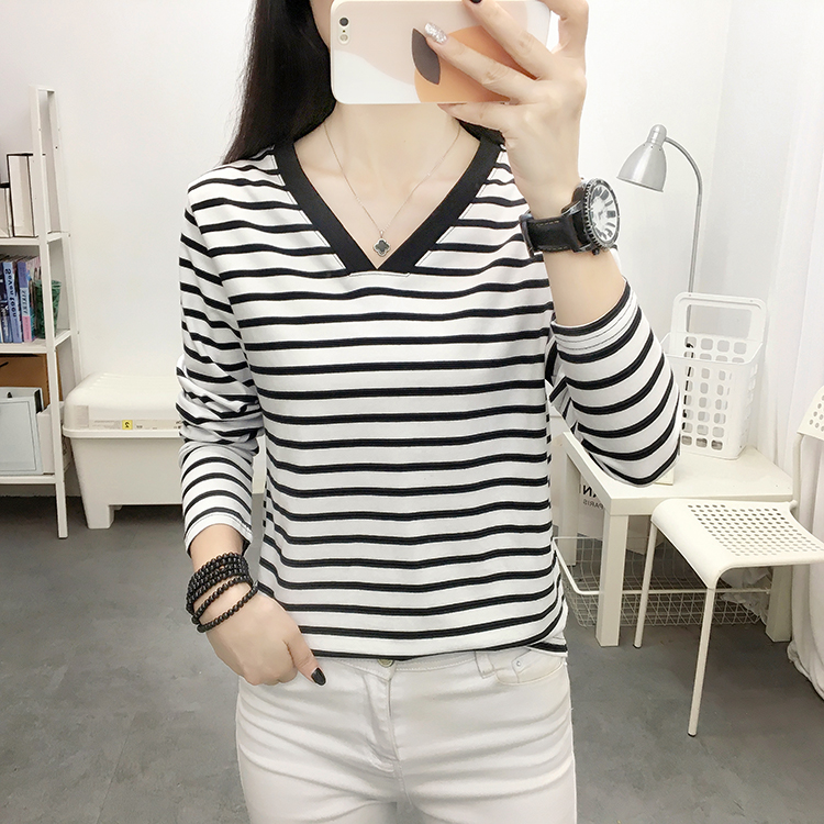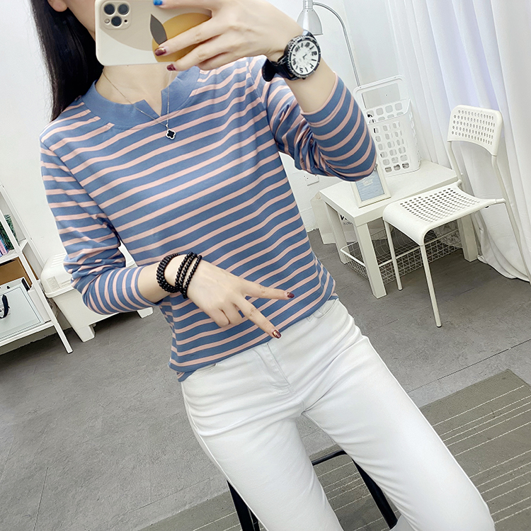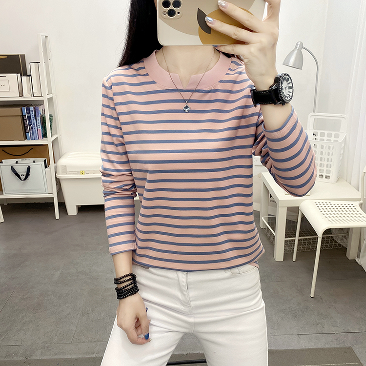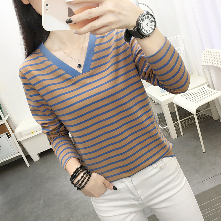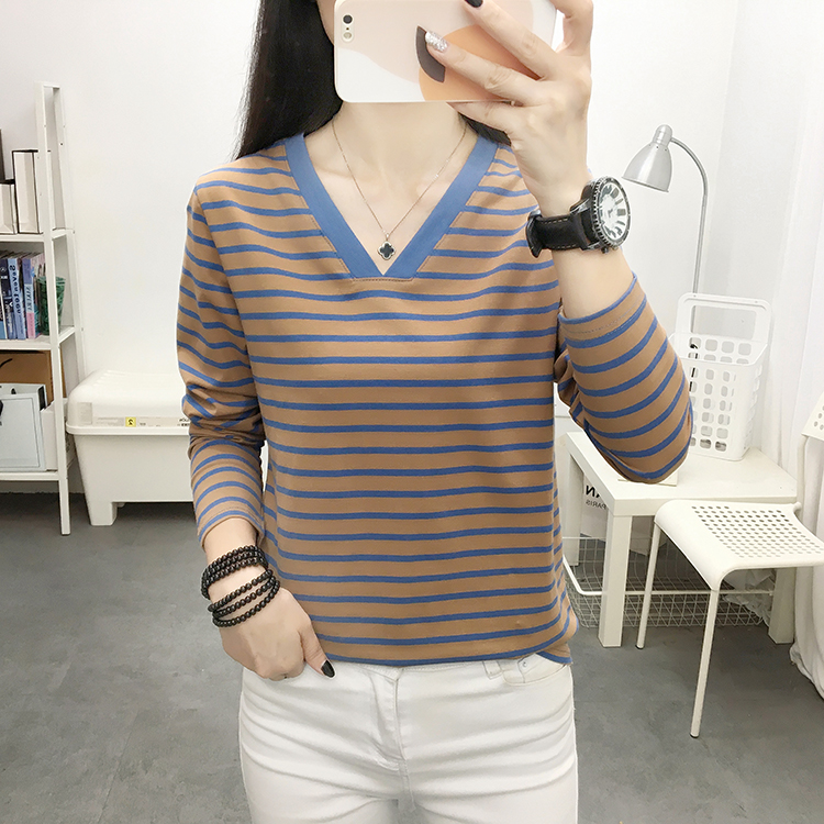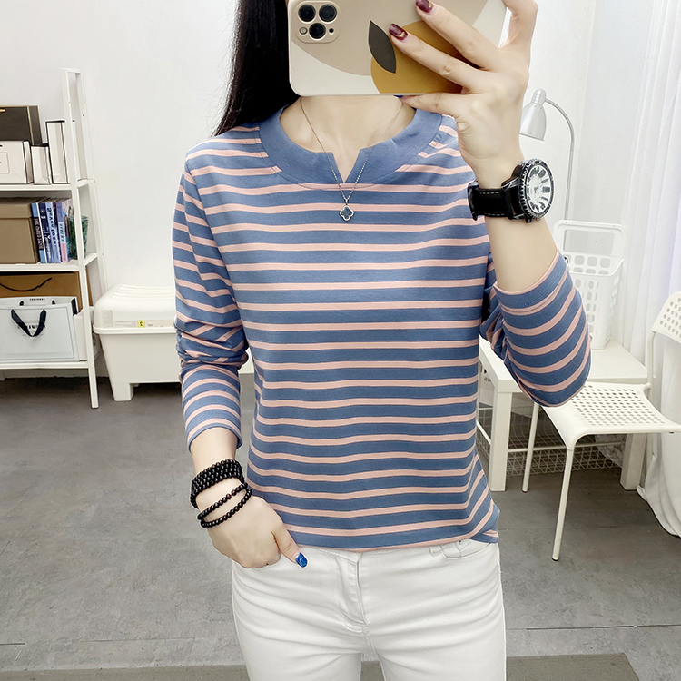 春装2025新款长袖t恤女士秋衣大码宽松打底衫中年妈妈纯棉上衣V领