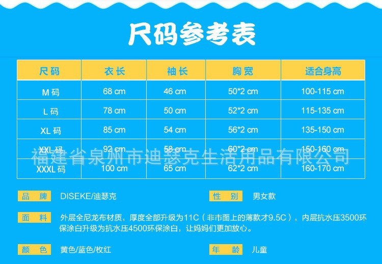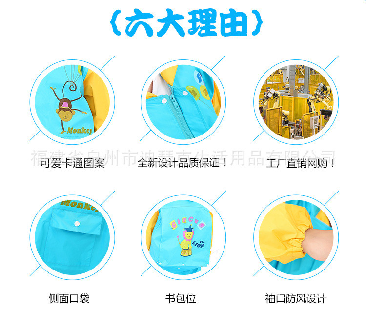 新款全尼龙高档杂技款带书包位儿童雨衣直批找分销可一代发