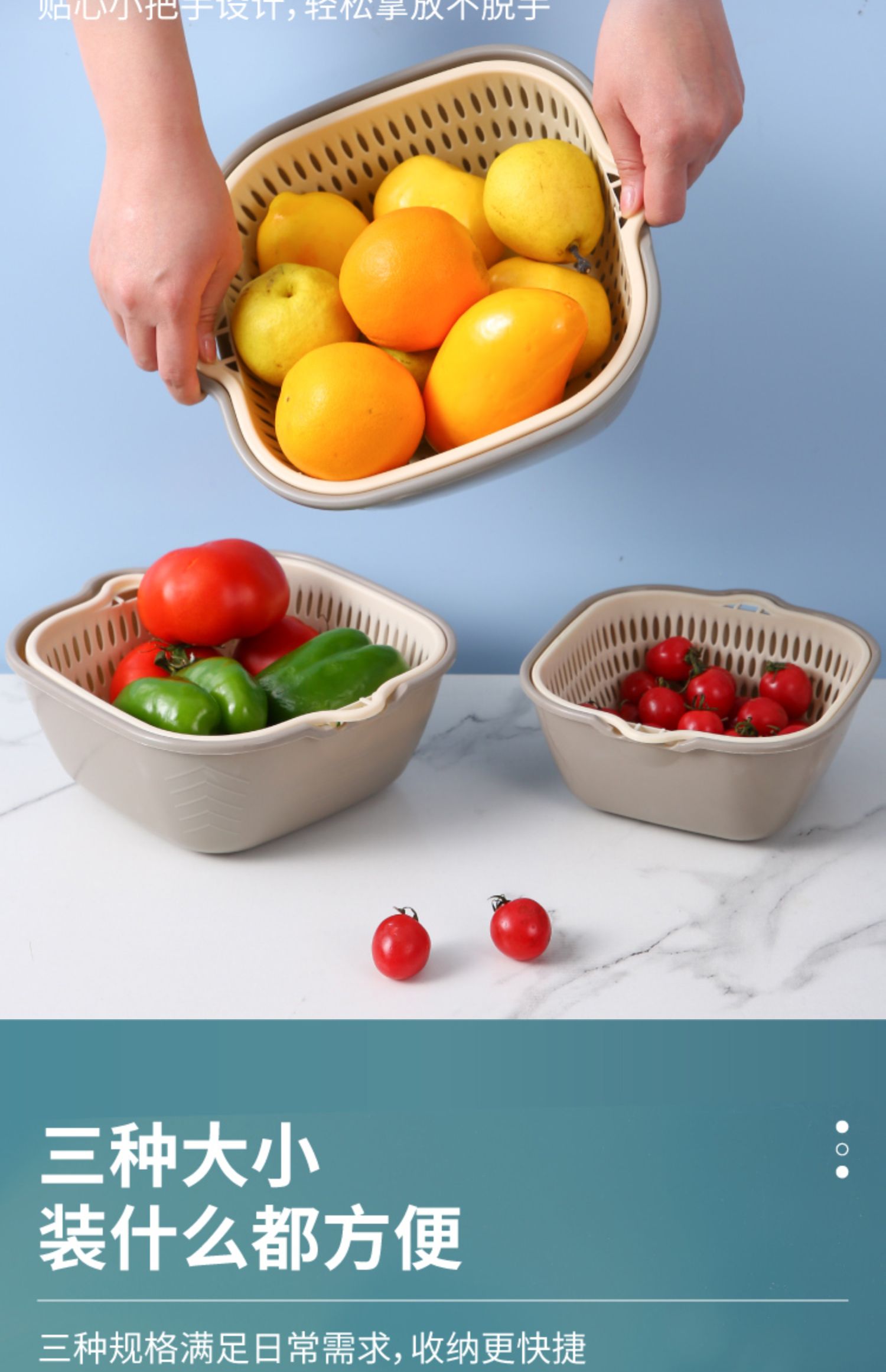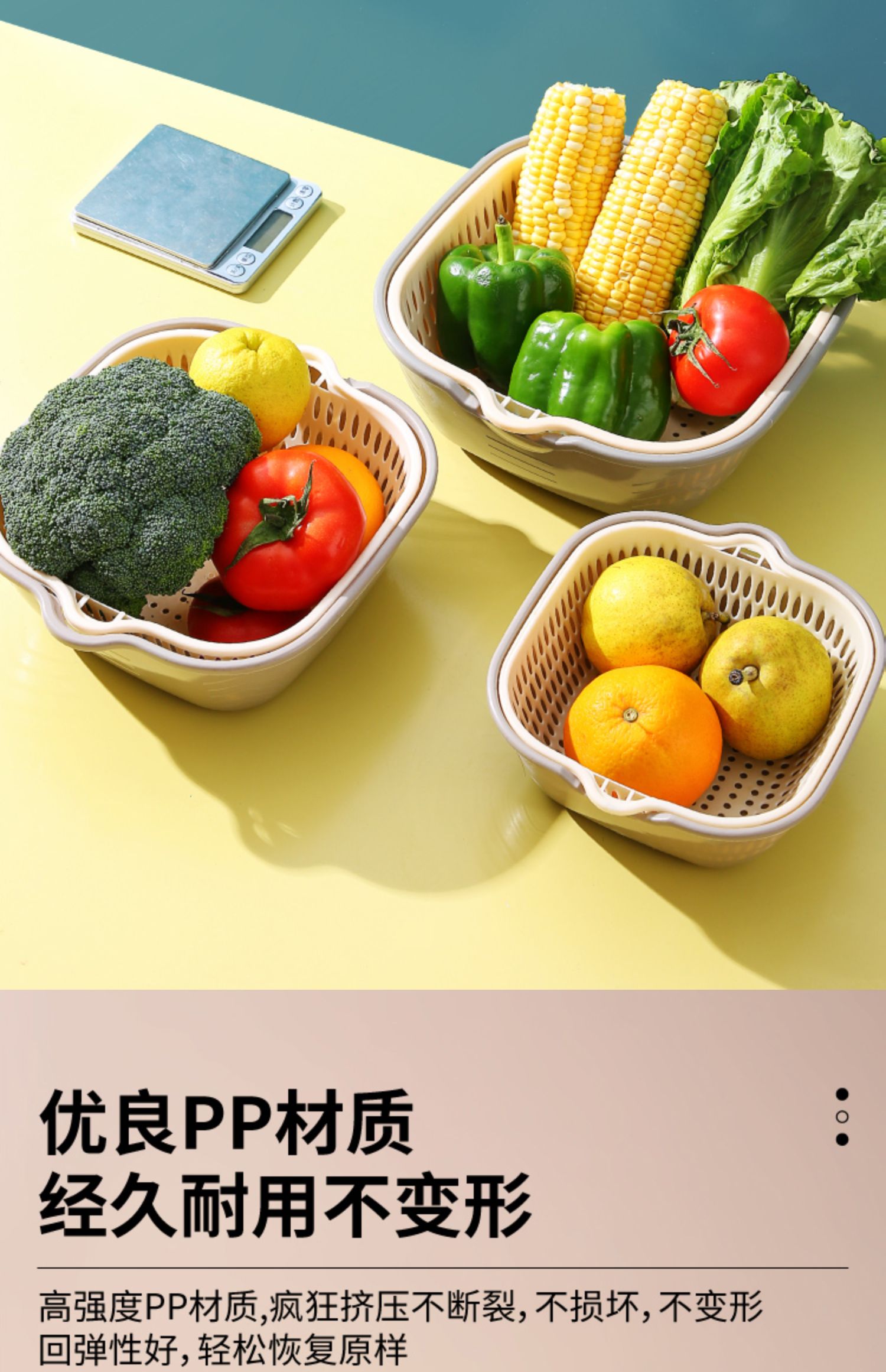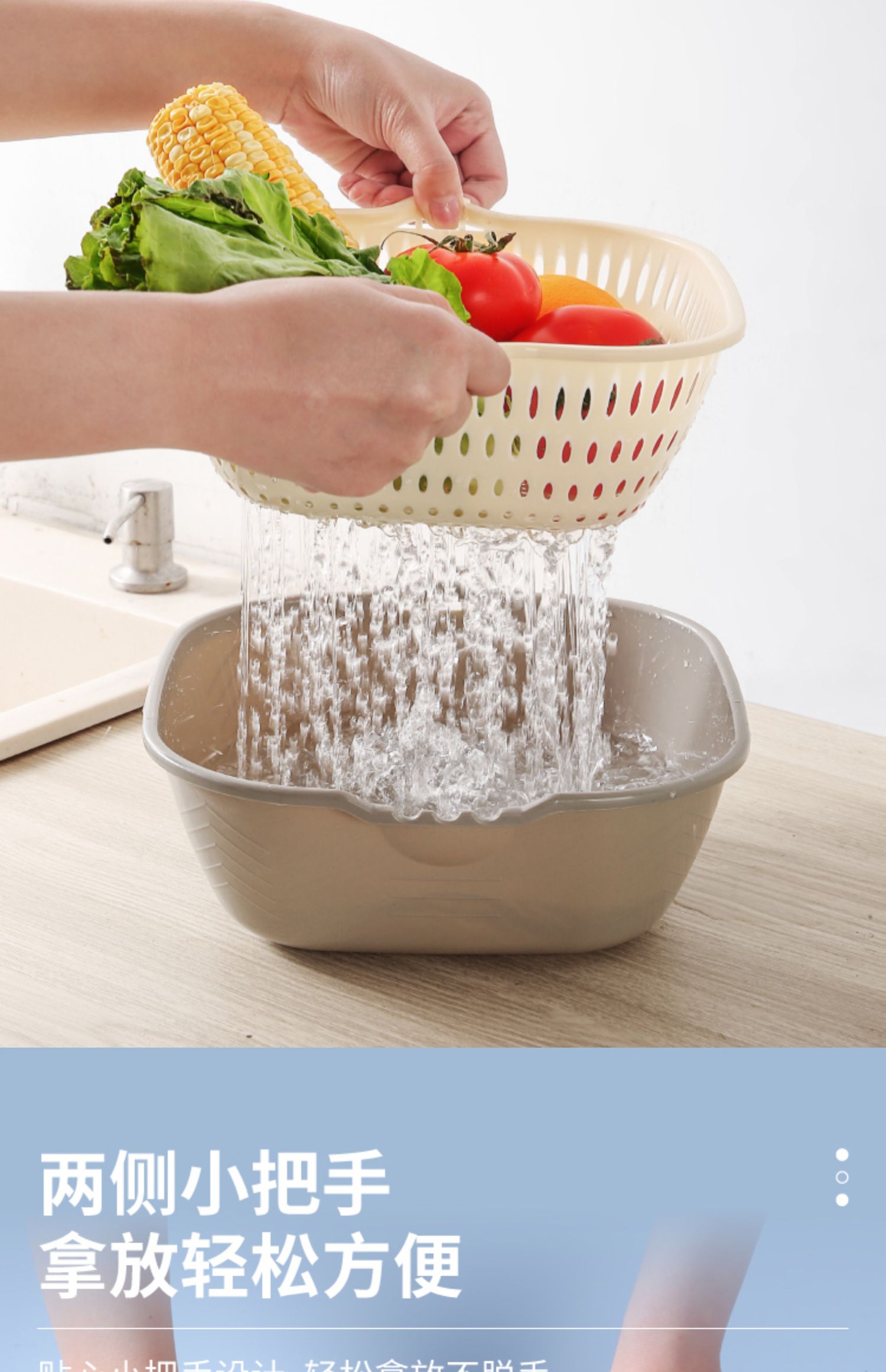 双层镂空洗菜盆沥水篮子厨房收纳多功能客厅家用水果盘洗水果菜篮