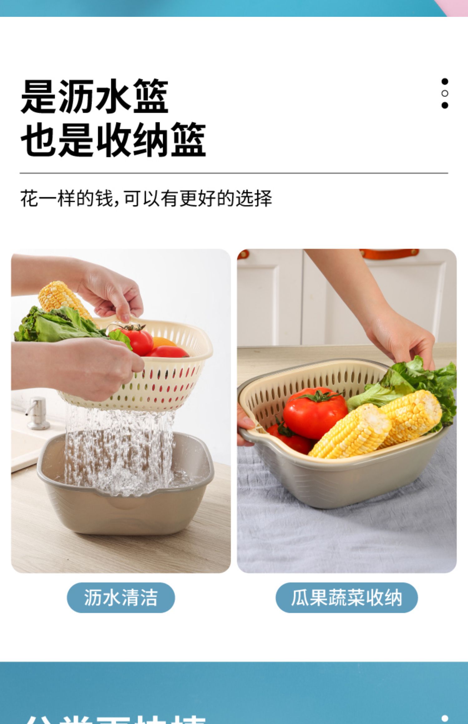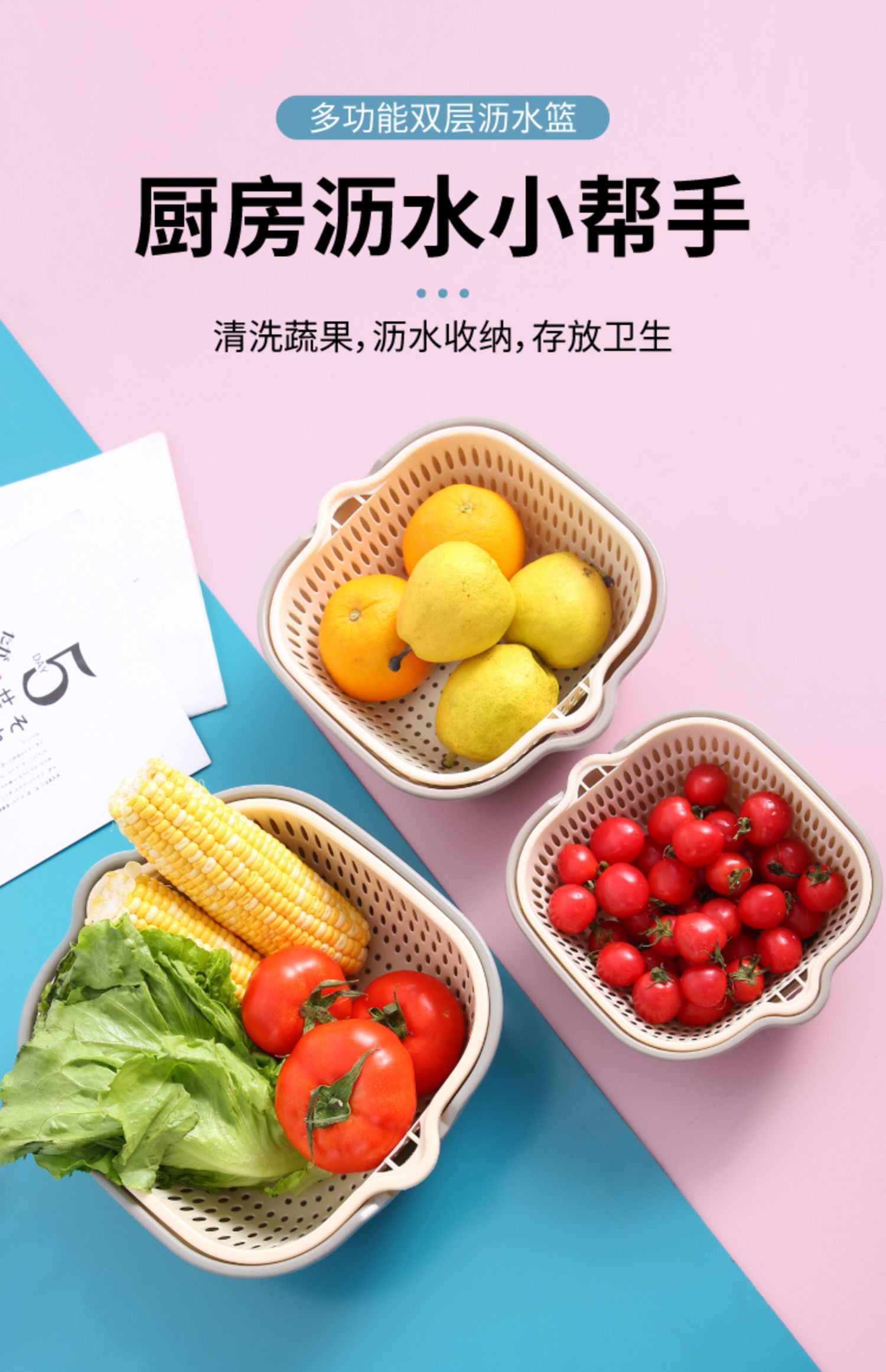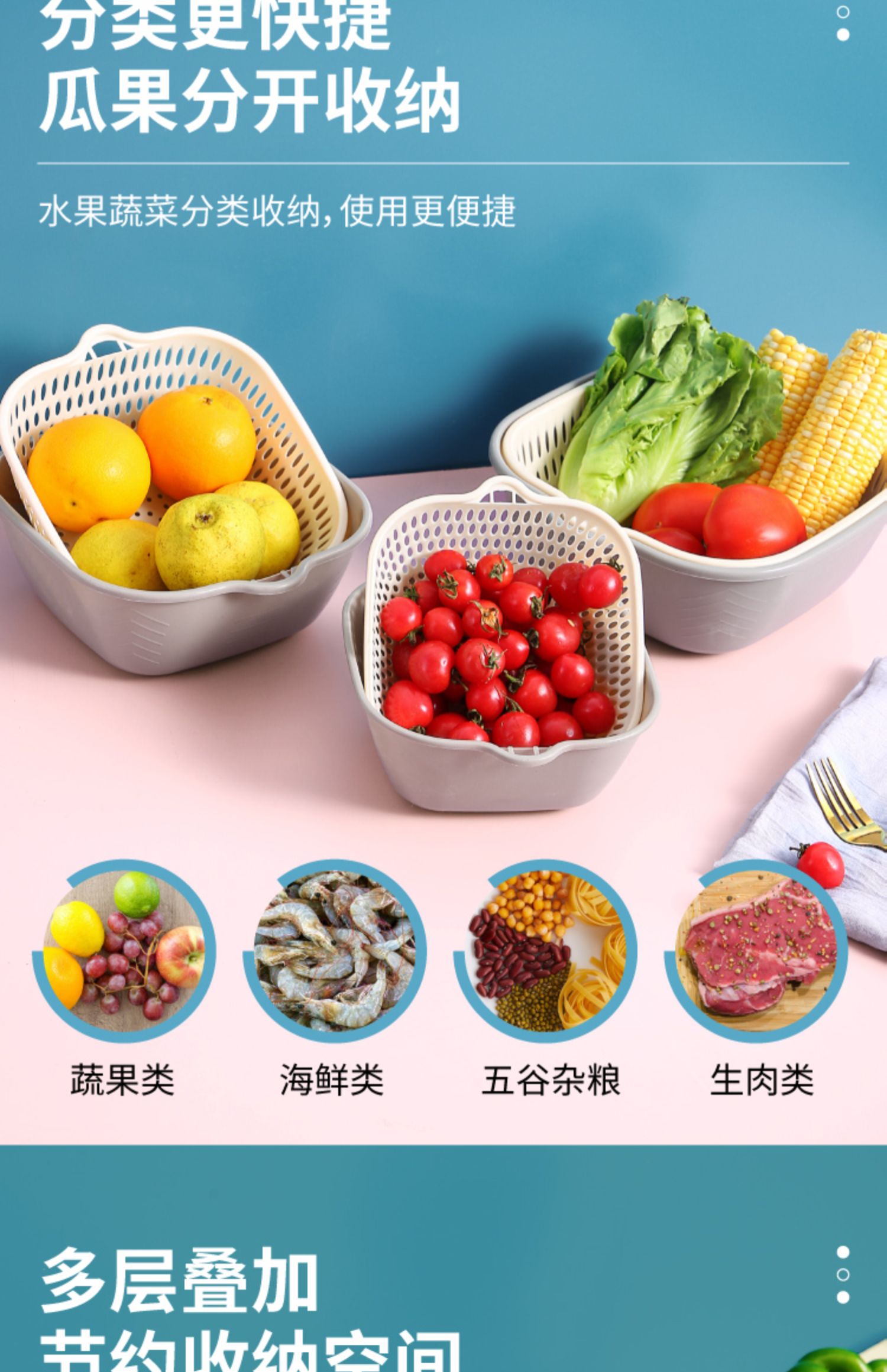 双层镂空洗菜盆沥水篮子厨房收纳多功能客厅家用水果盘洗水果菜篮