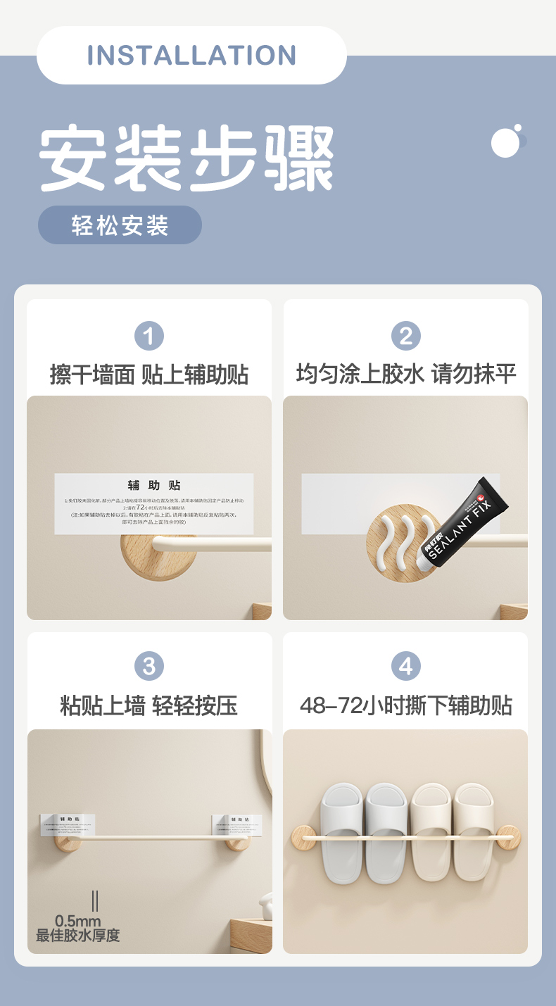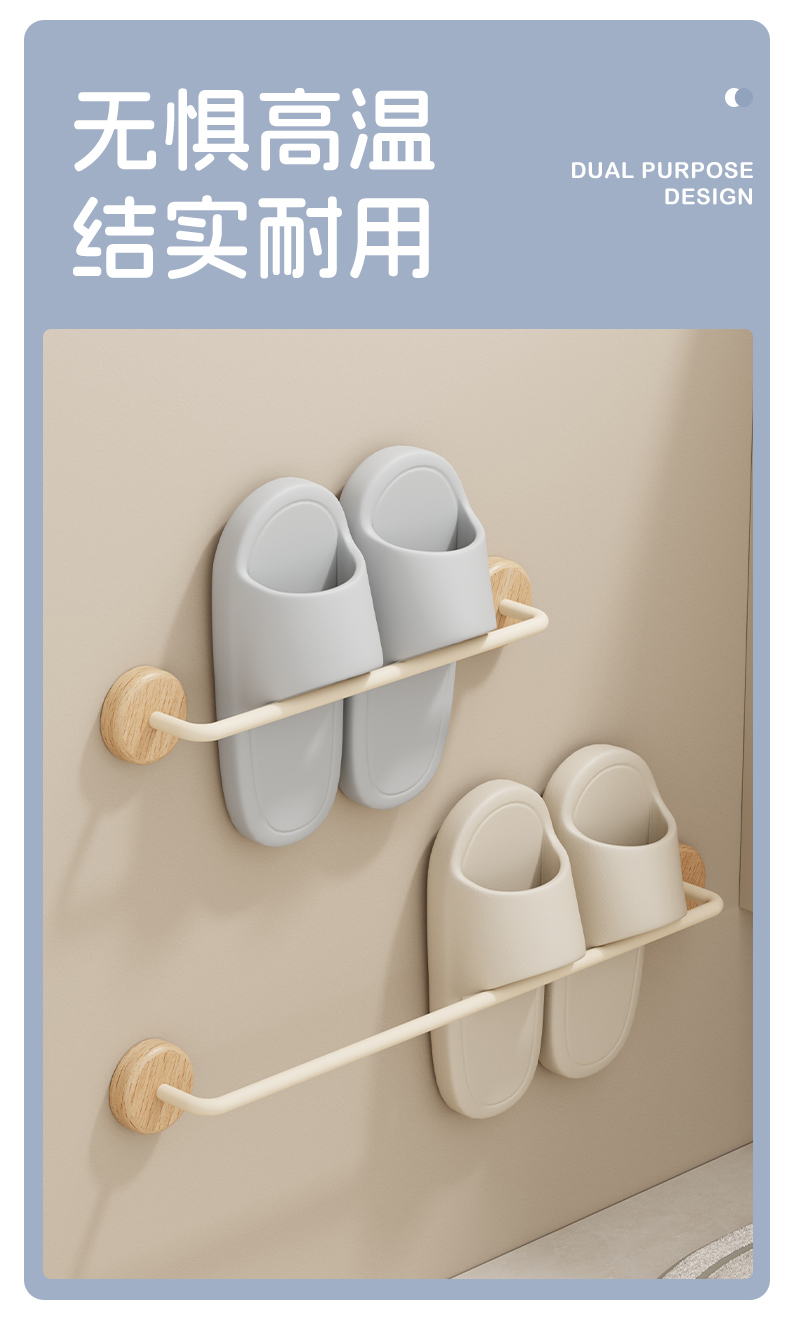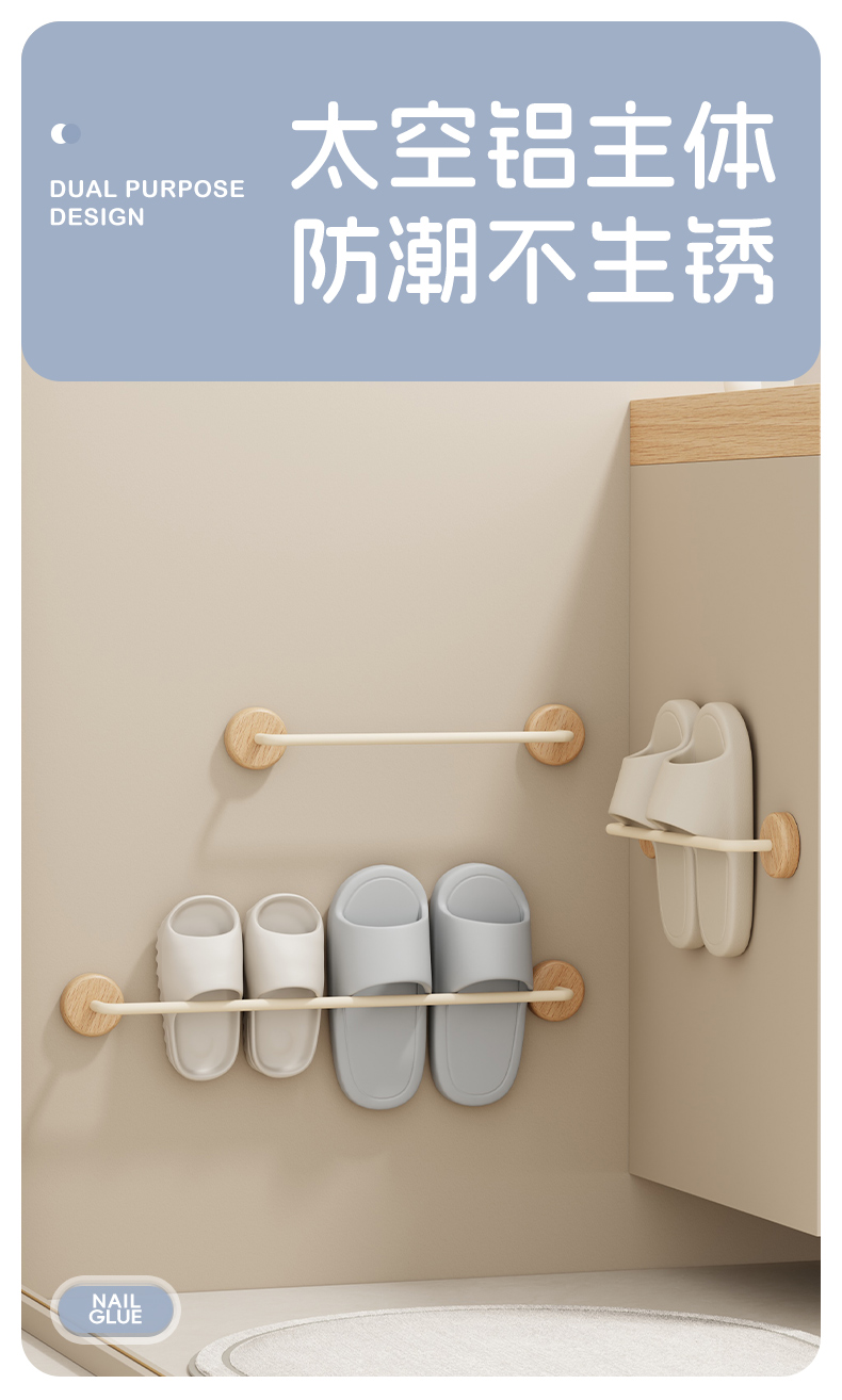 奶油风浴室拖鞋架免打孔卫生间鞋子收纳架壁挂门后沥水拖鞋置物架