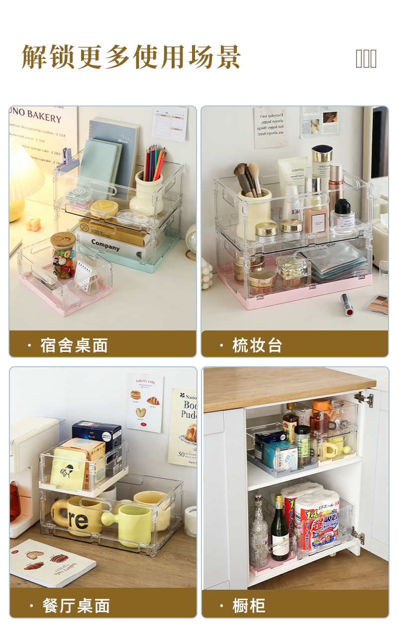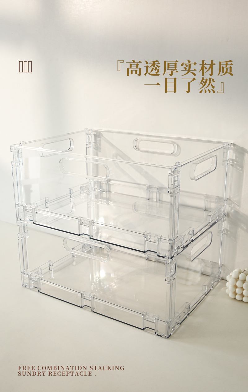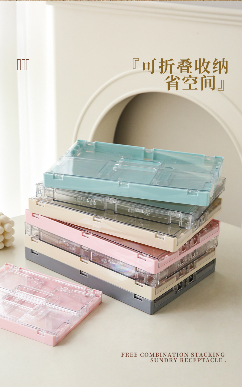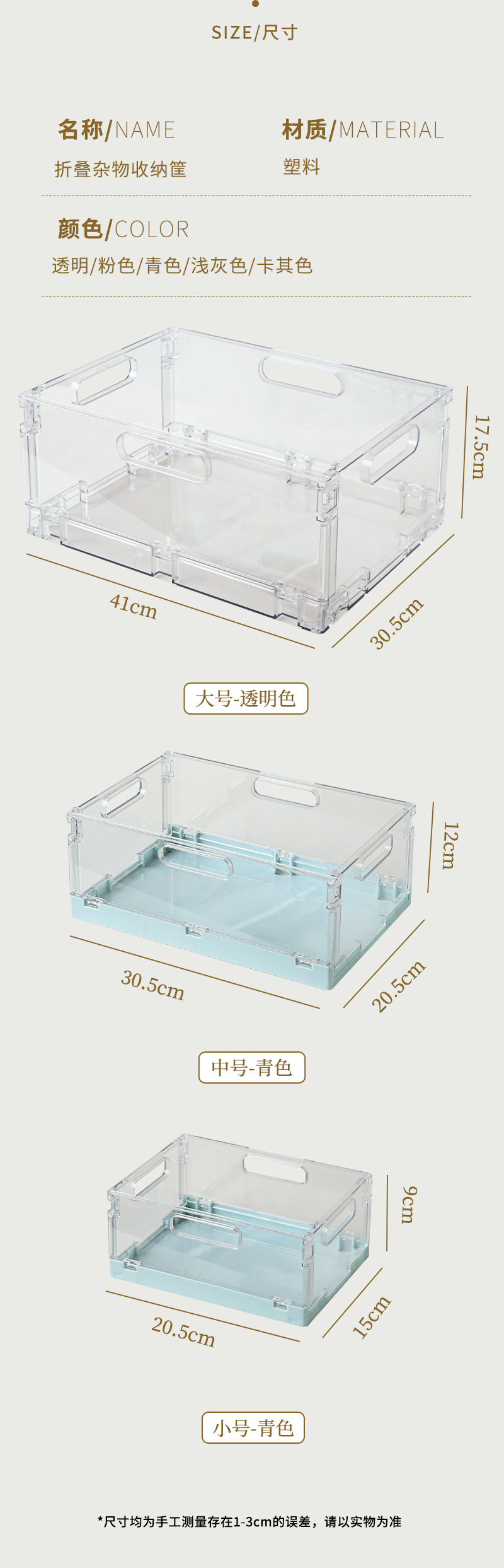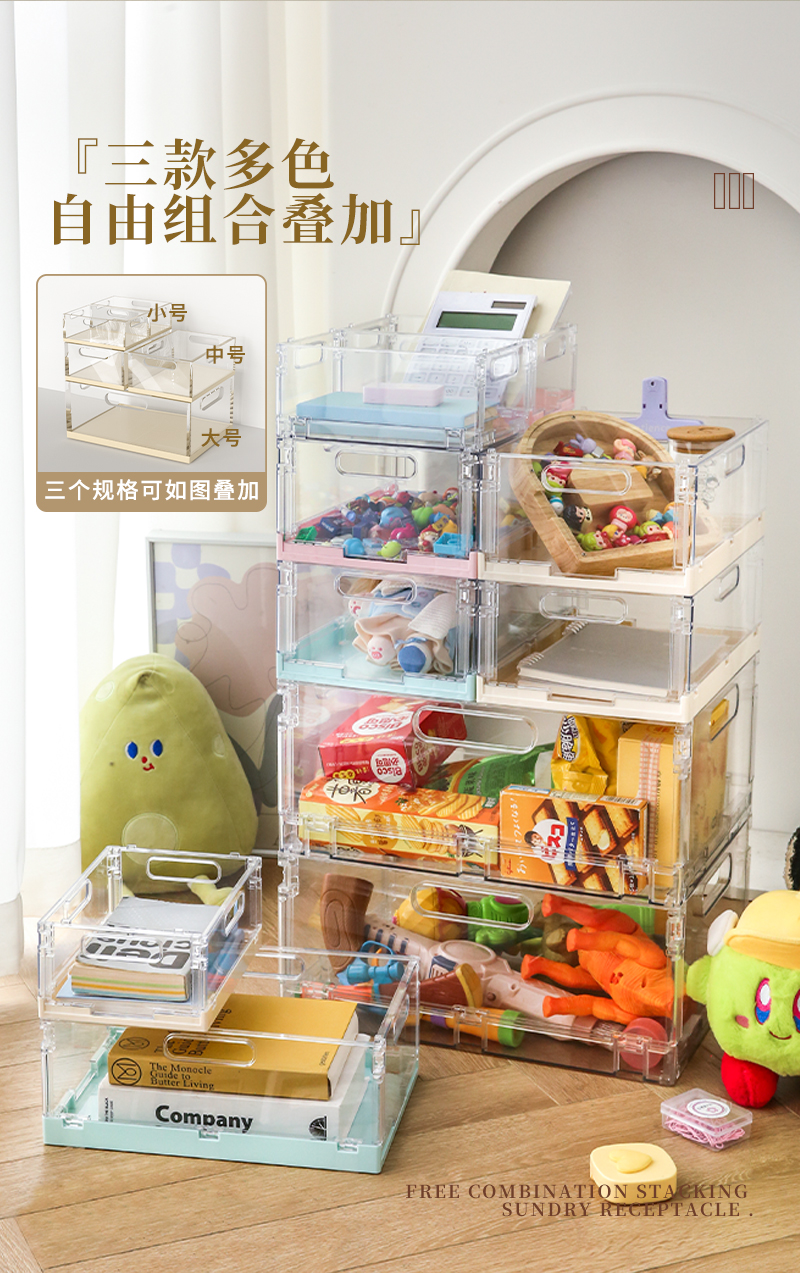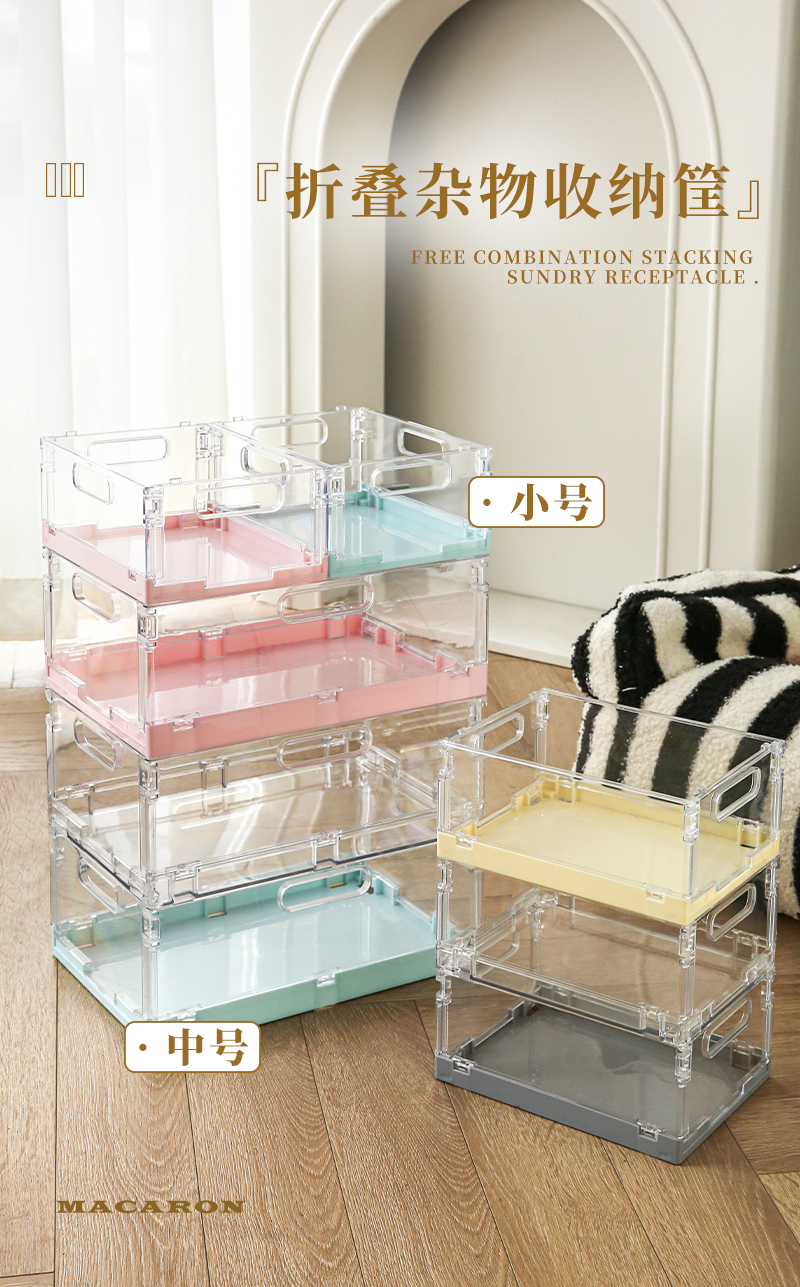 可折叠收纳筐 亚克力杂物收纳盒 可叠加桌面零食整理箱彩色收纳篮