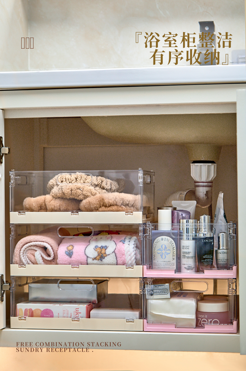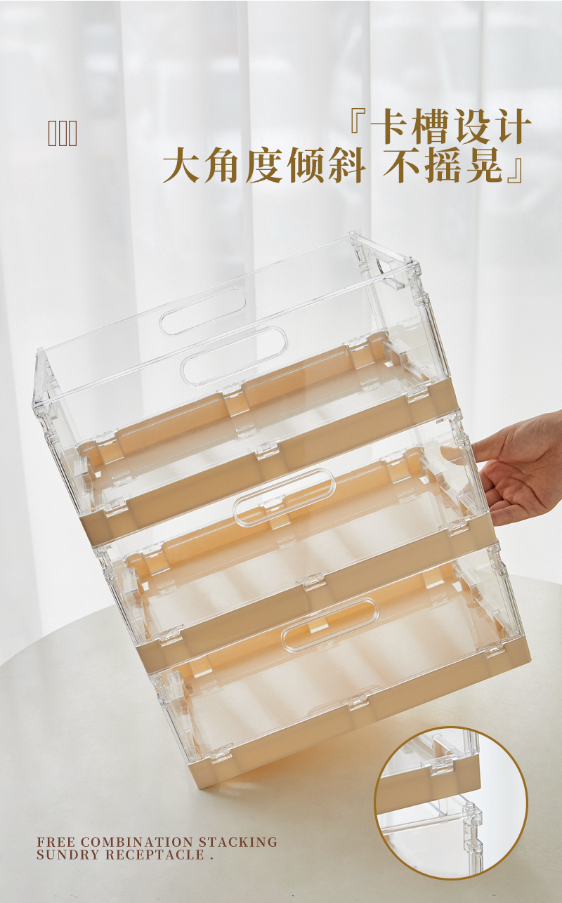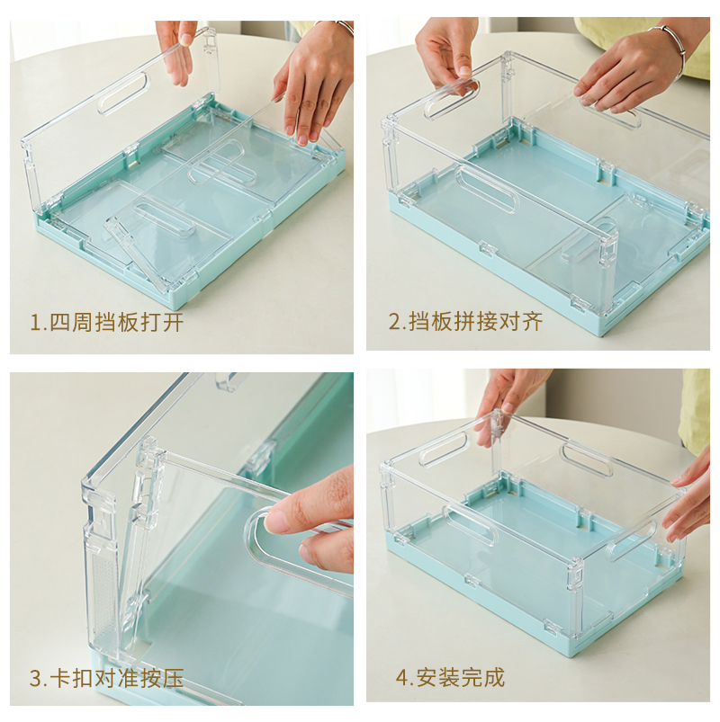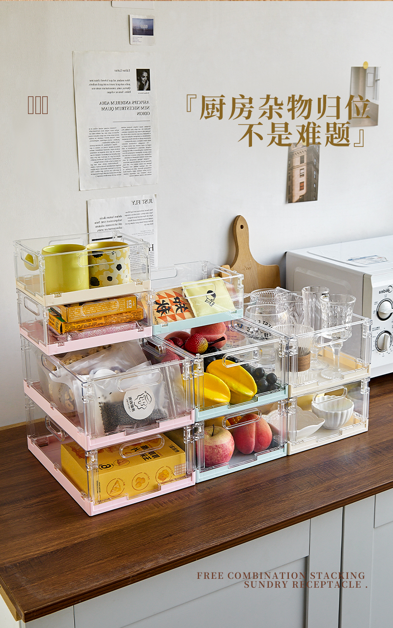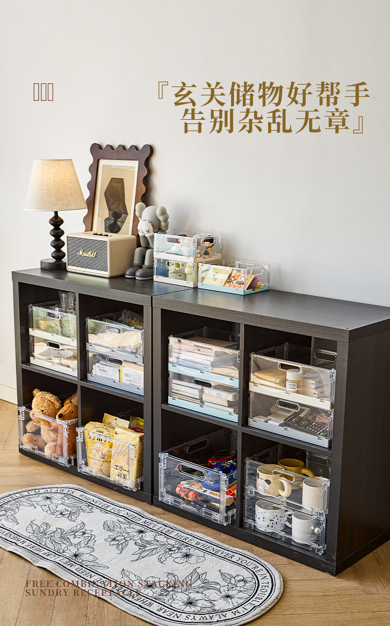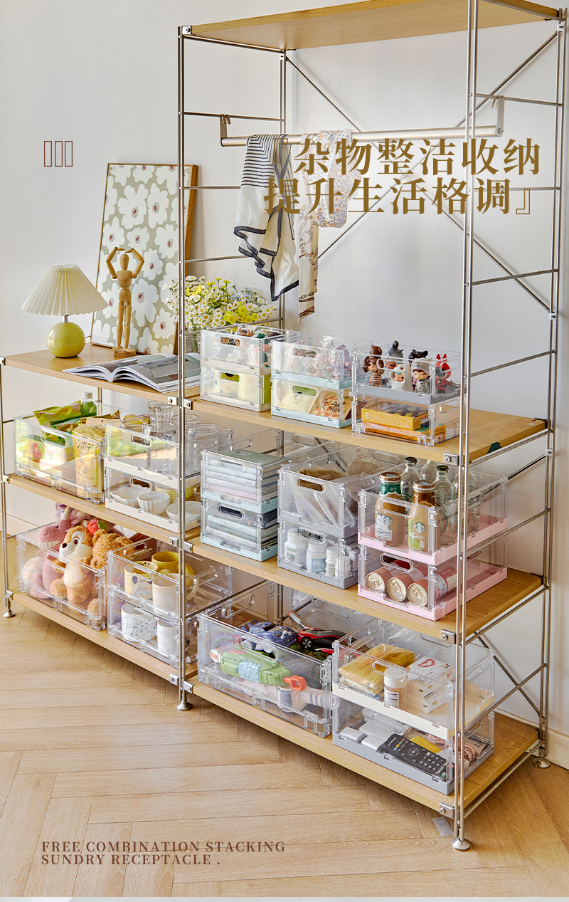 可折叠收纳筐 亚克力杂物收纳盒 可叠加桌面零食整理箱彩色收纳篮