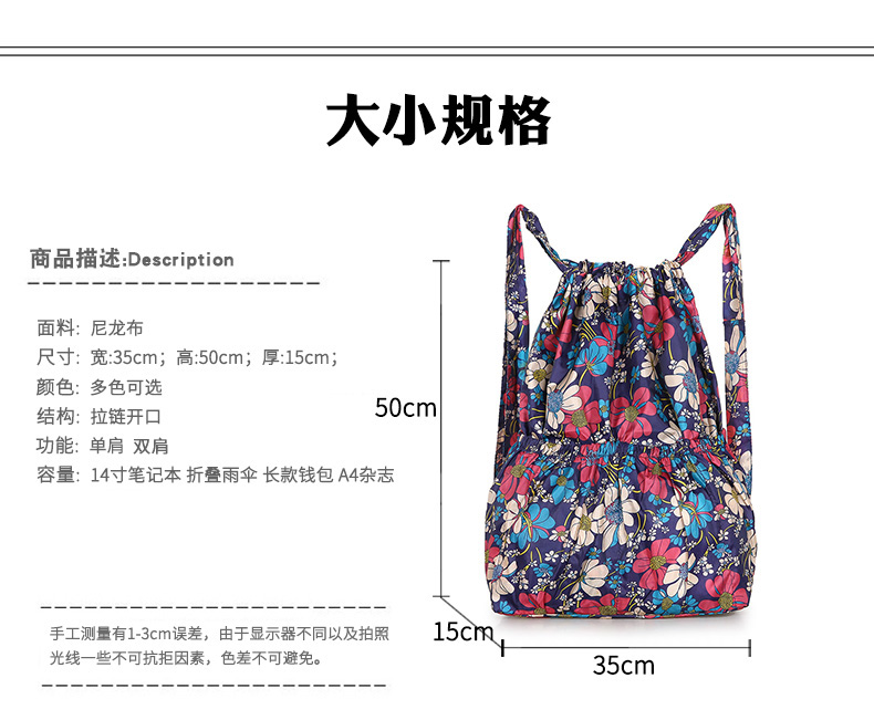 韩版百搭尼龙束口袋双肩包防泼水运动背包学生大容量轻便旅行大包