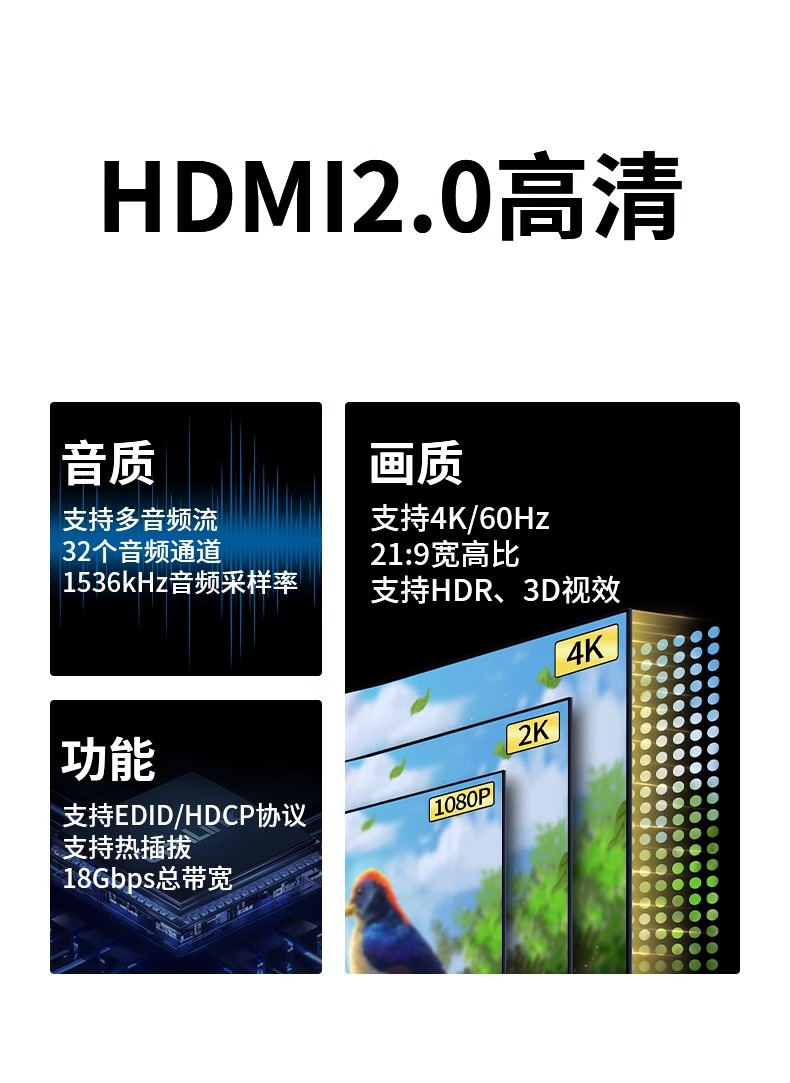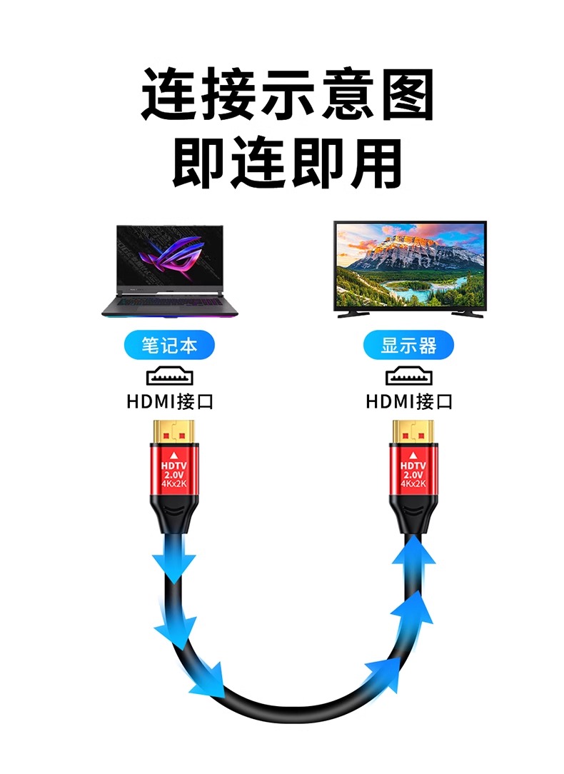 hdmi高清线连接2.0显示器屏电脑电视机顶盒4k网络投影仪信号主机